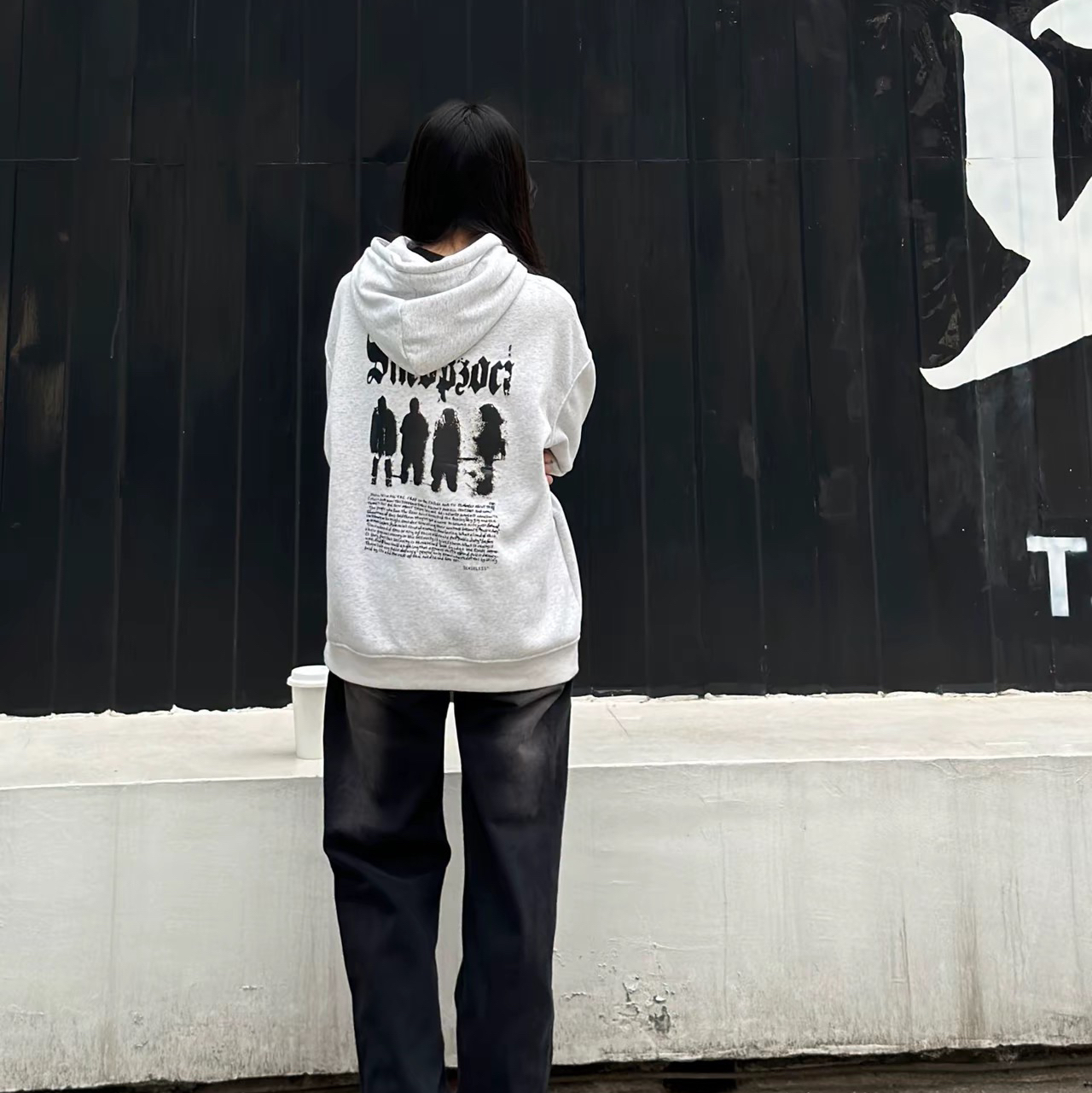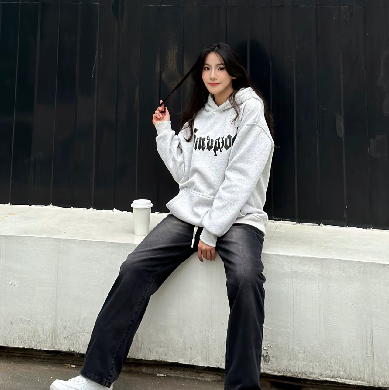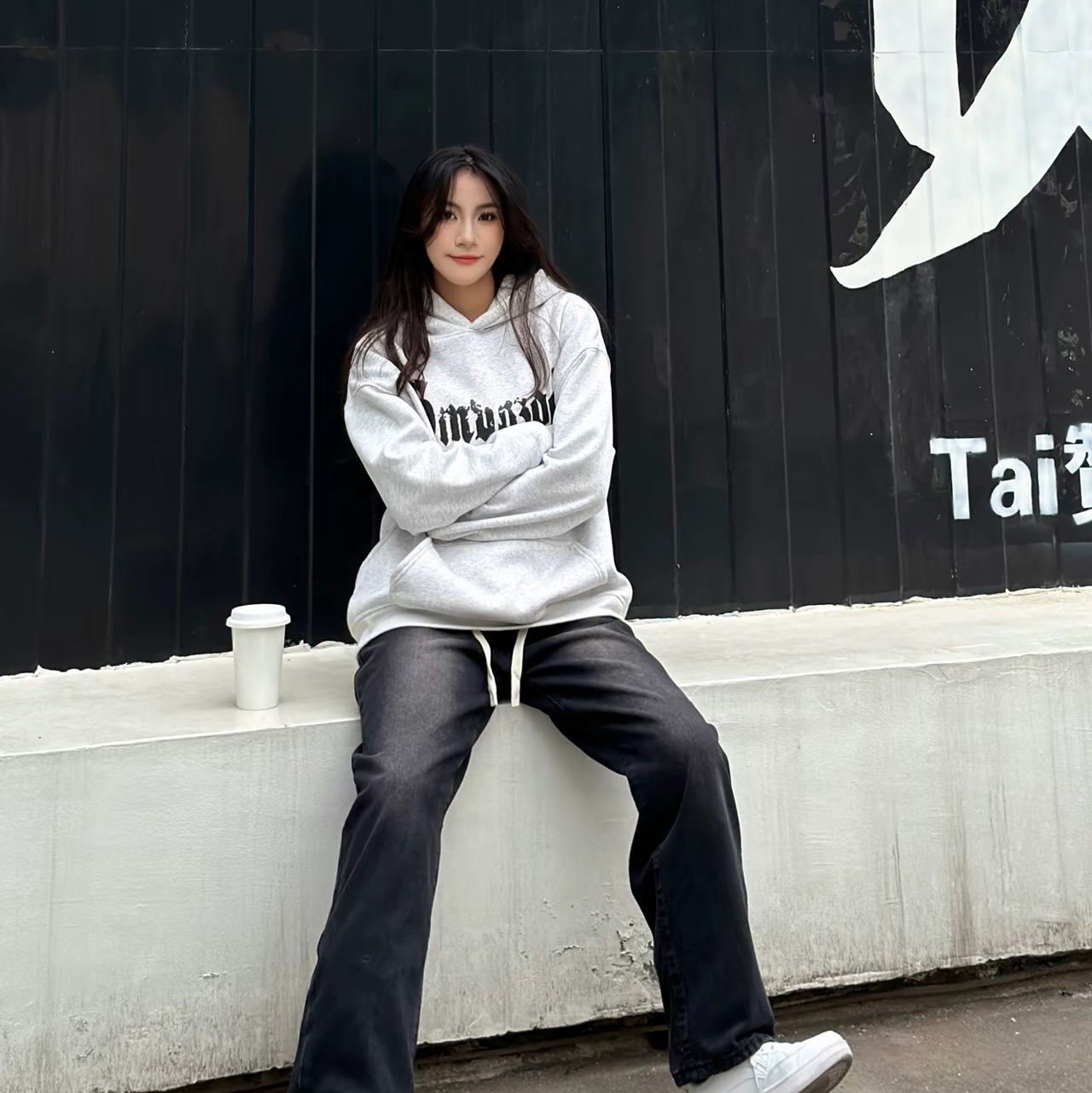 灰色连帽卫衣真的高级‼️轻薄透气的面料质感是秋季的百搭单品➖搭配脏染牛仔裤质感拉满🫥宽松垂感的版型轻松拿捏秋季慵懒感✨整套搭配都是以低饱和度力主 简约得来又不显单调! 图片来源于@MXDT_穿搭小助手
