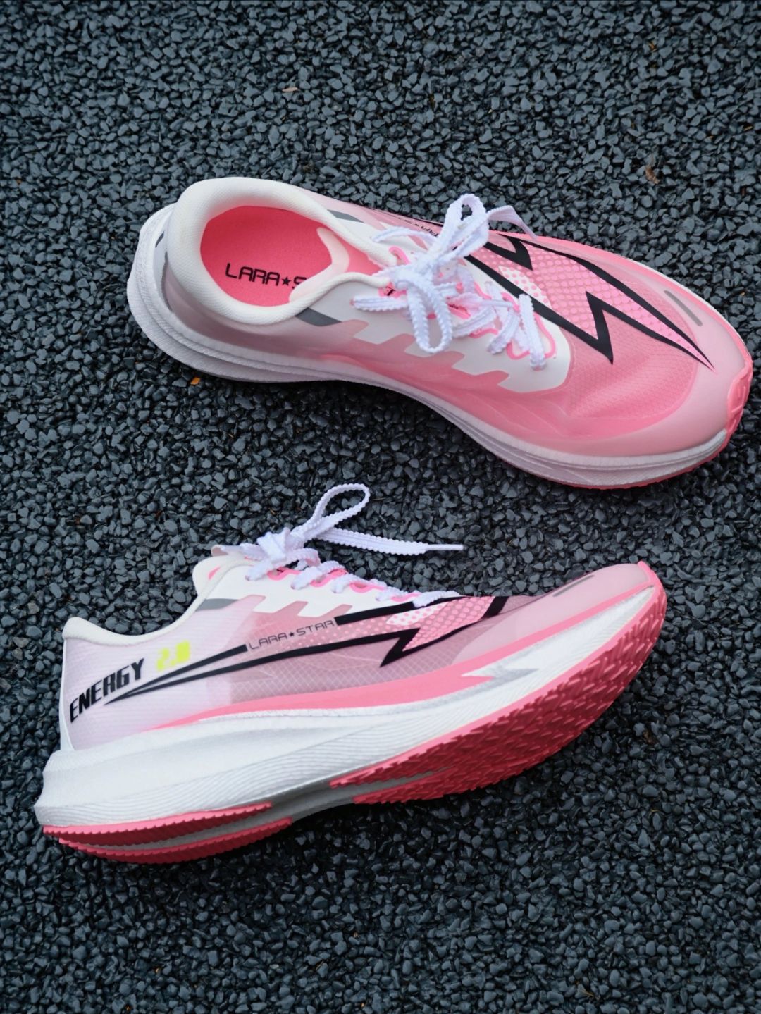劳拉之星能量二代樱粉配色鞋子是真的轻呀,面料好薄还有些透明,我这个脚爱出汗的穿上去都好多了,大底的回弹性不错,抗扭也中规中矩,最重要的跑步时的防滑性也給到了,整体性价比oK的 喜欢不要错过这双跑鞋。