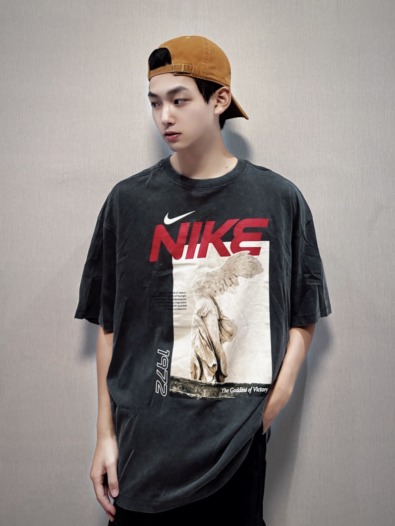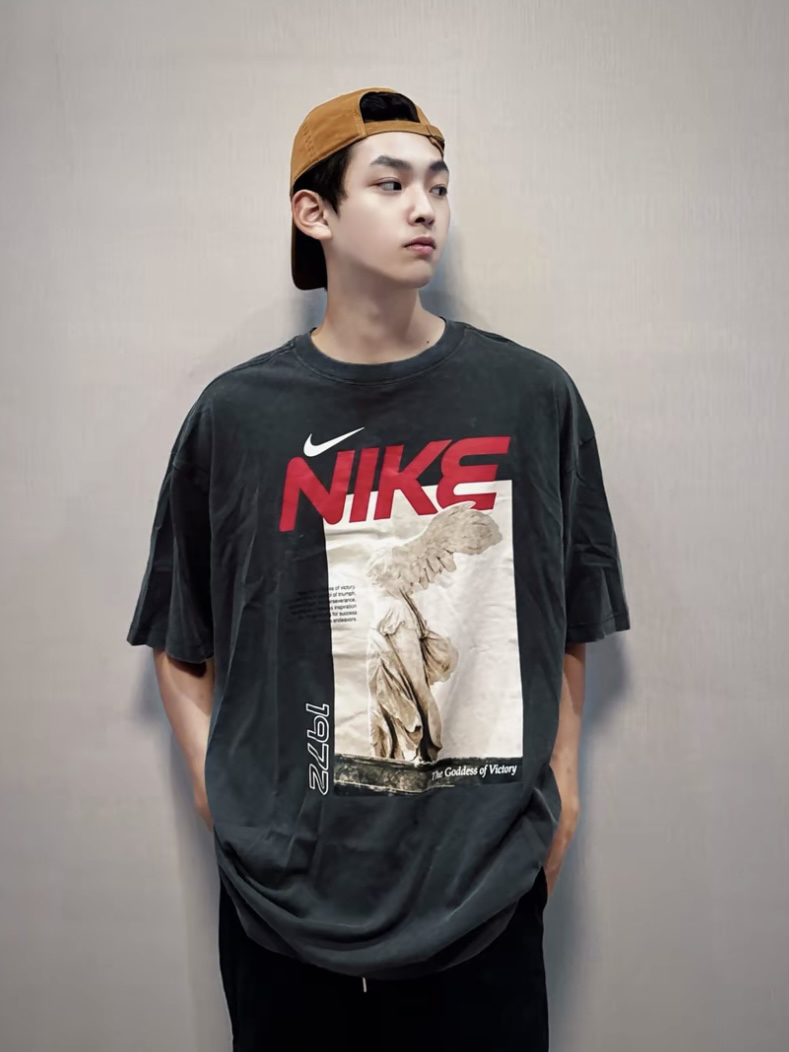 最近超喜欢这件nike水洗做旧印花短袖🥽 胸前是胜利女神的印花设计 非常复古潮流~ 穿上身舒适有型 整个慵懒又高级的感觉 而且非常百搭 男女都可穿🏈 不论是通勤or出街都能轻松驾驭 @会穿的大泡泡☂️