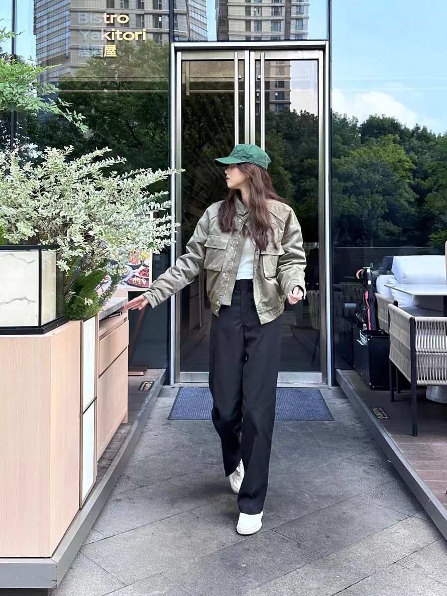 🌈军绿色棒球服➕黑色工装裤 中性风穿搭 酷盖们速来抄作业啦~✔️ 🌈上衣是军绿色棒球服 不仅保暖还敲有质感~👏🏻 宽松版型➕简约宽款式完全不挑人吼~ 🌈裤子是敲帅气的工装裤~纯色的款式又是特百搭~咱就是说谁上身都能秒变酷盖~🙈 🌈今天这一身多少带点慵懒和高级感在的~ (图源网络侵删)