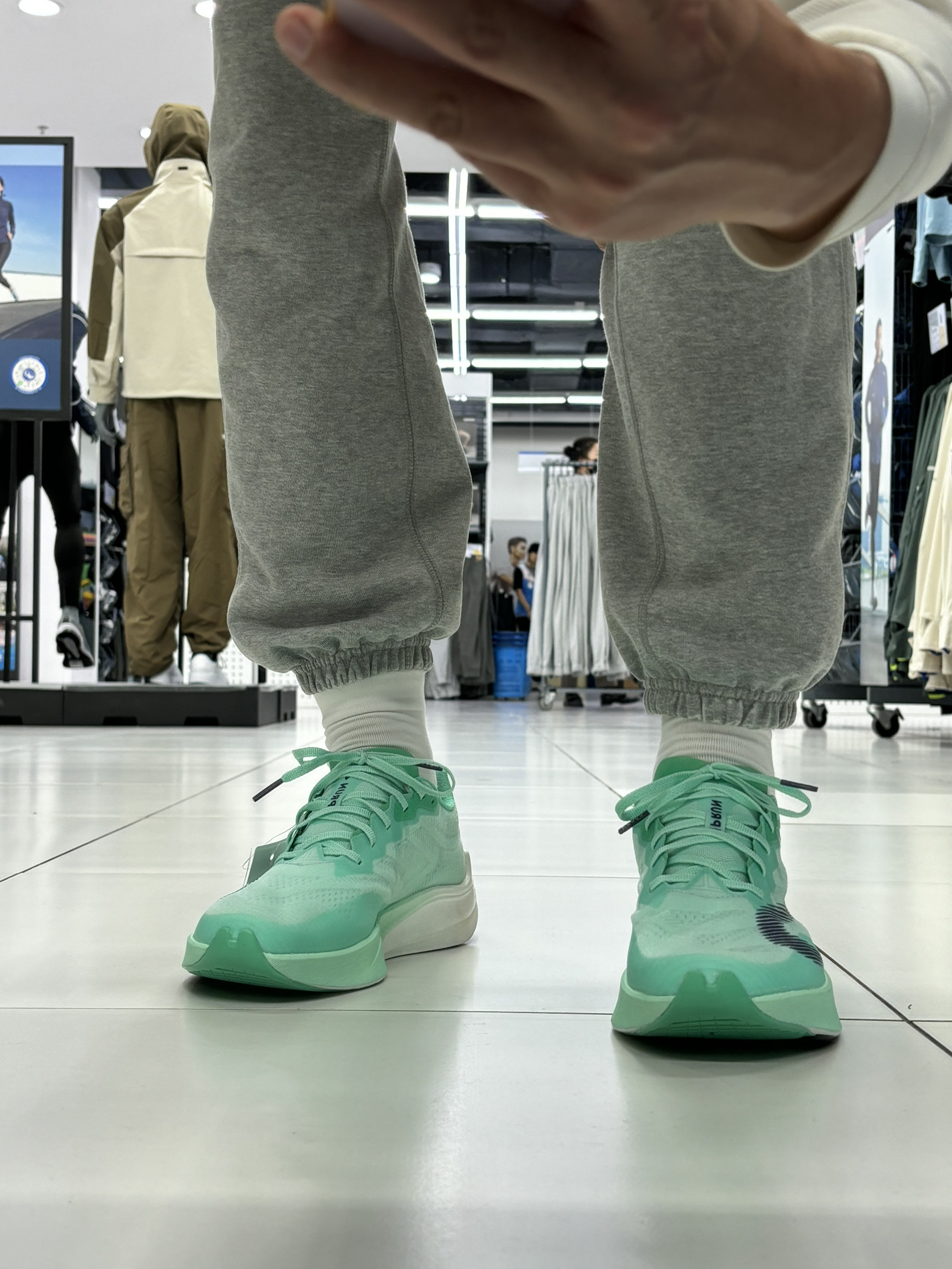 #鞋王争霸赛 #跑马超速装备库 #户外装备推荐 #穿这双去PB #秋天就要松弛穿衣 兄弟们这次的马拉松比赛我就要穿它了 荧光绿色很亮眼 上脚很轻盈,鞋底橡胶防滑面积有点小 鞋面强度不高但是很贴合 鞋舌薄穿起来舒服😌 尺码正常选择 脚感轻弹,重心不高不喜欢