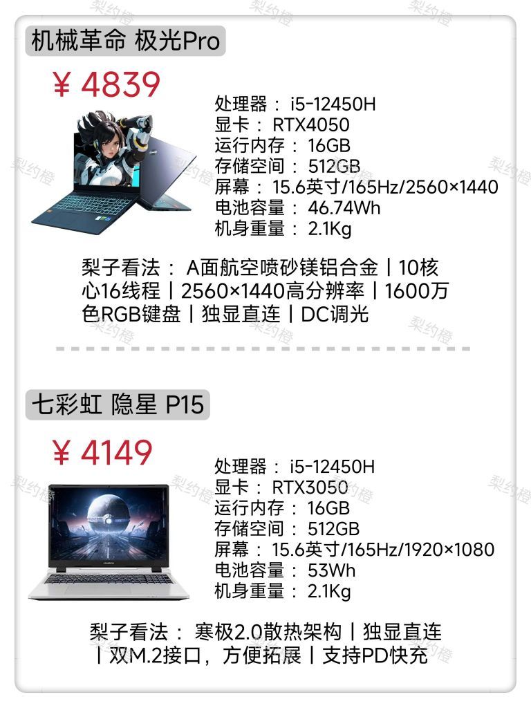 本篇笔记关联了MECHREVO/机械革命 极光Pro RTX4060显卡 2023款 15.6英寸 游戏本 高刷 高性能 黑色、MECHREVO/机械革命 蛟龙16K RTX4060显卡 2023款 16英寸 游戏本 满功耗 高色域 电竞屏 高性能 高刷 星际灰、Colorful/七彩虹 隐星P15 RTX4060显卡 2024款 15.6英寸 游戏本 高刷 标压 高色域 电竞屏大屏 独显 高性能 直连 雾屿白等商品,为用户提供真实的使用体验和购买参考。