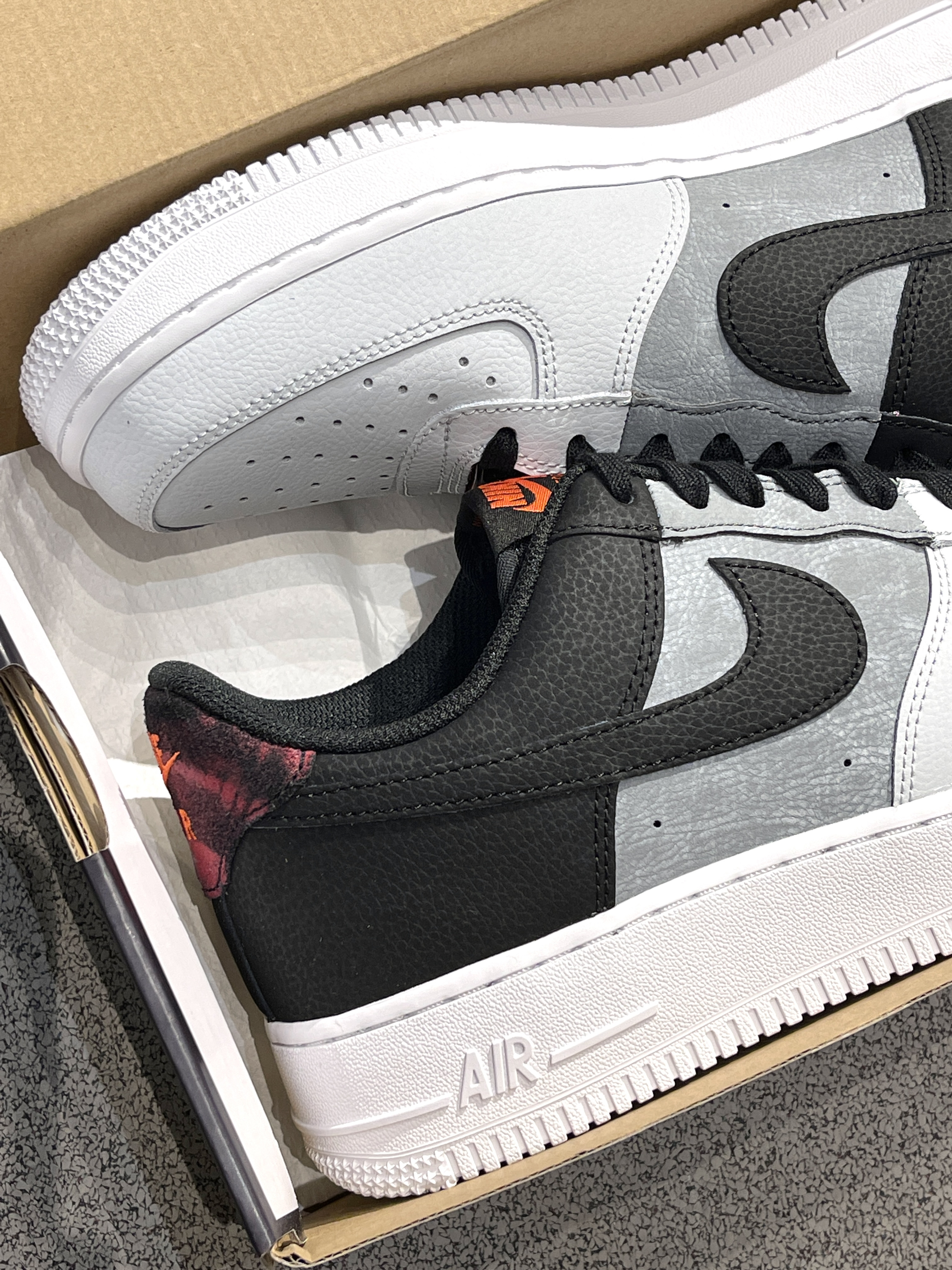 秋冬配色AF1就位啦!🤩 Nike|Air Force 1 07 LV8 低帮板鞋“黑灰红”,经典空军一号鞋型,鞋面是渐变效果,逐渐变深的感觉~上脚穿起来独特又亮眼!😍