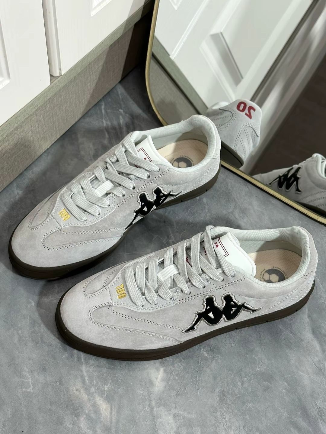 🧐冷灰配色好小众好特别❗✅ 低饱和度配色不会很挑衣服麂皮鞋面质感十足💯 kappa这双德训鞋穿着真的好软好轻便~✅真的好好看冷色系很有质感 皮面的材质上脚也太显脚瘦啦脚感也很舒服 日常搭配衣服裙子真的很百搭的一❗❗ 喜欢的小伙伴 宝子们快快入手叭👀👀