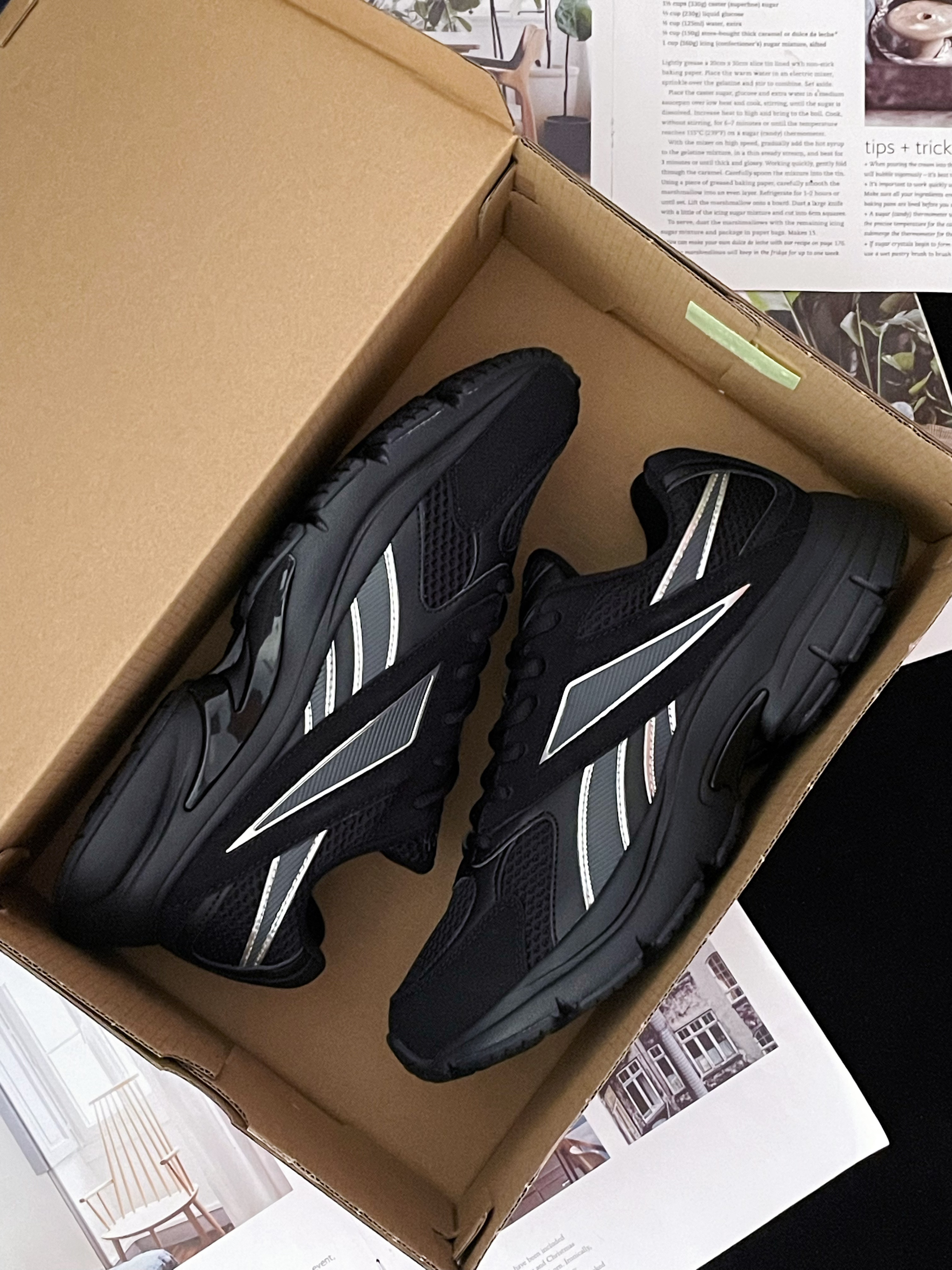 今天给大家分享这双 Reebok PREMIER ROAD CN『黑武士』跑步鞋 鞋款由酷酷的黑色为主色调 鞋侧银色的品牌Logo极具辨识度~ 网眼织物+皮革的拼接鞋面 兼顾了良好的透气性以及强度支撑性 厚实的泡棉中底软软的 脚感舒适轻便~ ⚠️尺码方面不偏码 建议正码选择