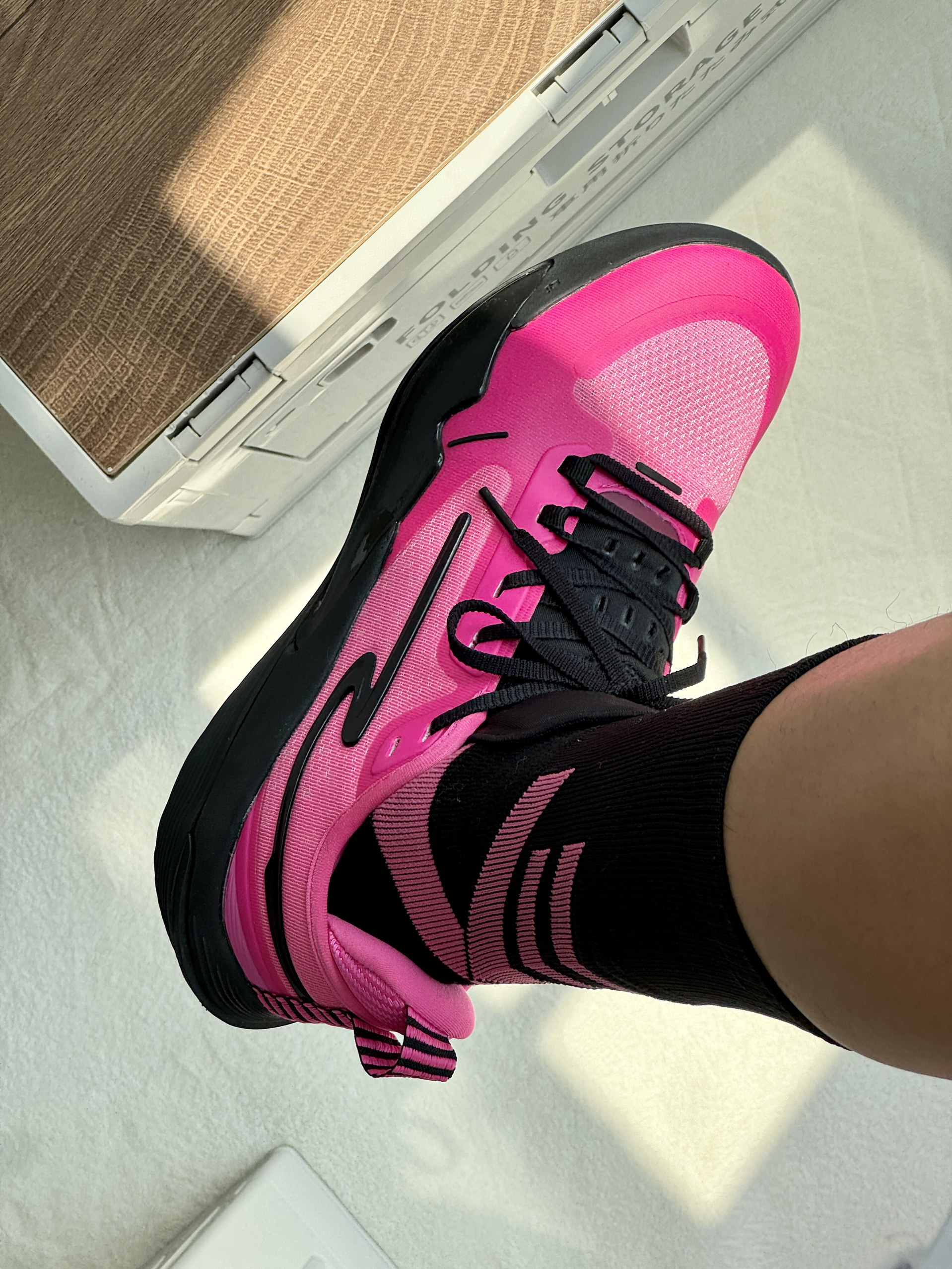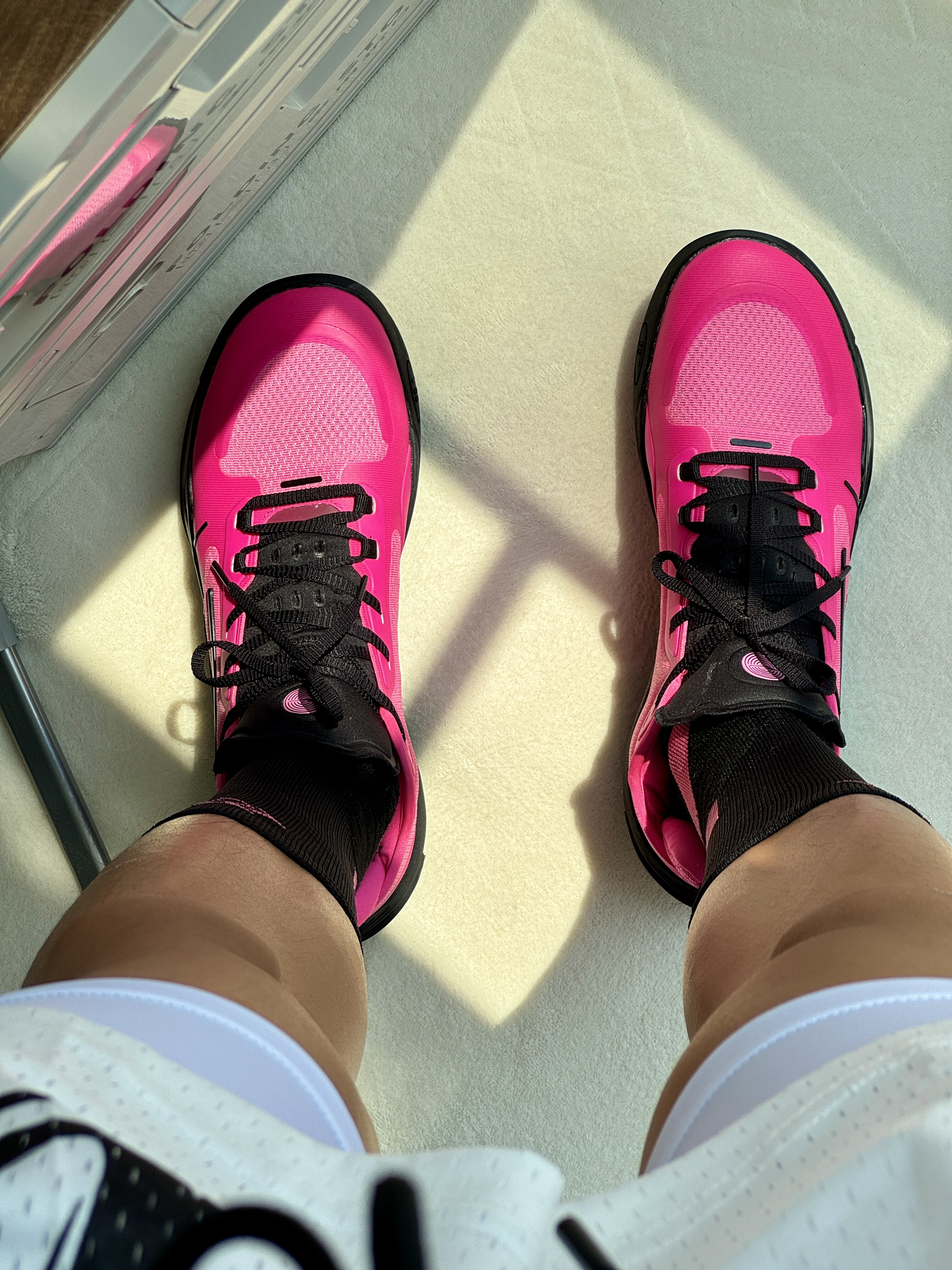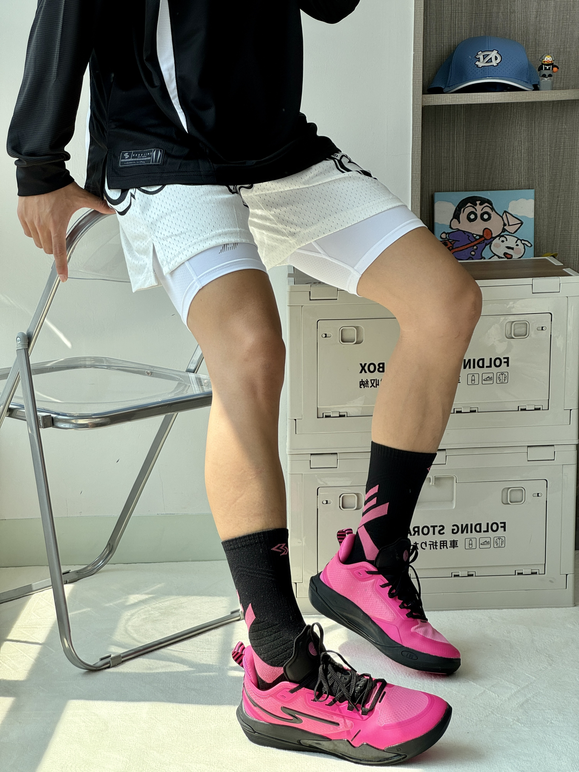 oi大家好这里是爱球鞋穿搭的小学生的故事今日份黑粉色球鞋穿搭有点小酷吧 👔🩳 降温了黑色投篮服搭配白色短裤打球合适又百搭 👟 奇袭1黑粉黑粉的火龙果配色搭配黑粉色球袜打球这样穿我赌你肯定会觉得酷!
