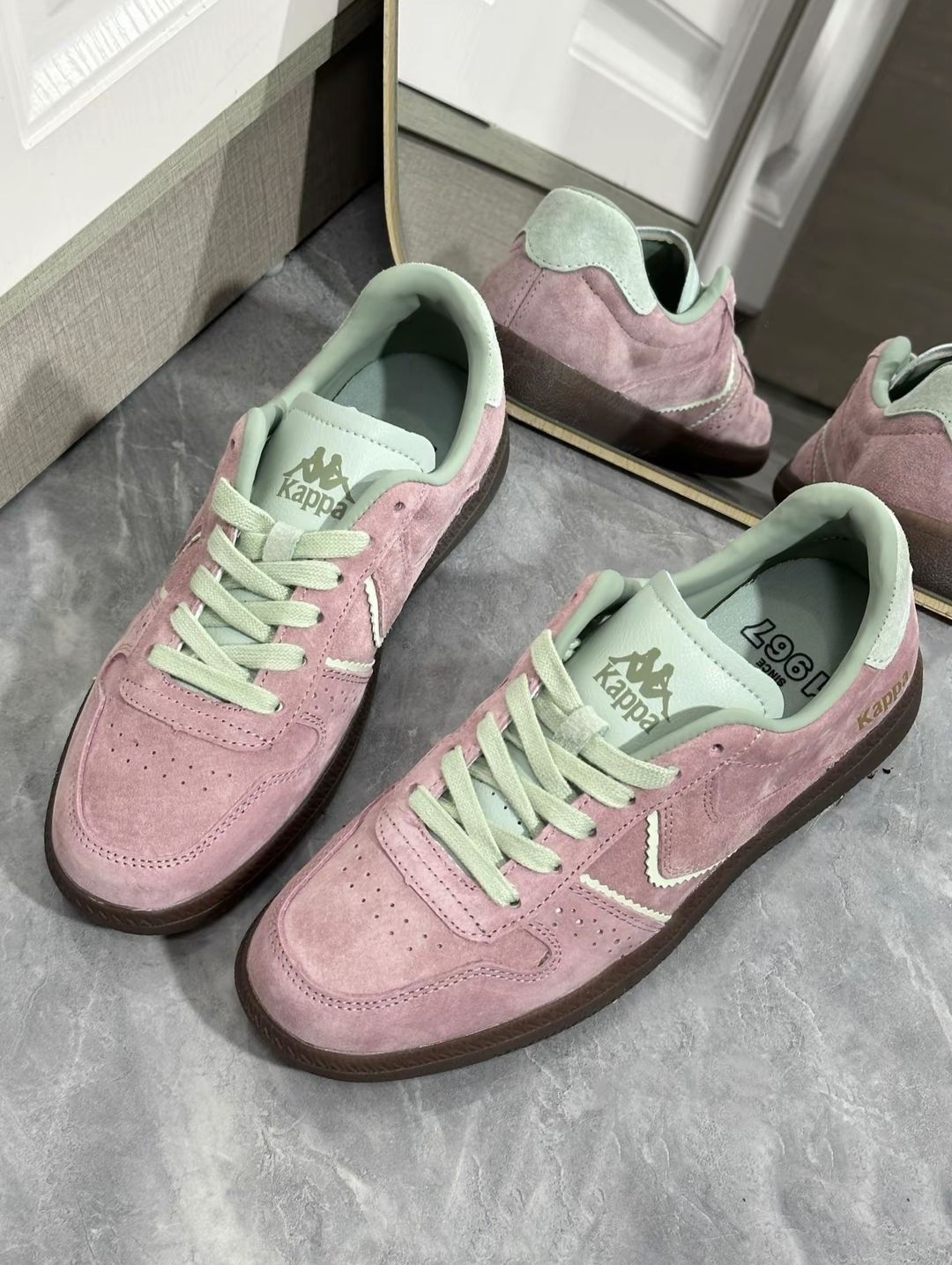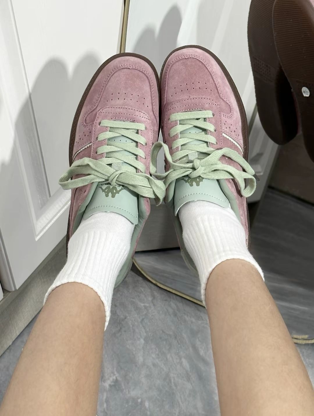 kappa这双德训鞋的配色好适合夏天低饱和度粉配绿色复古又很清新版型超秀气,特别显脚小✅ 上脚很软很舒服~日常通勤上街穿都🉑 #kappa #citywalk选这双 #买假不如买真值#选对鞋才能上大分 #体考提速靠这双✅✅