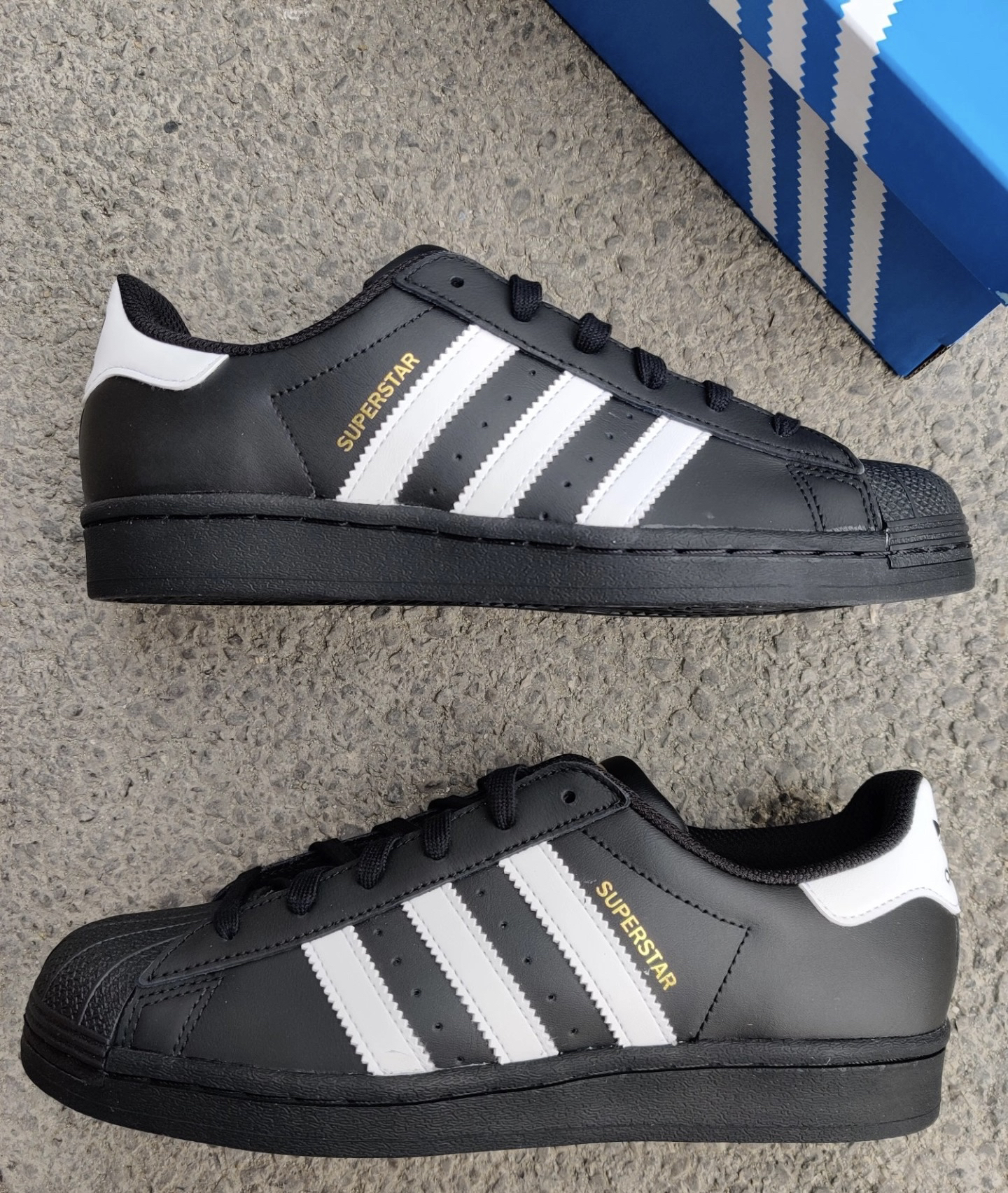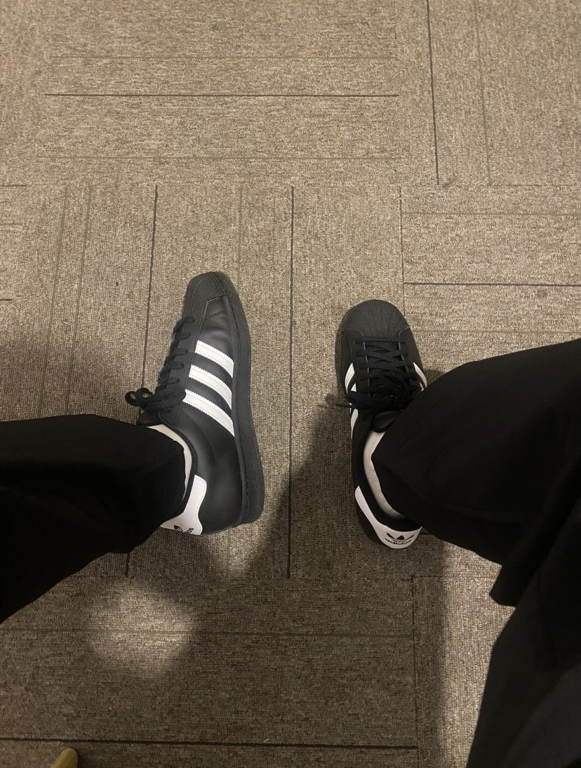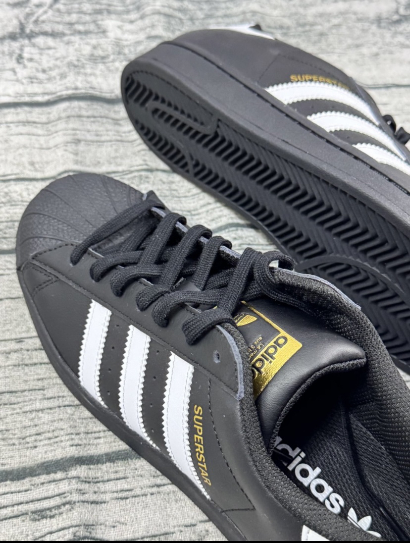 🤓今天给大家分享的是阿迪达斯superstar 系列。 😎鞋子以黑色为主,和鞋子两旁以白色作为搭配。作为一双经典款的板鞋这次以黑色为主,奠定这双鞋子的高热度。 🥳这双鞋子的百搭性肯定不用多说,十分简约百搭。喜欢的宝子们可以入手。