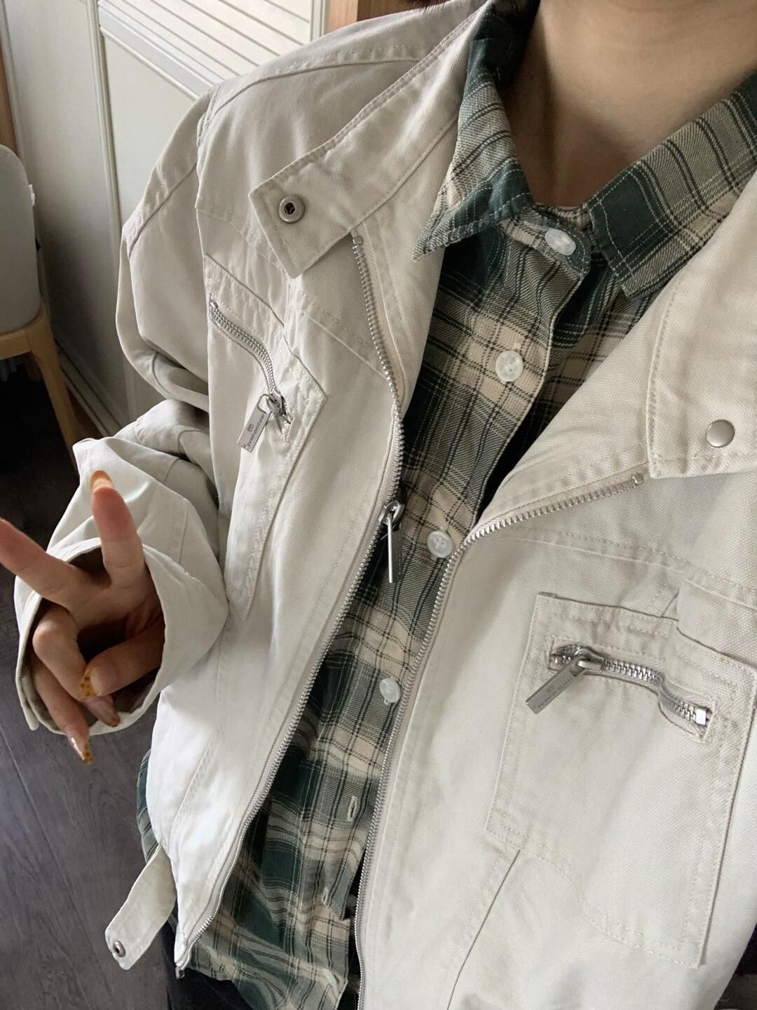 hello 宝子们 今天给大家分享一件秋冬夹克 🔆灰白的颜色 搭配上格子衫,一种成熟的味道,精英的感觉,特别适合喜欢去公园之类的人。 🔆除此之外,里面还可以搭配一件白色的体恤,即清新又干净,特别适合大学生游玩~