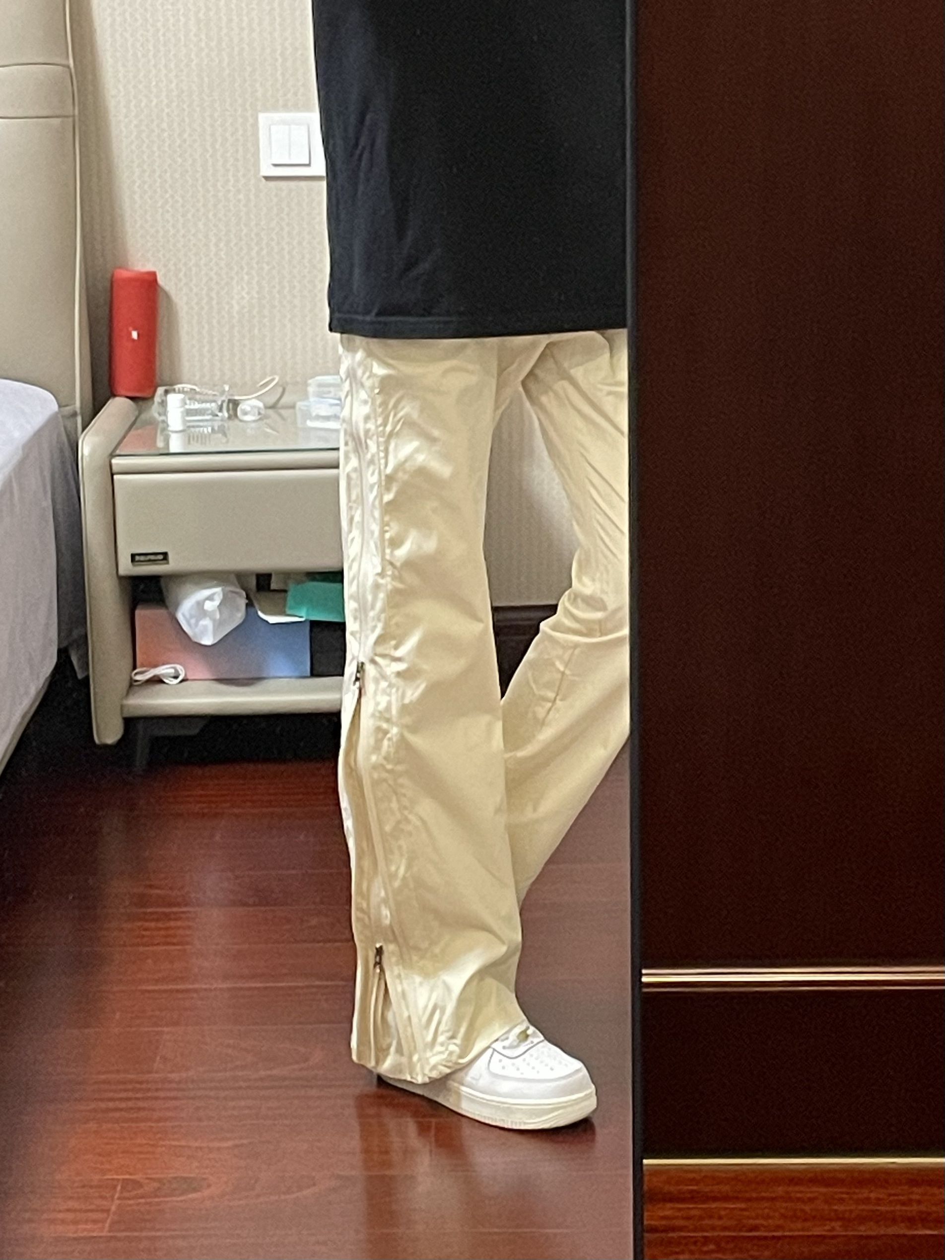 啊啊啊今天穿的是一条杏色双层全拉链机能直筒休闲裤,这个款式真的太酷了,我挺喜欢的。颜色也好百搭,侧边双拉链很有设计感,可以拉到底,直筒版型上身显高显瘦显腿长,面料舒适秋天穿刚刚好,出游或者日常休闲穿搭很合适,男女同款,谁穿谁帅,我真的太爱这条裤子了!简直就是我的梦中情裤啊!