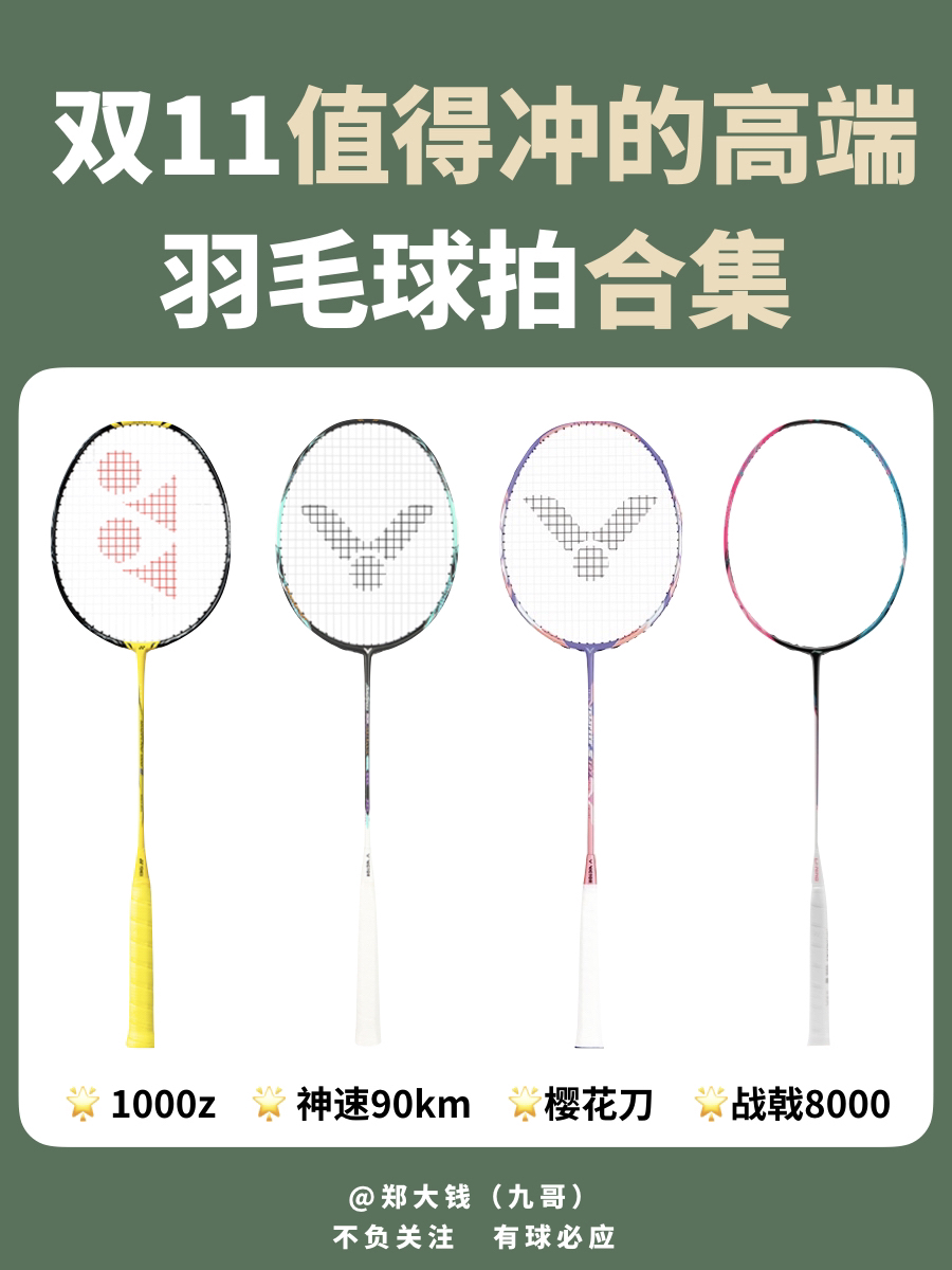 接到通知,这次双11首波时间是10月中旬,有预售,我们先来大胆预测一波,一些可能价格比较好的,如果有你想要的,完全可以等到双11的时候买,到时候会有攻略,可以直接抄作业那种。 宁子家的 🏸雷霆80/战戟8000 这两个一定有,参考618价格,想买的朋友可以等。 · 🏸锋影900n/战戟9000 这两个也会有,价格应该比618便宜,可以蹲。 其他有想要的也可以进群蹲着,都会有作业抄。 · 胜利家的...