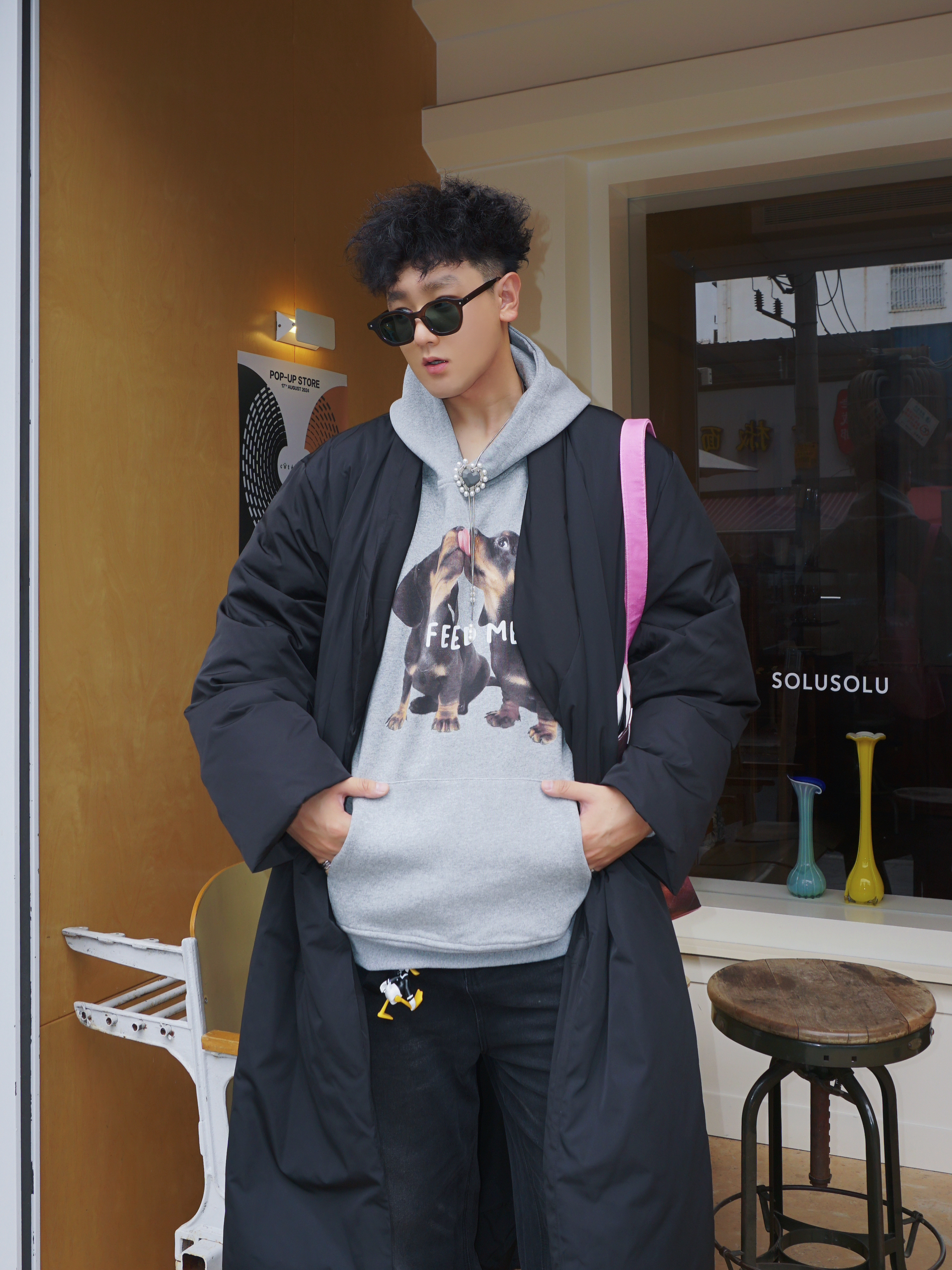 成都猝不及防就降温❄️实在难顶啊❕ 今天是粉色养成系💓韩系奶狗Outfit, 灰色小狗卫衣➕长羽绒大衣也太韩了~ 微阔腿牛仔裤搭切尔西靴👢一眼浪漫, 用粉色微亚的Tote包💕点亮全身色系, 越来越爱俺的莱斯利卷🐶没像老奶奶哈哈~ - 🐶Fitcheck🐶: 🧥:BASIC MATCH 👖:BASIC MATCH 👔:FEAR4FREE 🕶️:PutOut online 👞:ROCKSTEA...
