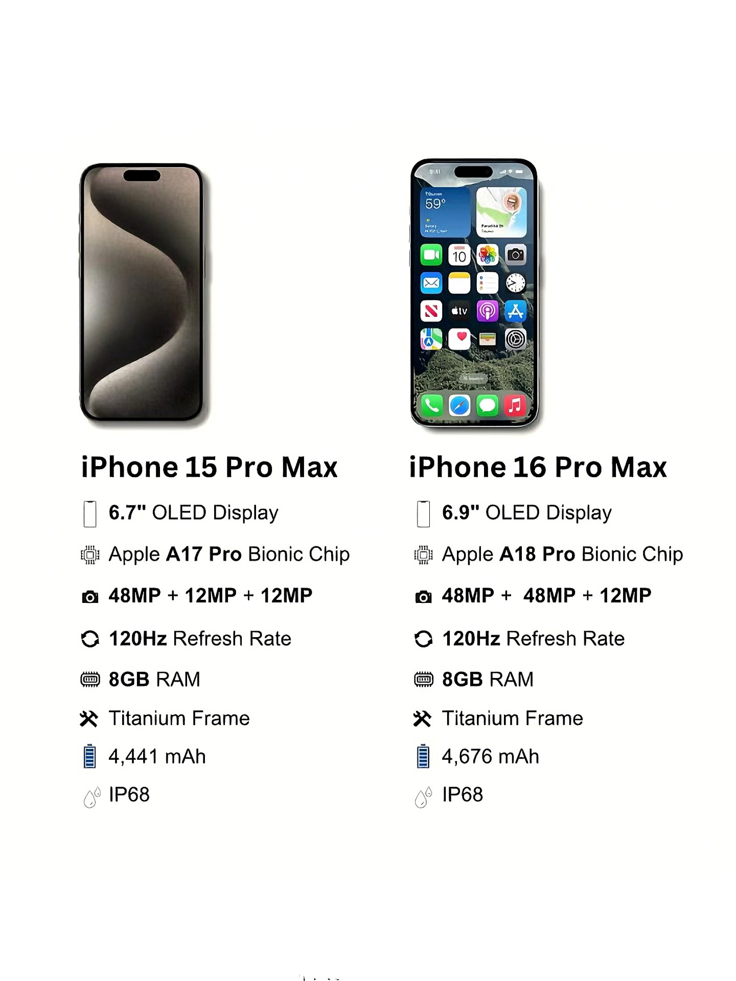 15pro Max 对比16pro Max发生了哪些变化‼️15pro和16pro的主要区别: 1.处理器:16pro采用A18 Pro芯片,CPU和GPU性能分别提升15%和20%。 2.相机:16pro的相机效果更好,加入了电影级别的 4K120fps规格。 3.续航:16pro的续航能力大幅提升,Pro 系列视频播放续航增加了4小时。 4.外观:16pro的尺寸有所提升,加入了新的多功能按钮...