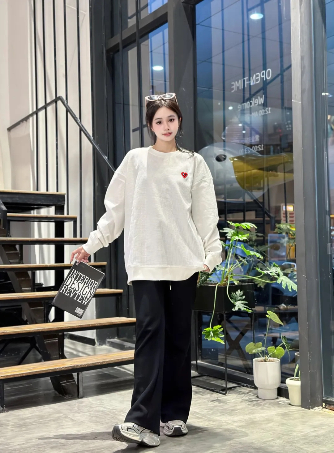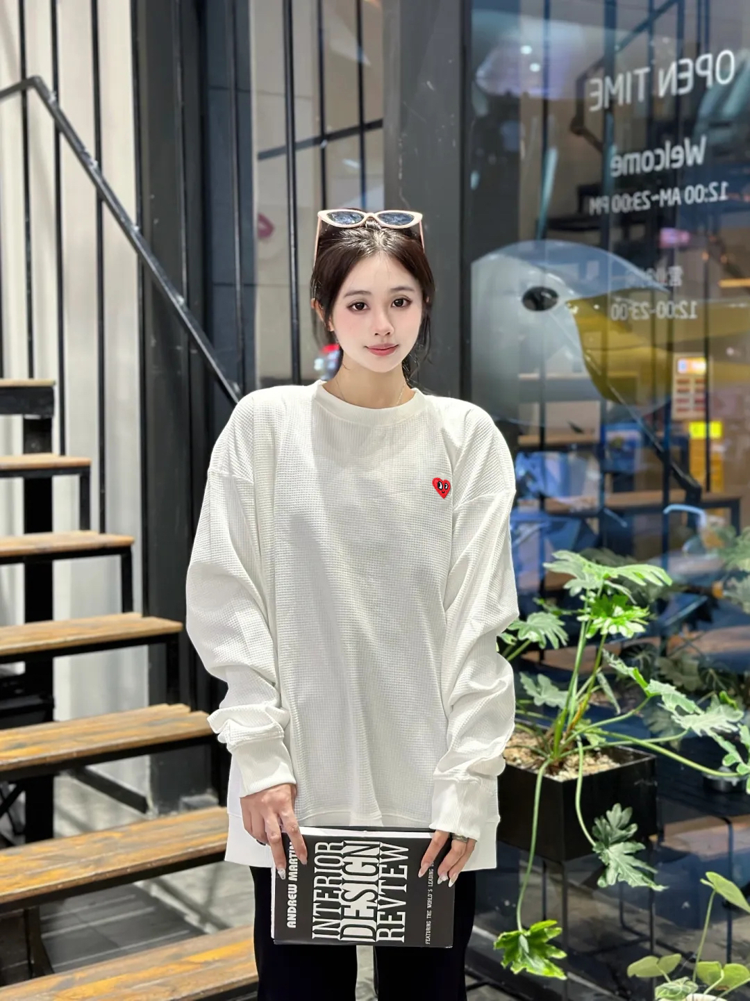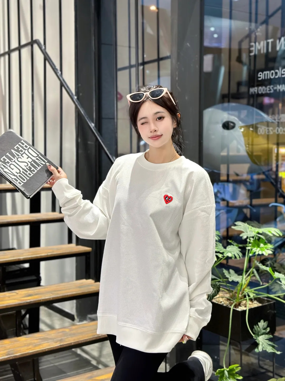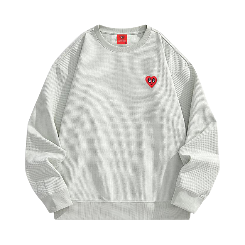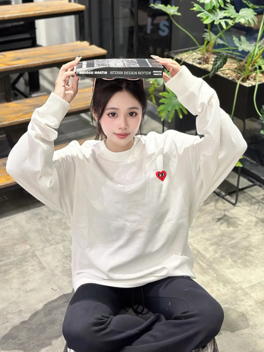 不得不说日常穿得简单干净就很加分,找到好版型的卫衣真的很关键,这件查尔斯桃心华夫格圆领卫衣上身自带氛围感,面料舒适版型挺廓,下身搭配一条黑裤就能轻松出门了