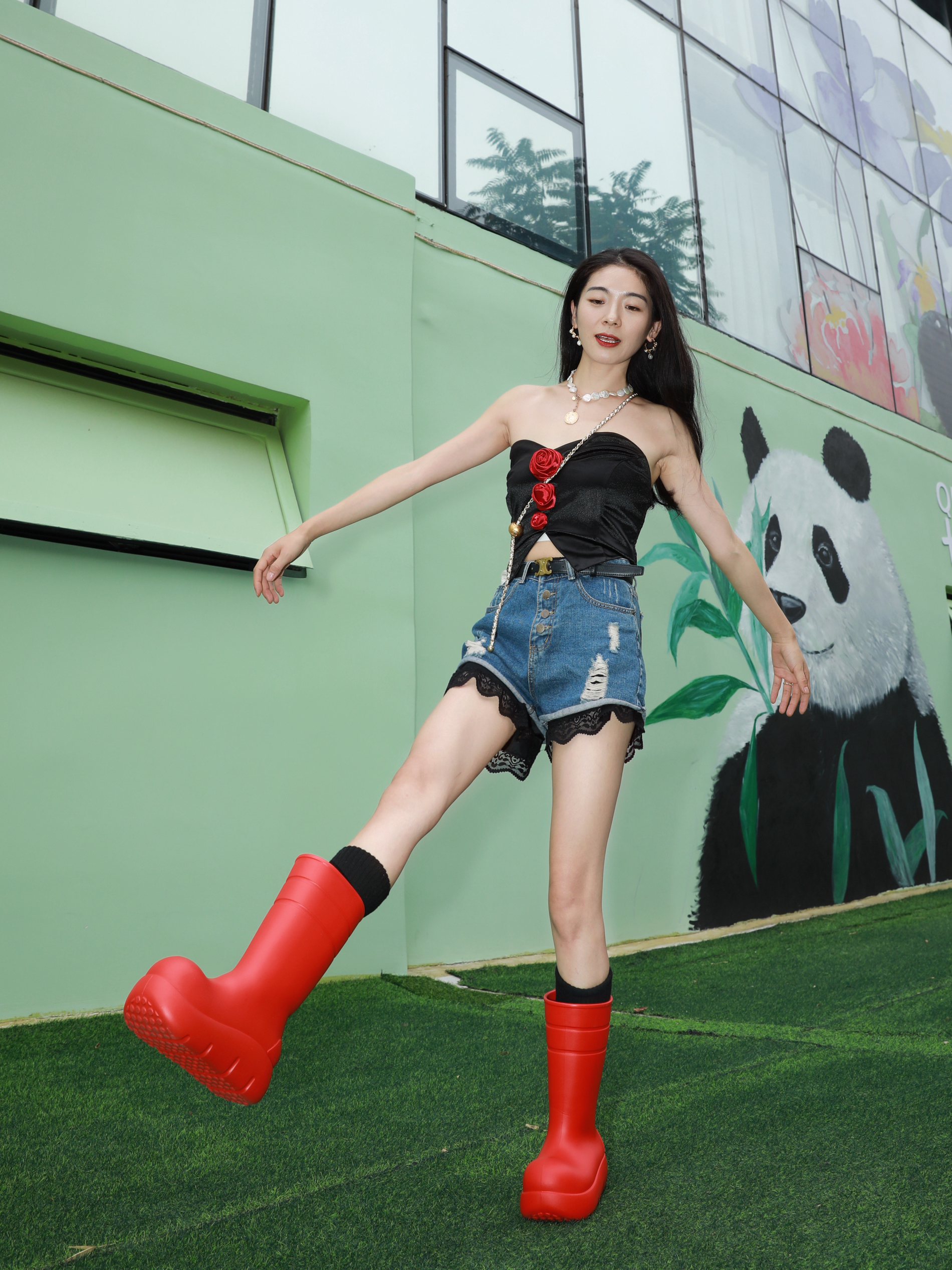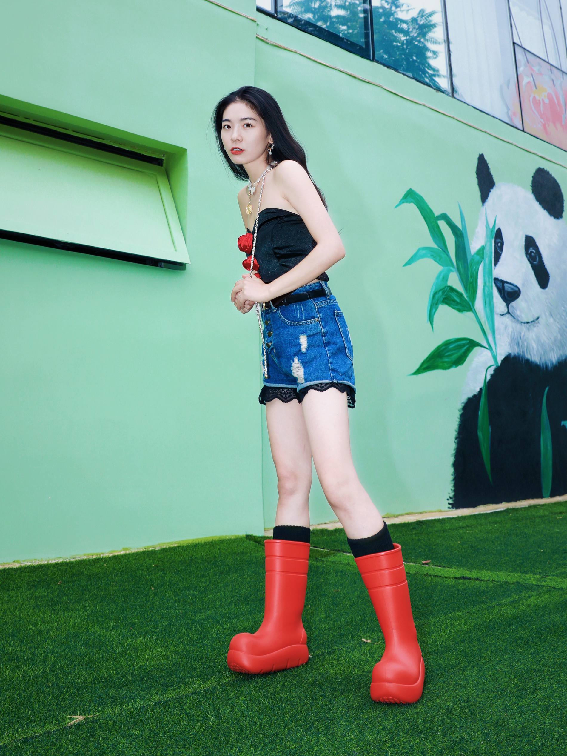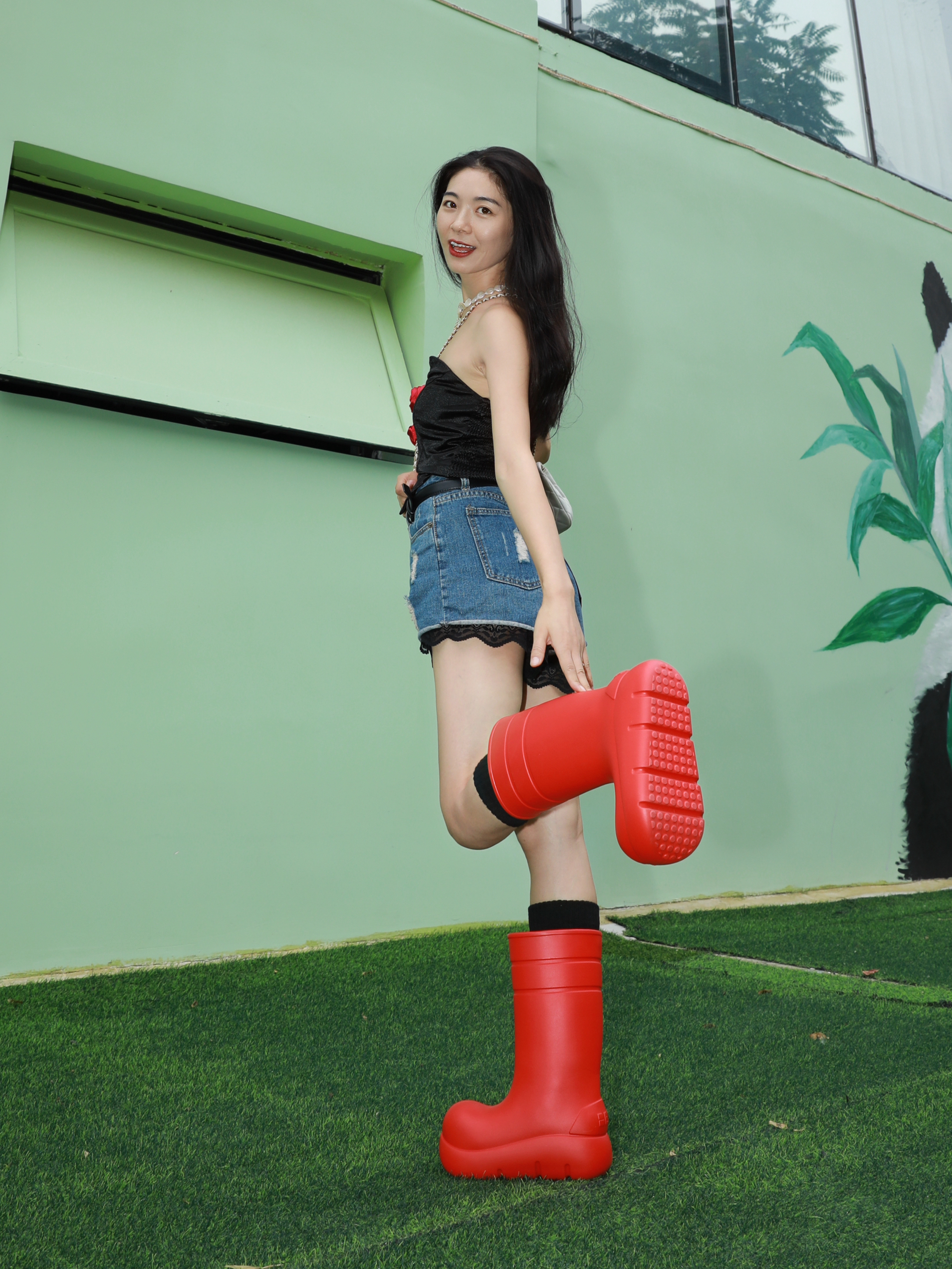 说了雨靴不止下雨穿~你还不信 今年很爱红色,红红火火 简简单单的穿搭,加上一点红 就也可以很出彩😝 这双Beys家得到红雨靴就是今天的点睛之笔 搭配牛仔短➕红色抹胸,那股慵懒感 都快溢出屏幕了🤭🤭🤭 雨天穿防水防污,再也不怕弄脏鞋鞋 晴天穿就是百搭的时尚单品✌️ 自带厚底增高~显高显腿长 长筒围就是修饰腿型~显腿直 轻便又好穿户外活动日常citywalk都适合