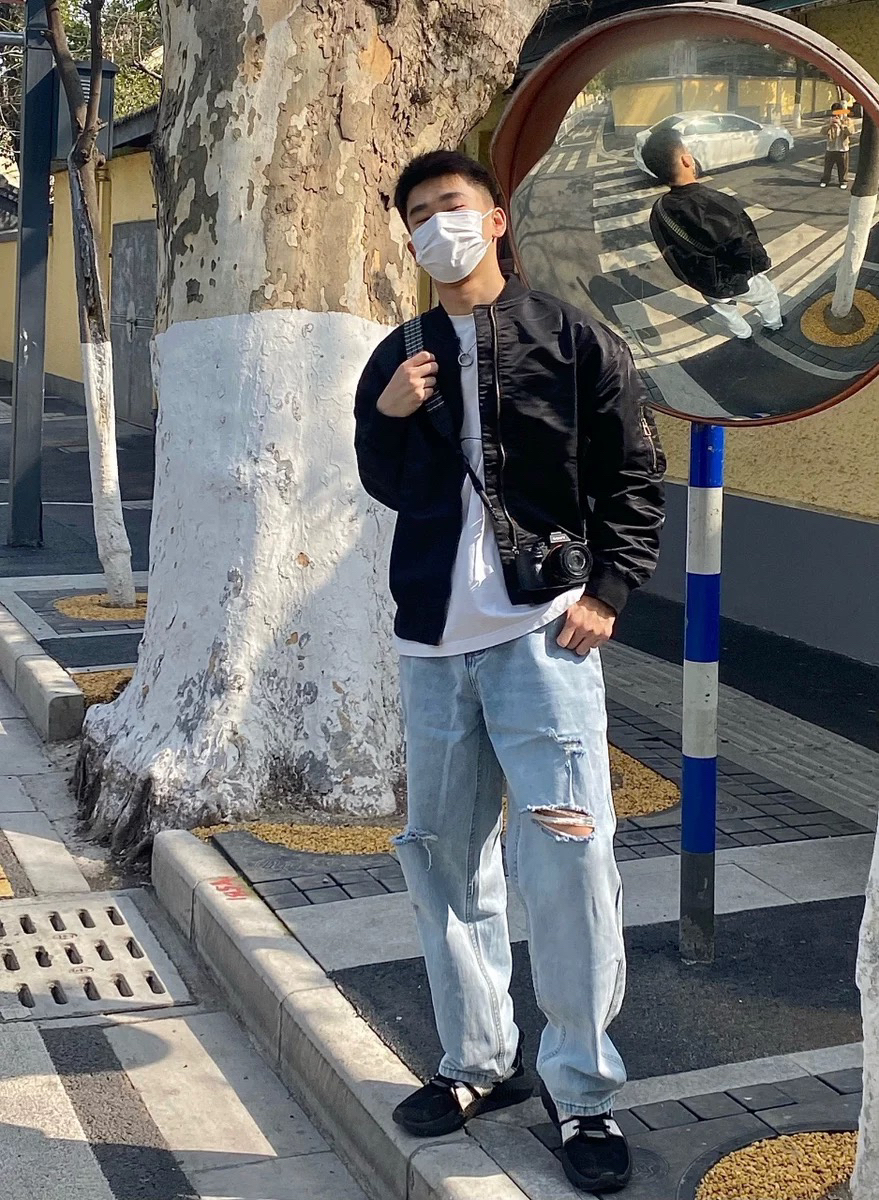 黑色夹克真的是男生的医美 对于我来说毫无抵抗力 衣服版型很力挺 很有气质非常🆒 纯黑的衣服点缀银色拉链 高级感拉满 也是很中性风的夹克🫧 男女都可以驾驭 做情侣装也很不错! @宇贝贝613🪃
