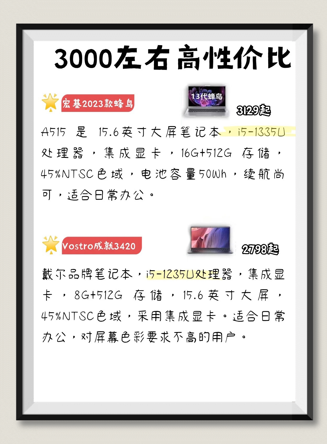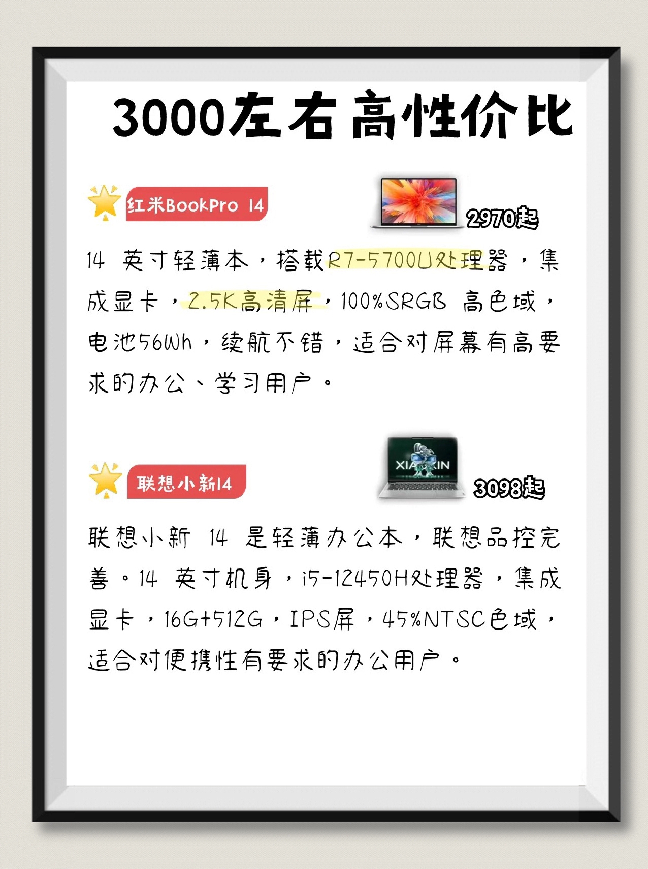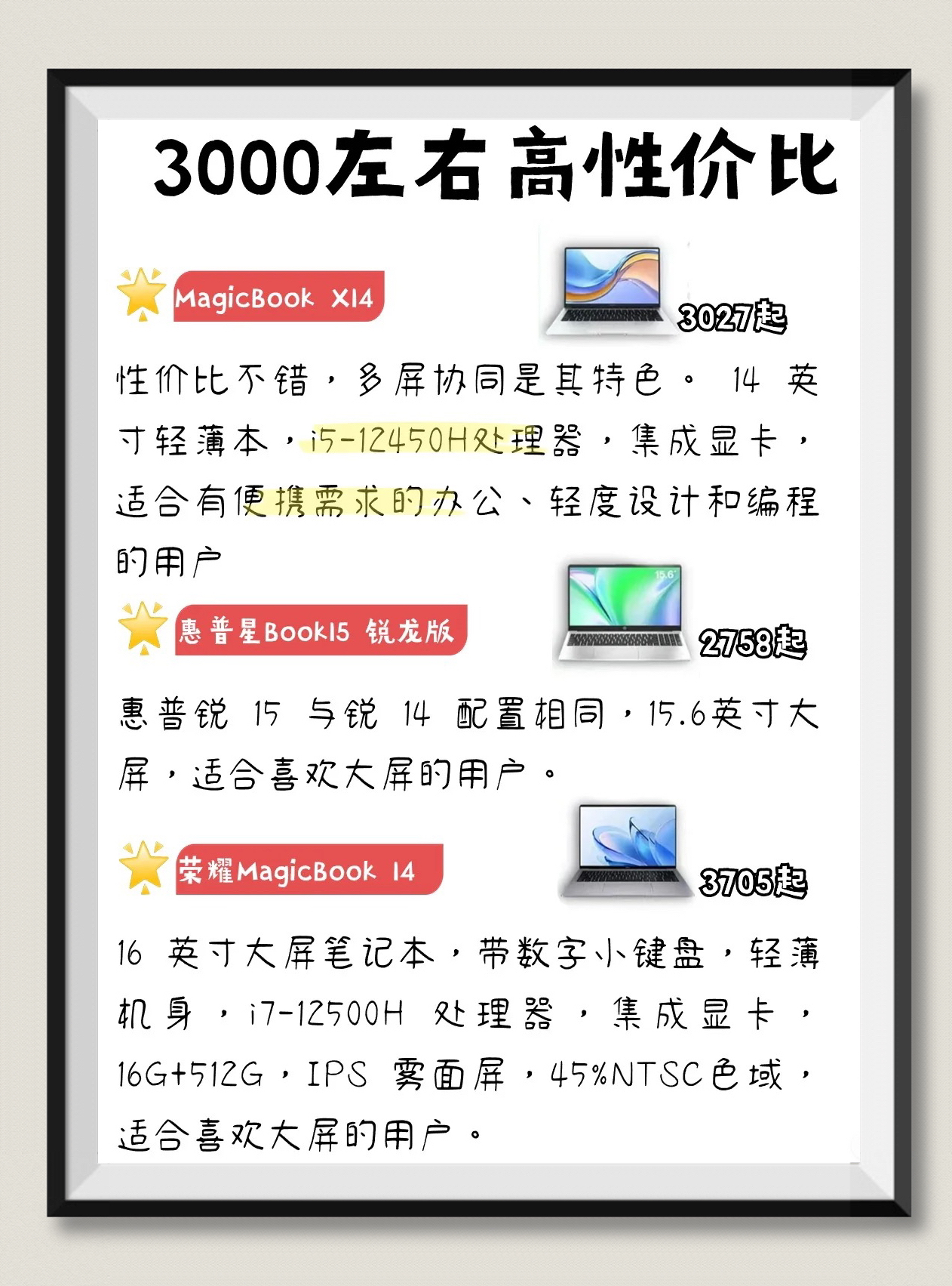 预算仅 3K 也能挑到好电脑!这里为大家推荐 9 款高性价比的笔记本。这些笔记本在 3000 元左右的价位,既能满足日常的基础需求,又具备专业品质。无论是文档编辑、网络冲浪,还是影音娱乐,都能轻松应对,每一款都是性价比之选。 首先是联想 IdeaPad 15,它堪称日常办公的得力助手,拥有 15.6 英寸的宽阔视野,由 R7 - 5700U 芯片驱动,配备 16G 内存和 512G 硬盘。其色...