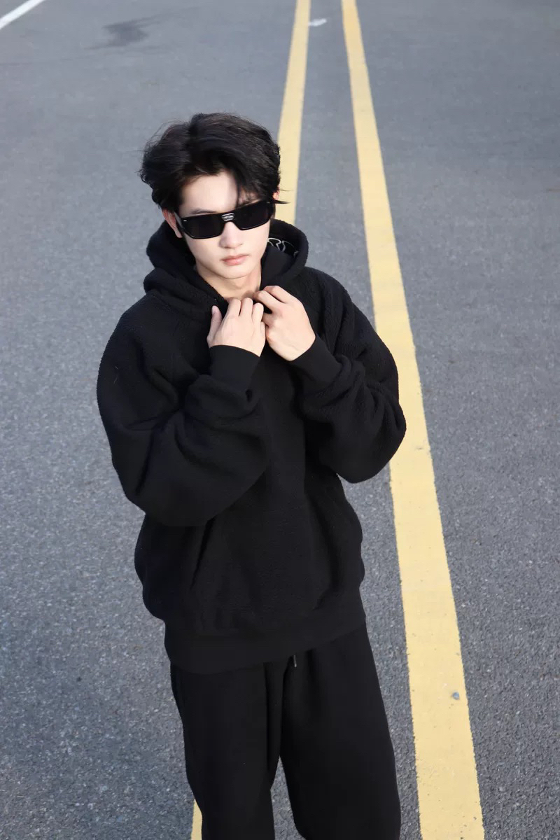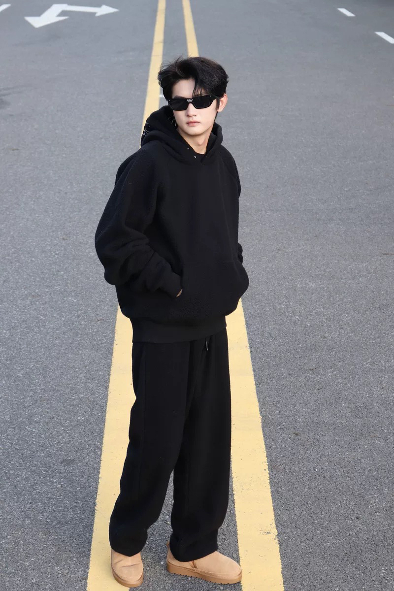 这件软糯糯的羊羔毛摸着真的好舒服 加绒加厚外套 上身超暖和不臃肿🆒 下面穿的是黑色束腿裤一整套看起来就很有精神这件版型非常好 ▪️很修饰腿型 上身没有贴身感 超级适合腿不直的兄弟们~ 图片来源于@LiYangd