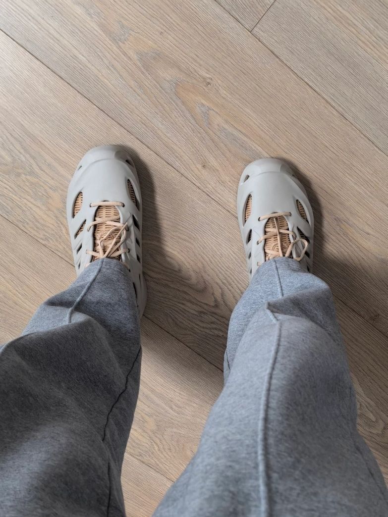 别被鞋体的🧀洞眼骗了, 不会凉飕飕, 『EVA外壳上的洞眼』为了『透气不闷脚』的秋, 因为『内靴』是有『厚度和包裹』的, 🦶的冷暖看你『🧦的薄厚』。 所以用了经典鞋型『climacool』, 🆒是为了秋天不厚重,🦶清爽,自然🆒😎 『楦型标准』, 但是因为内靴🈶包裹, 建议+0.5码。