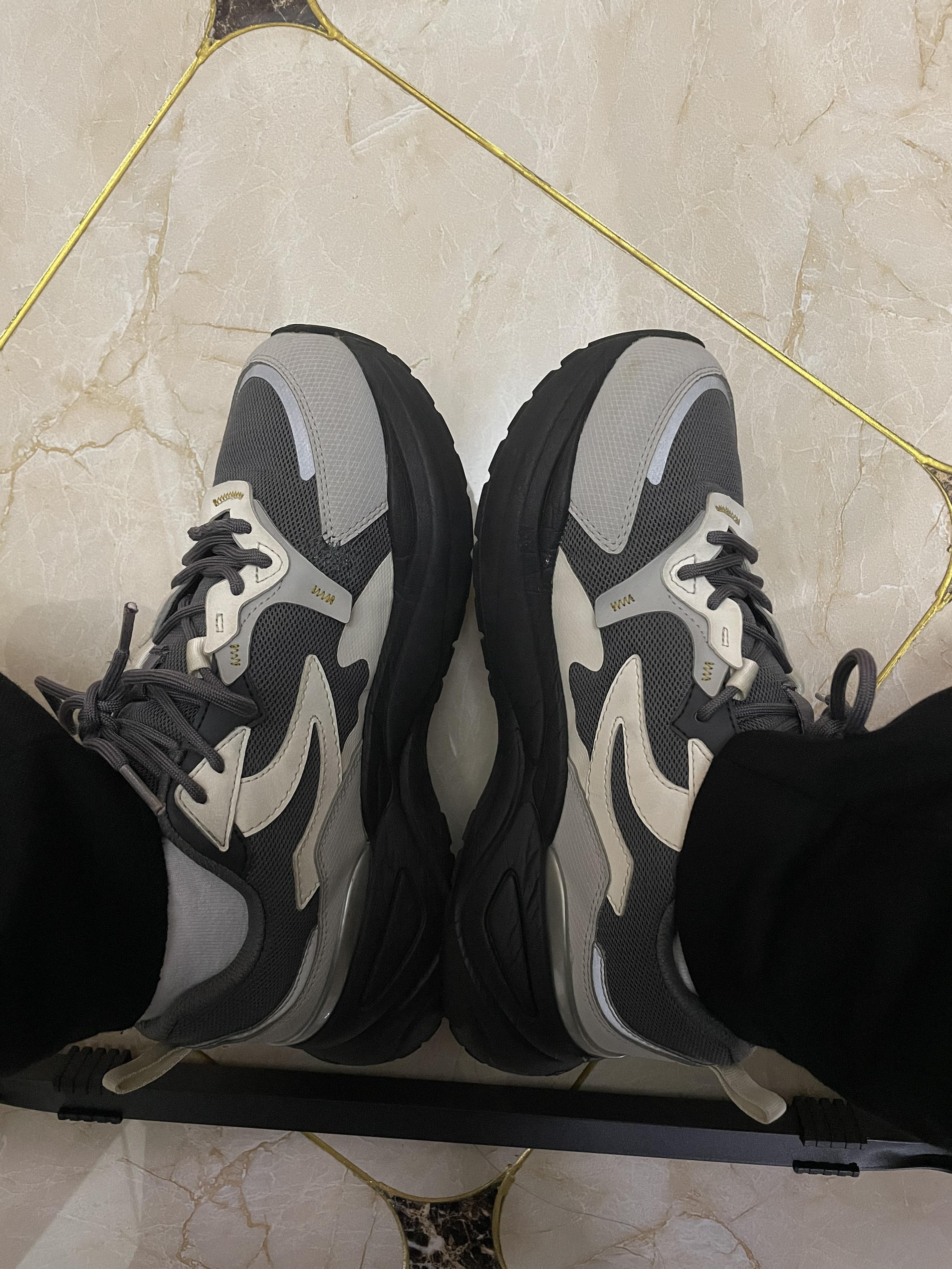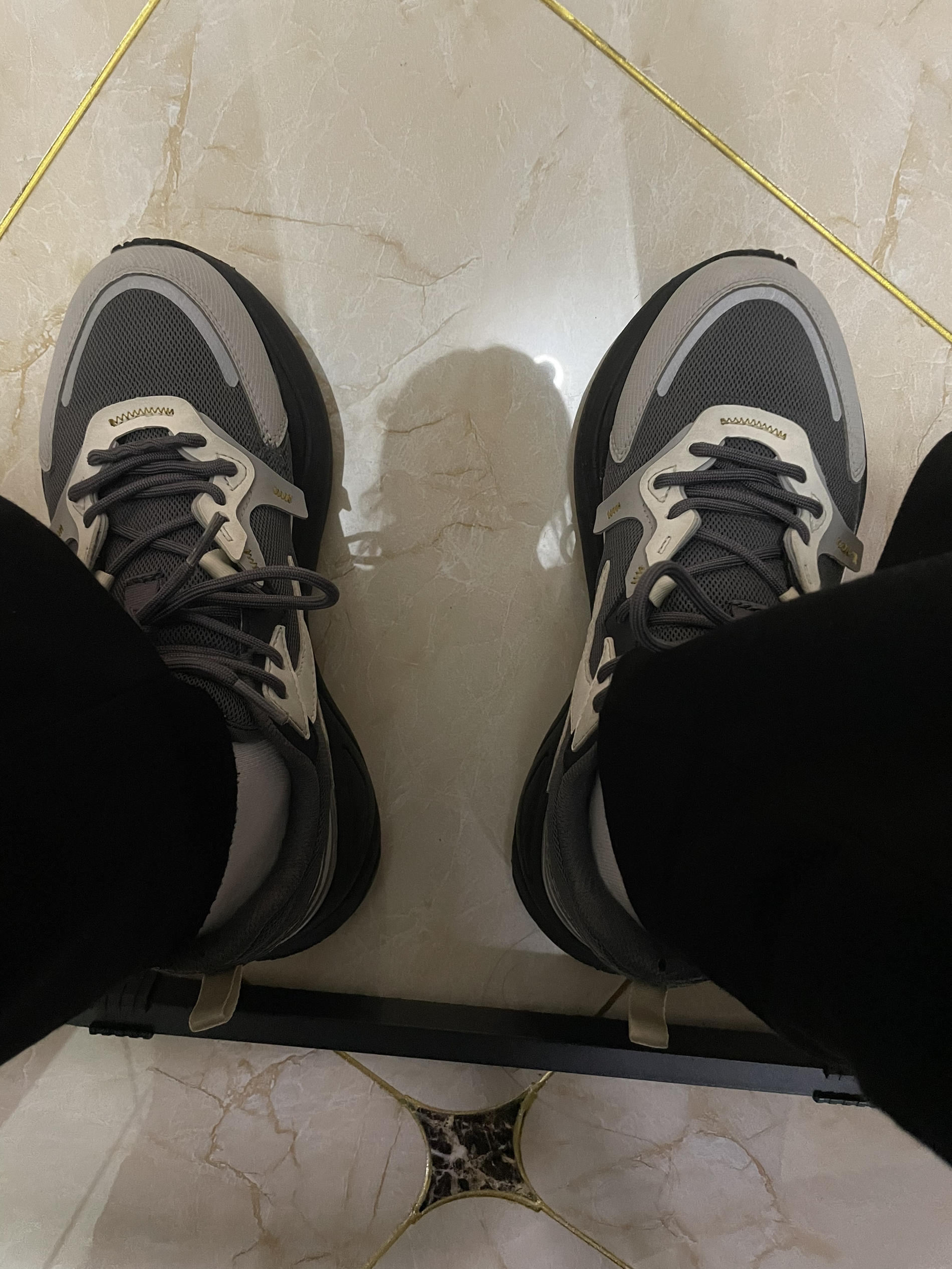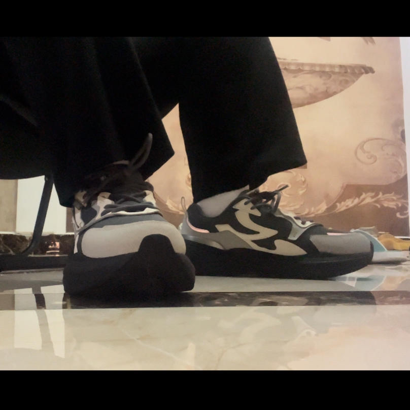 这款稍微厚一点点,适合北方春秋穿,鞋底也很软,鞋跟也很高,很百搭,但是跟硬糖三代比(之前发过)🧐🧐🧐我还是觉得硬糖三代更好看。 但是这个带点灰色也是一个亮点吧,也很百搭!不知道是我的原因还是这个鞋质量的原因,左脚的内侧网烂了一个小洞,让修鞋的缝了一下