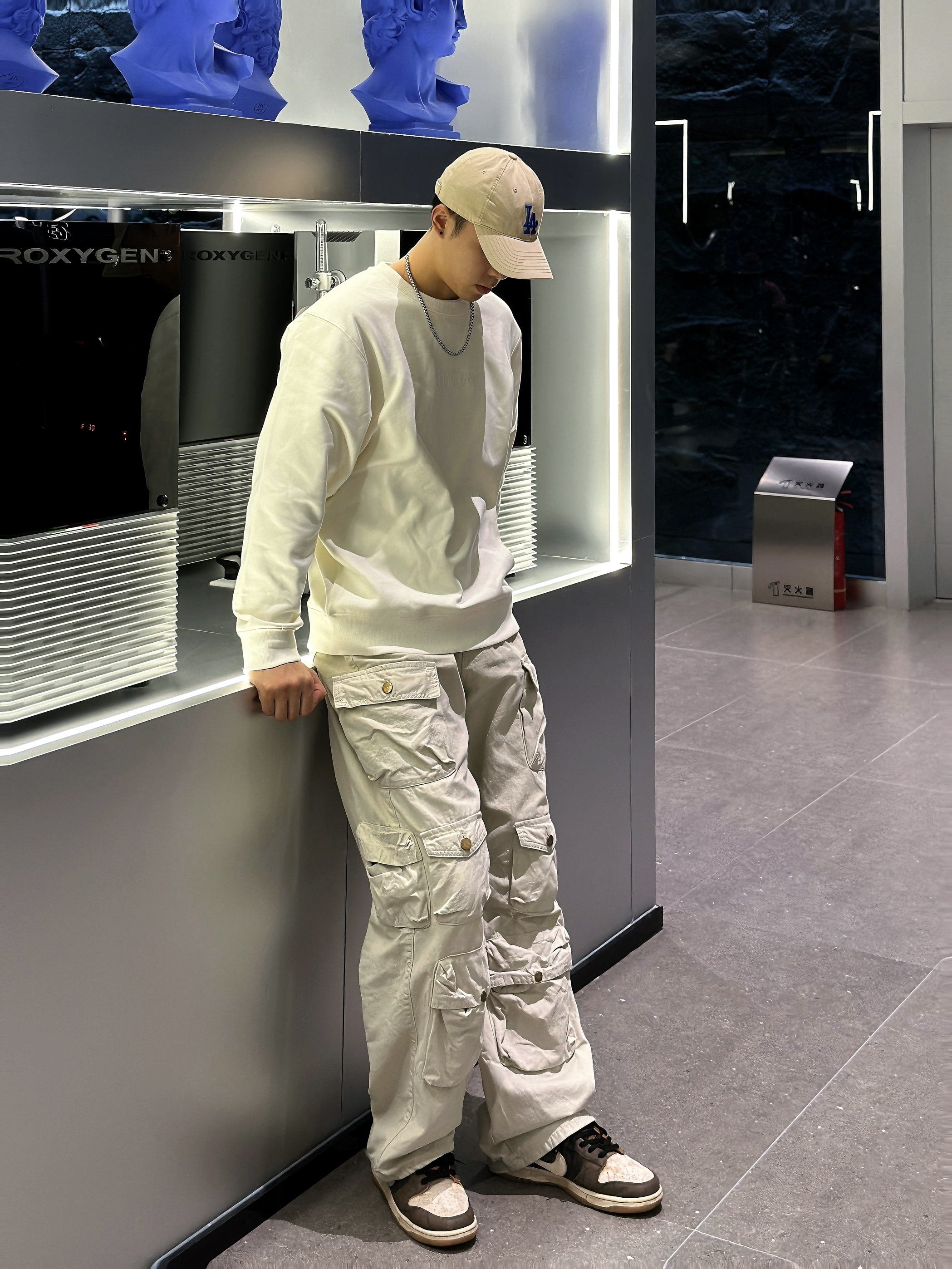 🧍♂️:解锁city boy秋冬穿搭松弛感👏 🧢:LOGO印花米色鸭舌帽 👖:米色工装裤 👟:卡其色板鞋 👔: 美特斯邦威 👉尺码推荐181cm 75kg➡️XL(合身) 一件秋冬衣橱里必备的圆领卫衣✅ 游牧褐色真的很温柔 宽松版型 很好的修饰身材👍 贴身圆领的设计 柔软的材质 保暖又舒适 🥰 胸前国潮印花点缀 时尚又有个性🆒