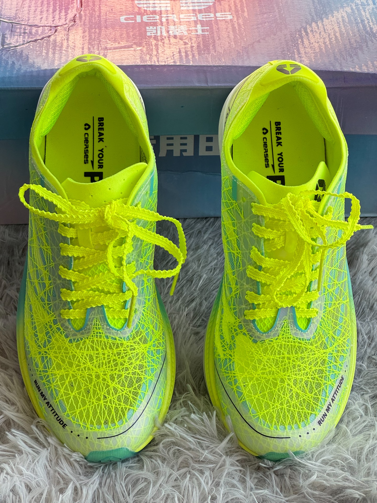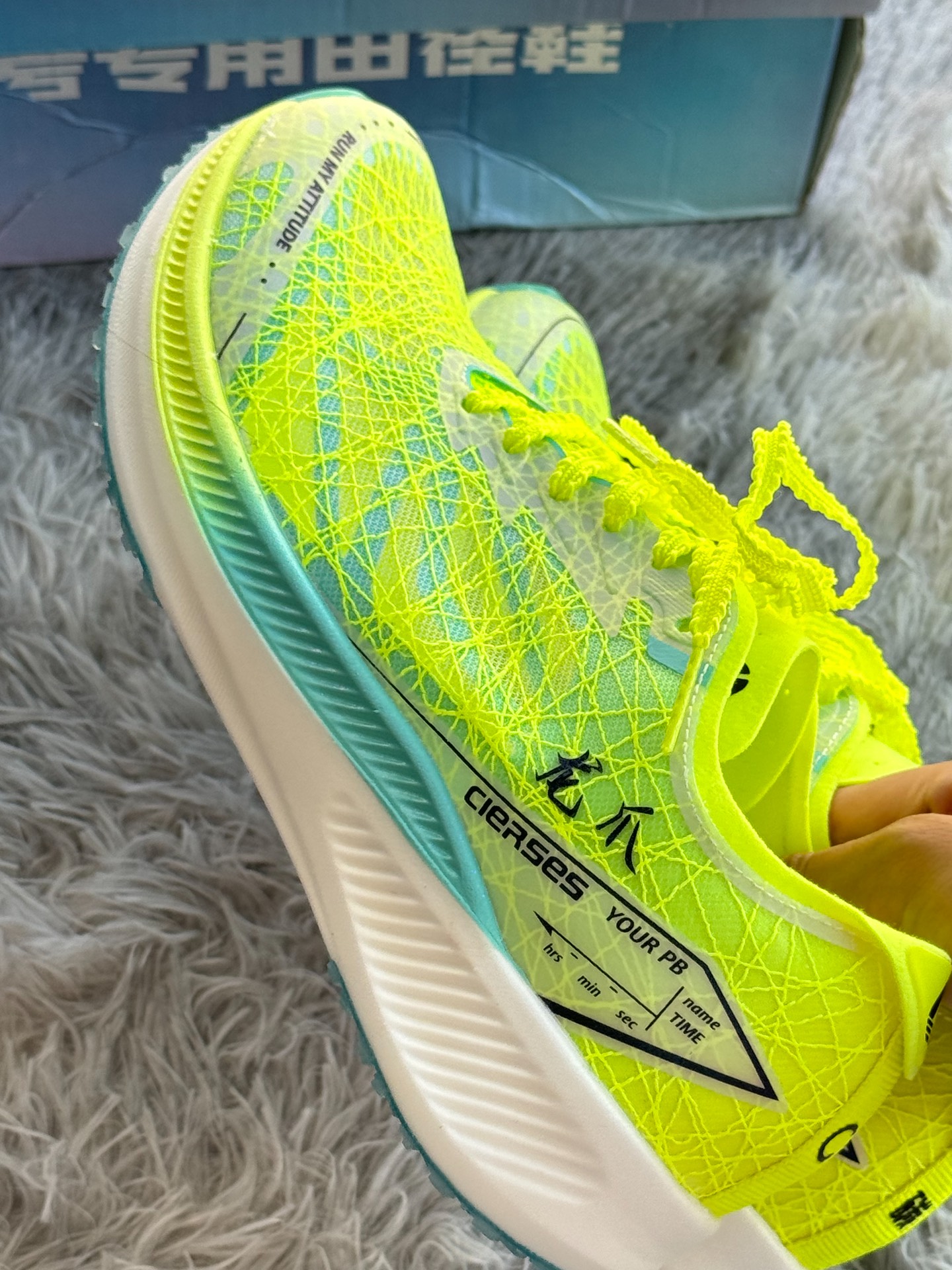 本篇笔记关联了CLERSES/凯瑟士 龙爪1.0 Pro 跑鞋 全掌碳板减震回弹防滑低帮田径马拉松竞速训练 绿粉鸳鸯等商品,为用户提供真实的使用体验和购买参考。