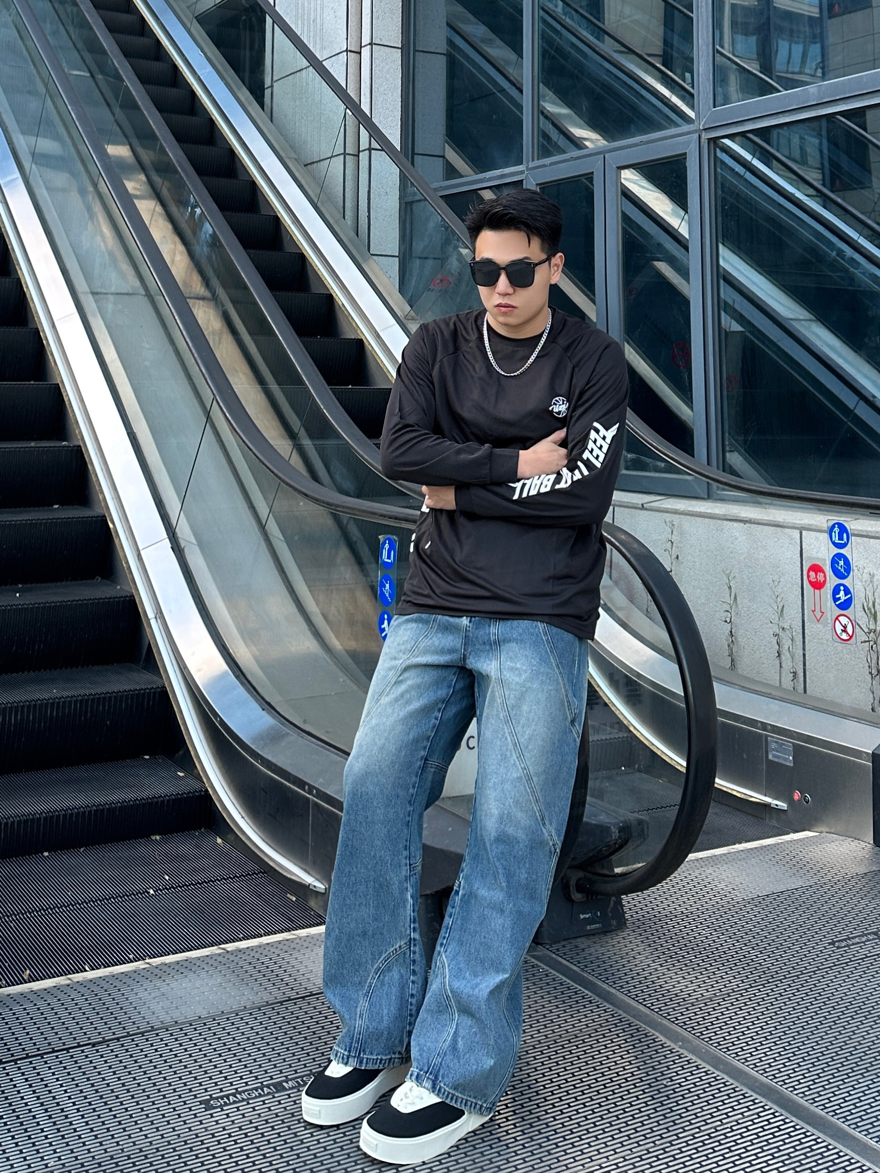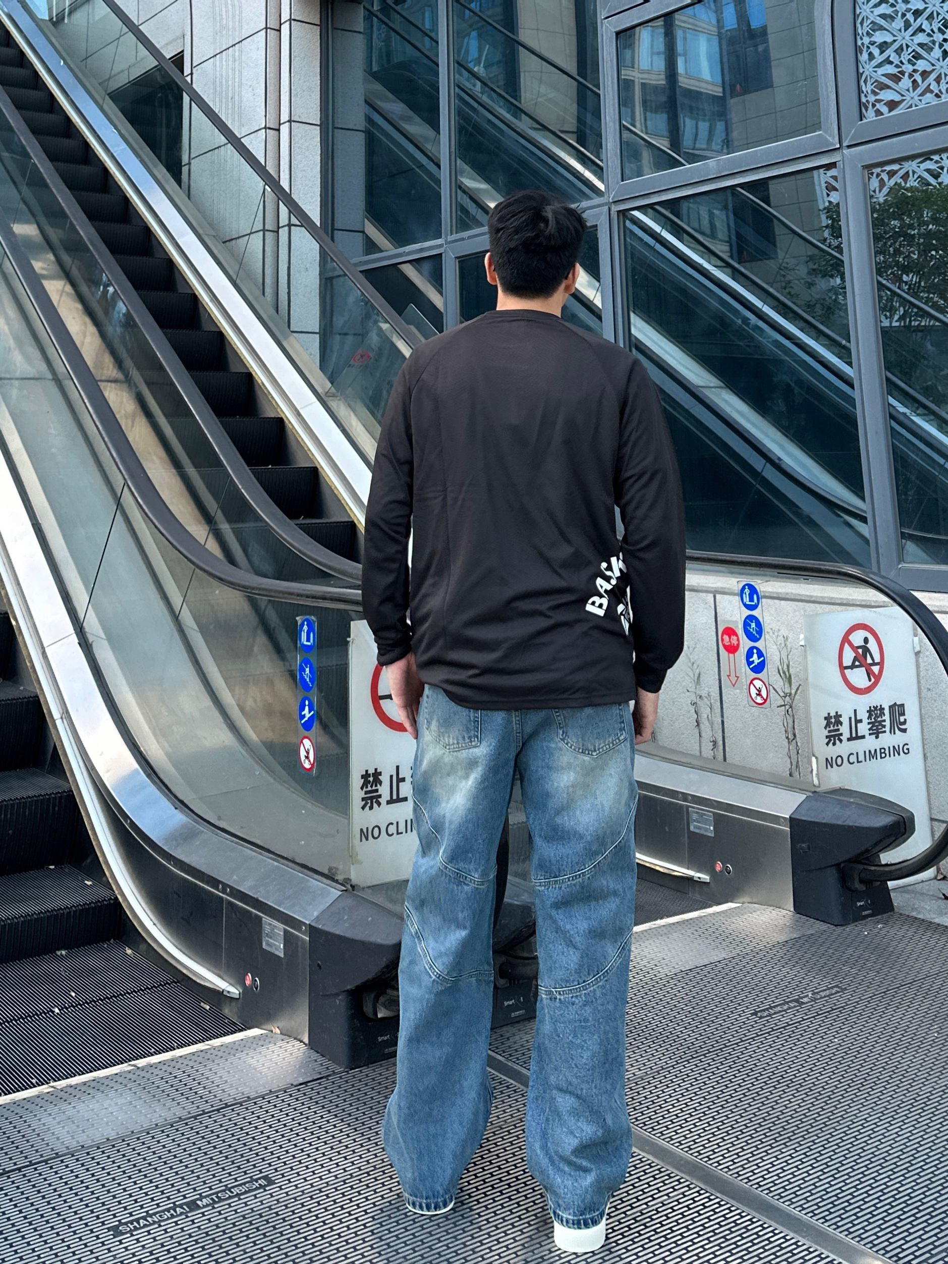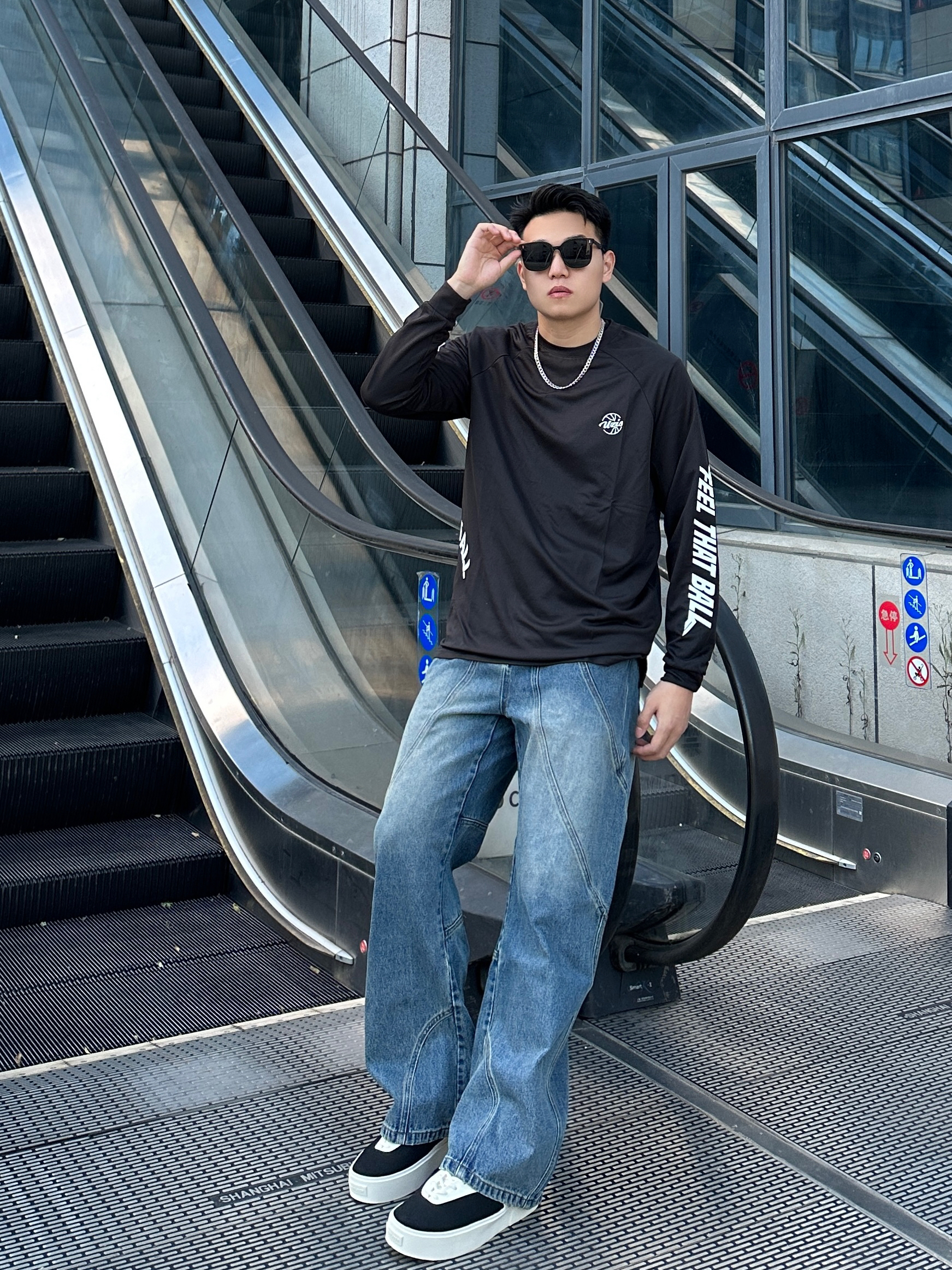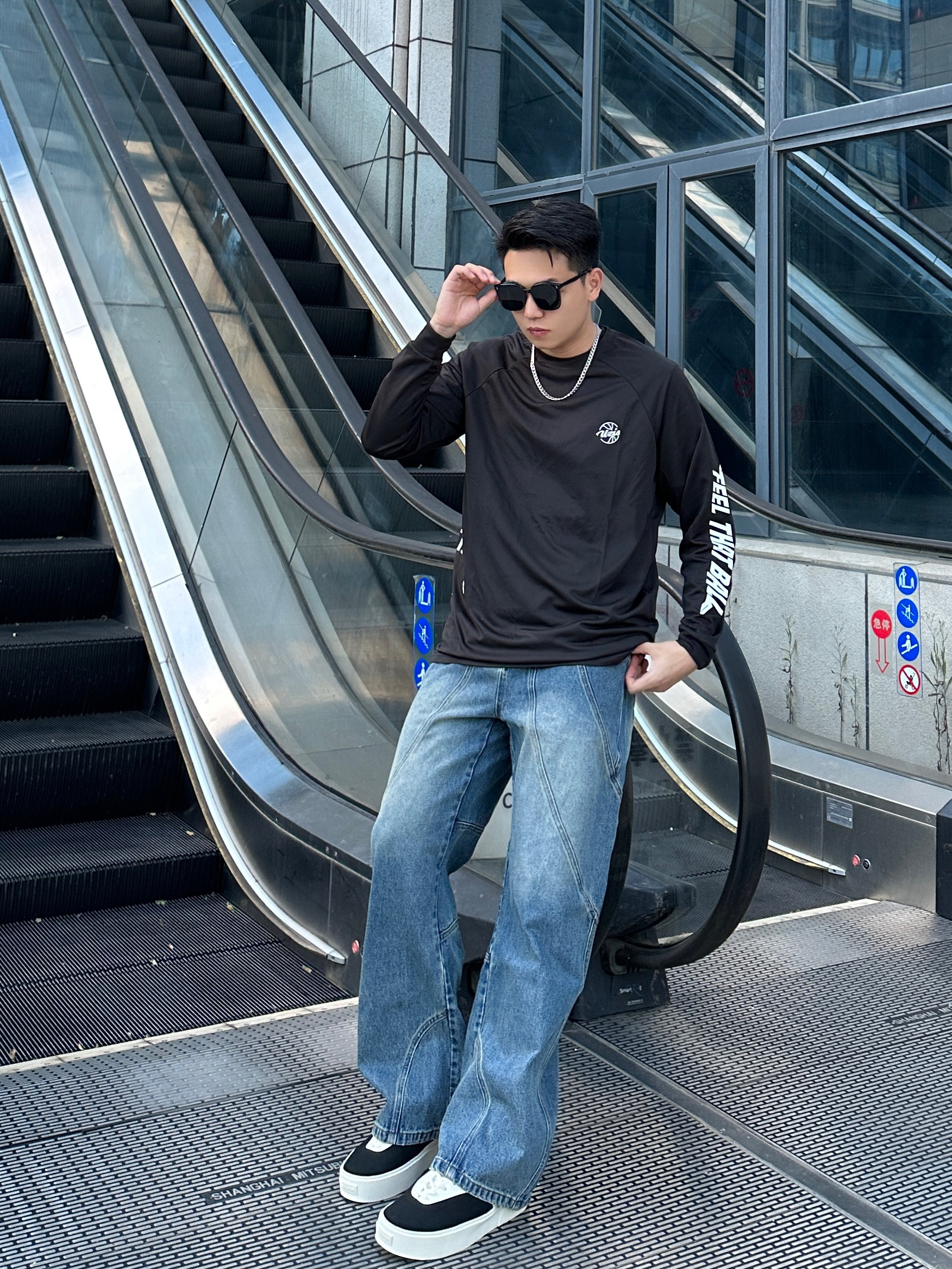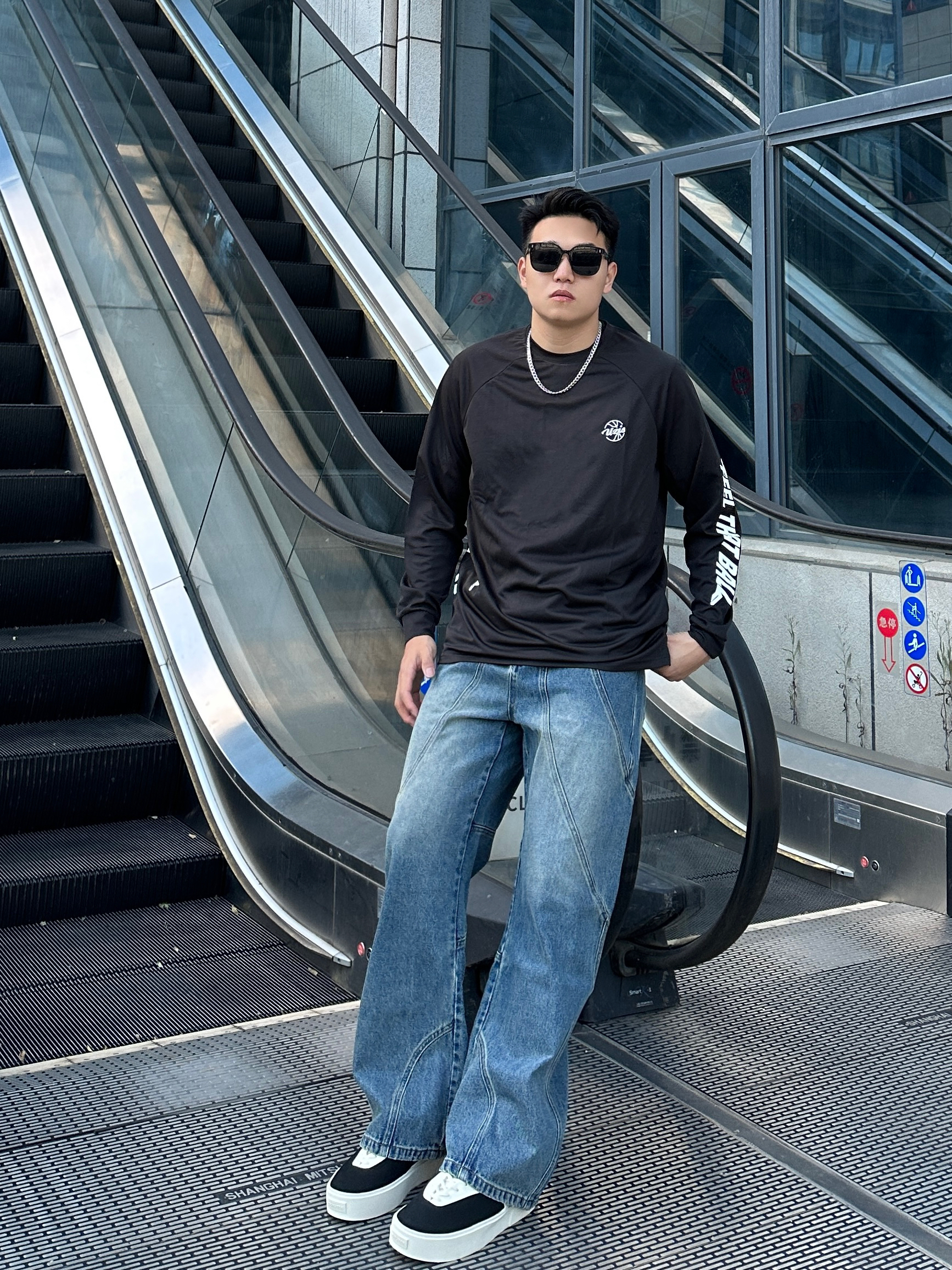 和我一起简单干净入秋吧 长袖搭配牛仔裤再合适不过 美式休闲长袖简约又百搭 速干透气面料运动穿也不错哦 版型宽松休闲 搭配起来早秋氛围感十足 来件经典蓝色牛仔裤 一整个干净清爽 是我的菜! 👖UKTK