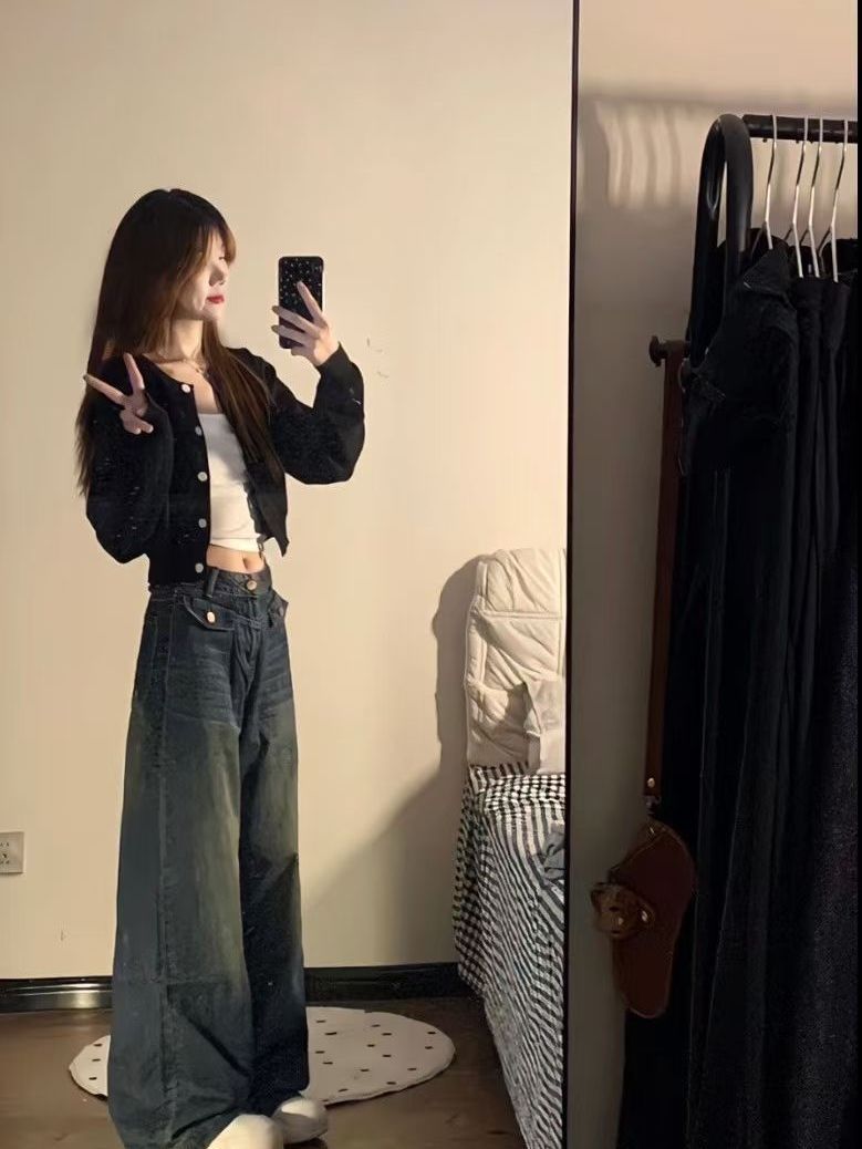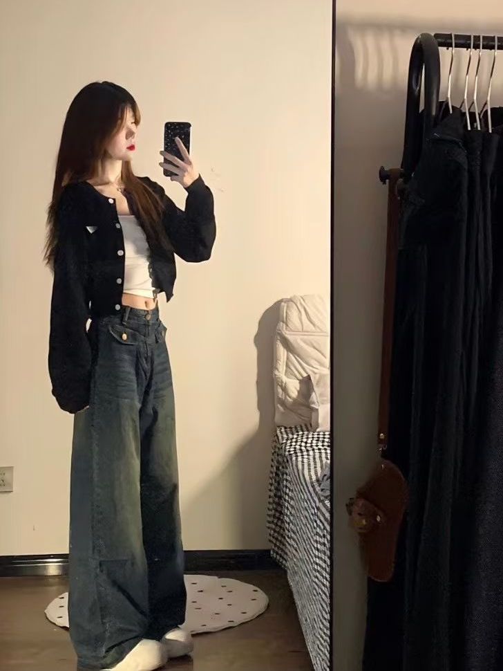 超好看的阔腿牛仔裤牛仔裤~版型太绝啦!!!啊啊啊这个裤子我真的好满意!非常遮肉,面料是软软的那种,也不勒,不显三角区,穿上非常舒适,休闲、日常都可以穿,款式也超级百搭!