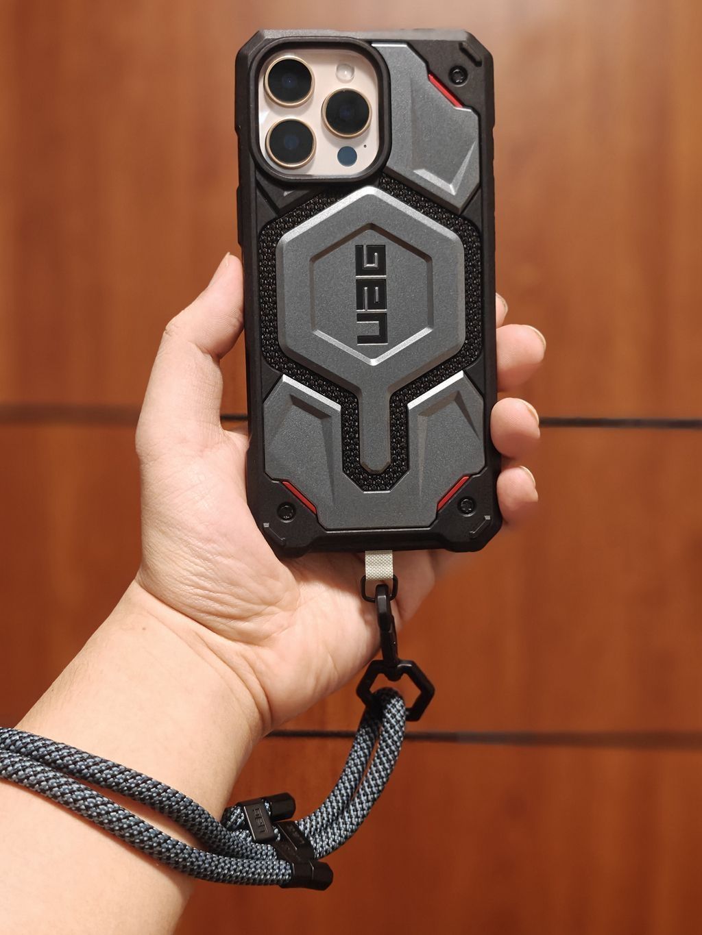 随着一年一度Apple新品的发布,UAG又给大家带来了一系iPhone16新品配件。趁此机会我给大家介绍下UAG尊贵系列iPhone 16Pro Max手机壳以及搭配使用的手腕挂绳,本系列产品均通过了美国防摔认证MIL-STD-810G测试标准,非常耐用和防摔。