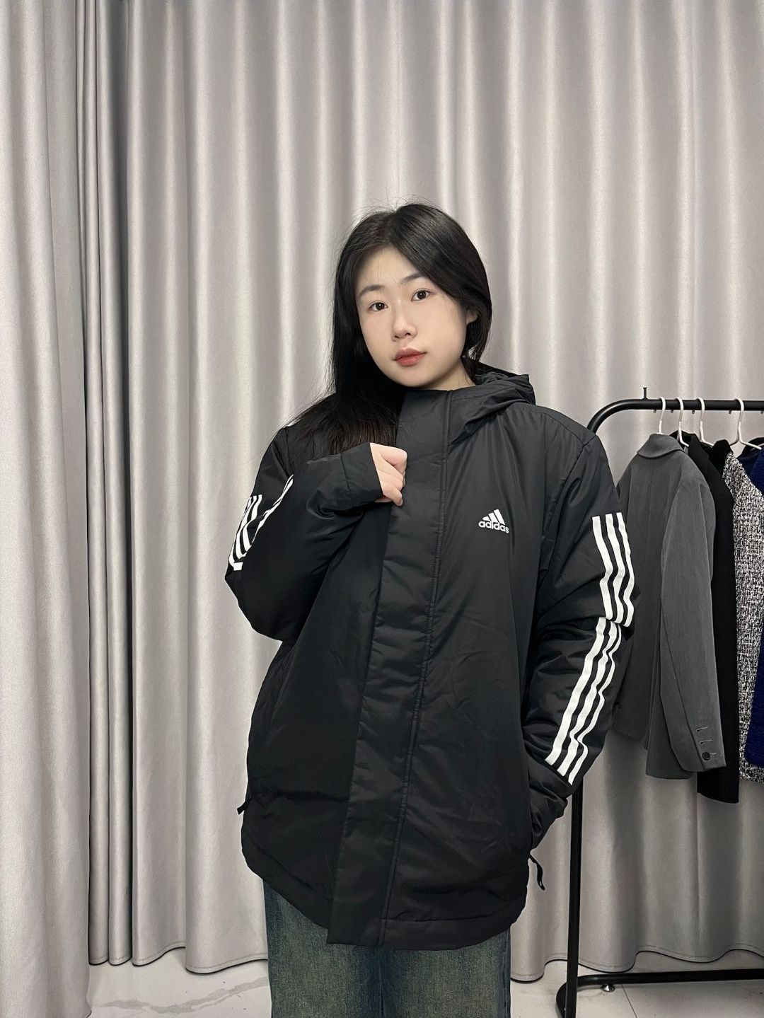 本篇笔记关联了【王安宇同款】Adidas/阿迪达斯 暖芯科技加绒加厚三道杠防风耐磨夹棉连帽棉服 黑等商品,为用户提供真实的使用体验和购买参考。