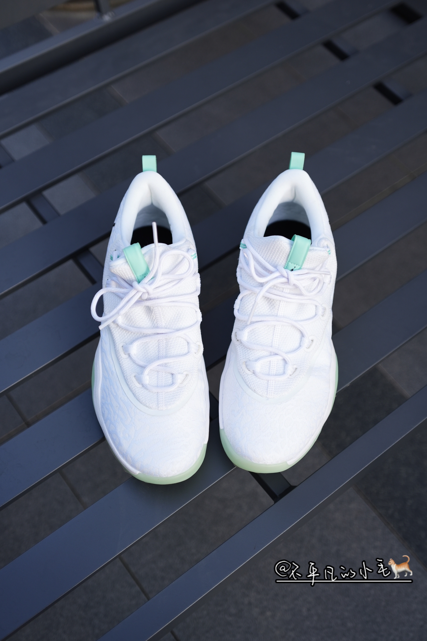 #测评 我发现白色的鞋子和那个季节都挺搭的! 这双鞋子整体以白色与绿色的组合搭配,很清爽。 鞋面使用了多层复合织物材料,还有提花工艺的白色复合布包裹,细节满满! 建议正码选择!