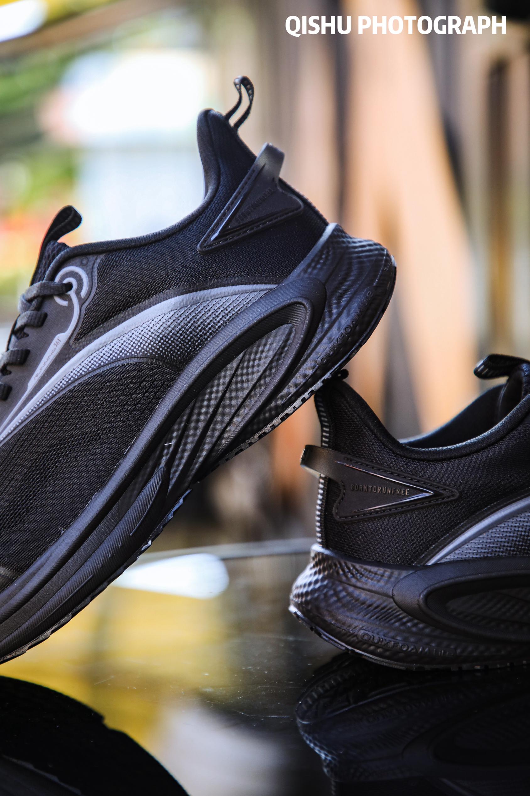 全黑的跑步鞋在市面上真的很少见,所以一般我看到就会立马入手,今天刚大家分享下最近入手的这双 361° 速行黑色跑鞋。 鞋面采用网面材质,透气不错,炎热天气下跑步锻炼也不会觉得闷。鞋面还加入了热熔胶补强,增强了鞋面的稳定性和支撑性。 上脚的脚感不错,缓震明显。有效减轻脚部压力,日常跑步锻炼都可以适用 黑色的外观设计时尚简约,不仅适合运动场合,还能轻松搭配各种日常服装。