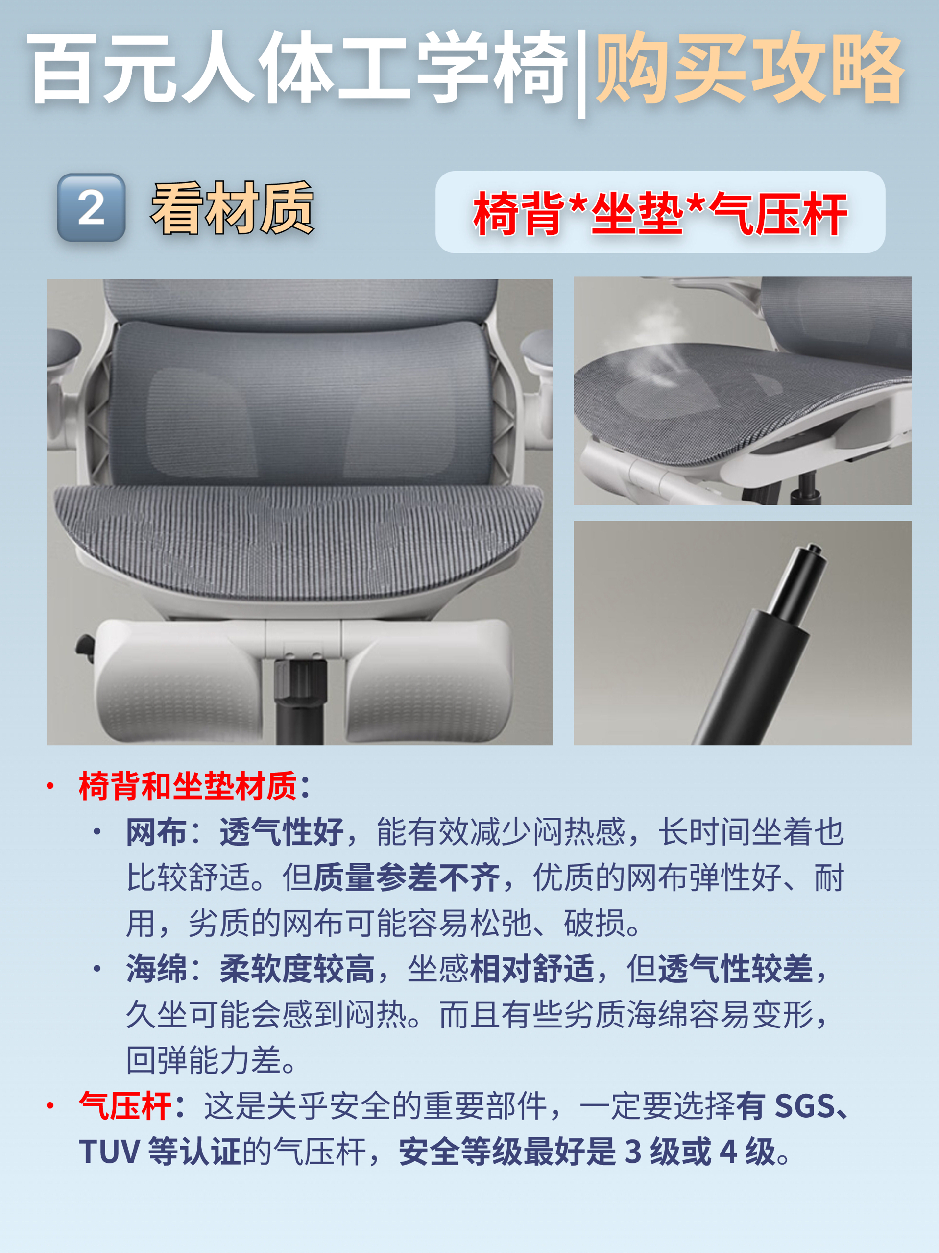 材质舒适可调节:网布材质,透气清凉,马鞍形坐垫让您坐得舒适又安稳。