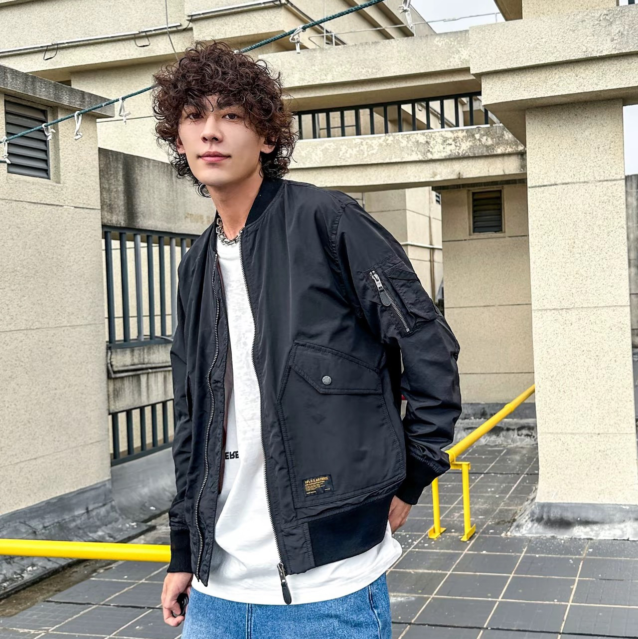 飞行员夹克真的是初秋造型神器 ➖廓形剪裁上身挺括有型整体是短宽的版型叠穿卫衣既保暖又帅气 休闲通勤都很ok‼️ 回头率百分百⭐️ 图片来源于@卢克Adonis