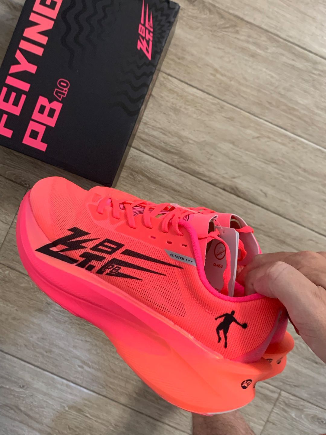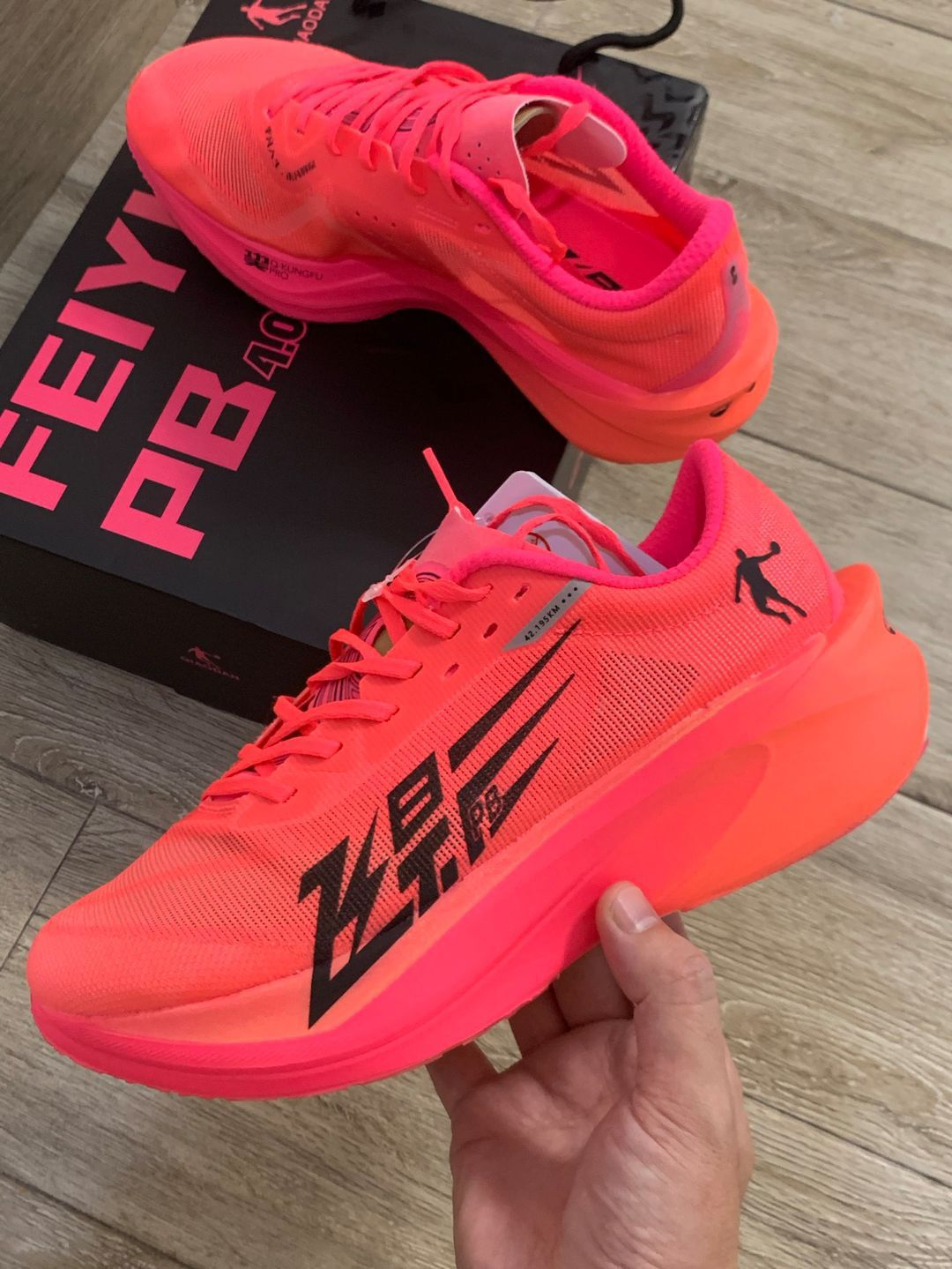 飞影PB.4.0 优点1.鞋身轻薄43码单只重量210 g左右跑起来没有丝毫负担2.脚感特别好巨软比zoomx还软而且回弹方面做的不差尤其是后底后脚掌落地跑者的福音全脚掌落地也行前脚掌稍微有点硬3.碳板刚性不会很强还带有加强筋适合绝大多数跑者四分配即可驾驭4.鞋底采用QD纹变水波纹水晶底好看湿地防滑感觉是更好了而且跑几公里也没有磨损应该跑个400公里不成问题缺点的话倒真没什么唯一的缺点就是鞋面有点...