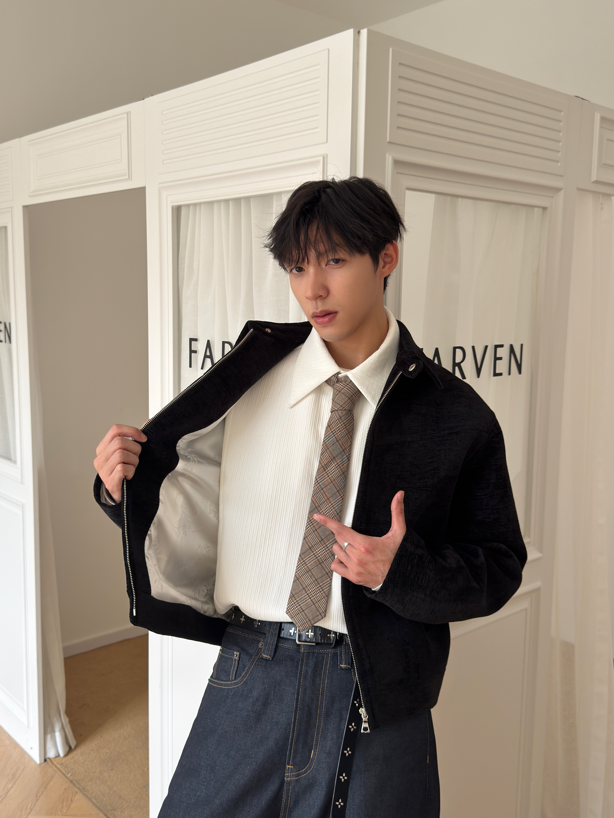 采用日本进口细条纹灯芯绒 轻薄款 100%棉 手感超级绵密 质地很软很轻薄加上纱洗工艺,面料质感更柔顺。纯棉灯芯绒拒绝偷工减料版本 三标包装齐全 门襟采用复古枪色拉链 YKK拉头 胸口英文logo刺绣立体简约,内里全包条工艺 做工繁琐 外贸大厂代工 走线工整 细节到位 复古立领 谁穿谁好看潮流就是一个圈 来来回回转 立领整体设计感以衬衫为灵感既有休闲感也不失运动范 算是中间协调 男女同款