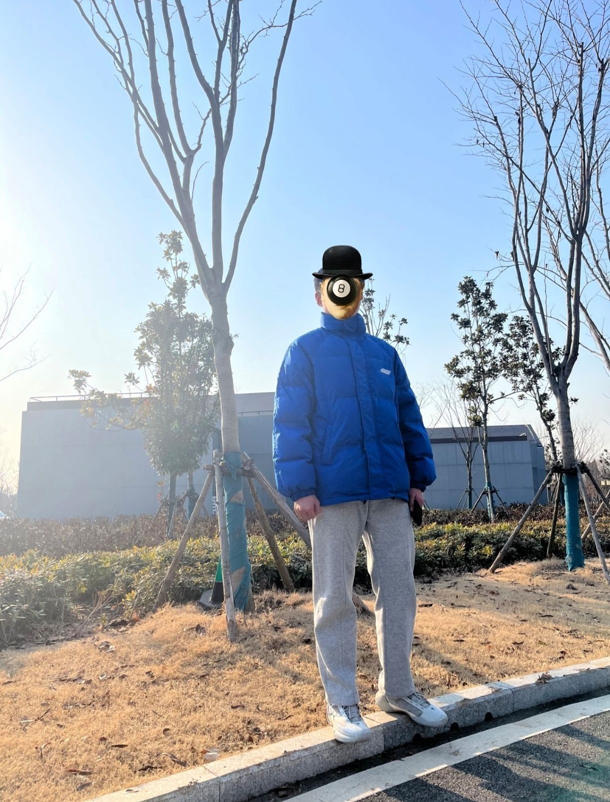 身高|体重:185cm 170 🧍♂️ 穿搭风格:冬天暖阳穿搭 👔 上衣:克莱因蓝羽绒服 👖 下装:灰色篮球运动卫裤 👟 鞋子:安踏月影灰海沃德二代 篮球鞋