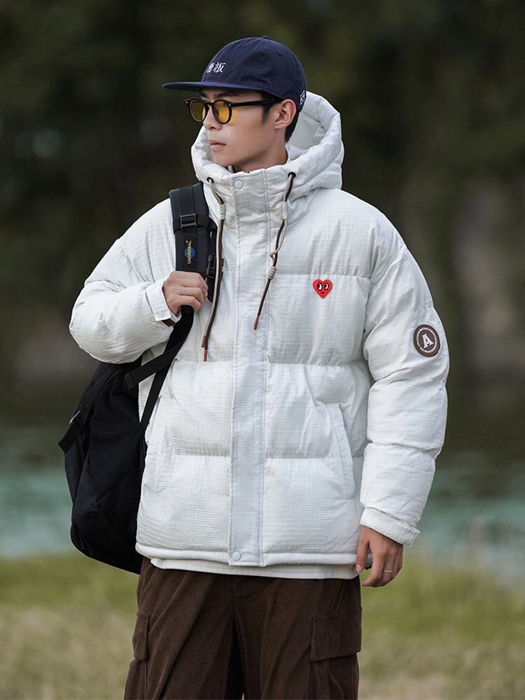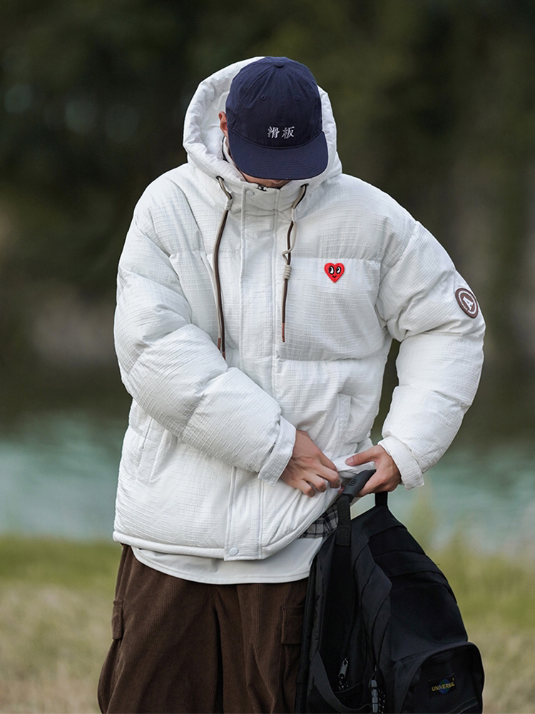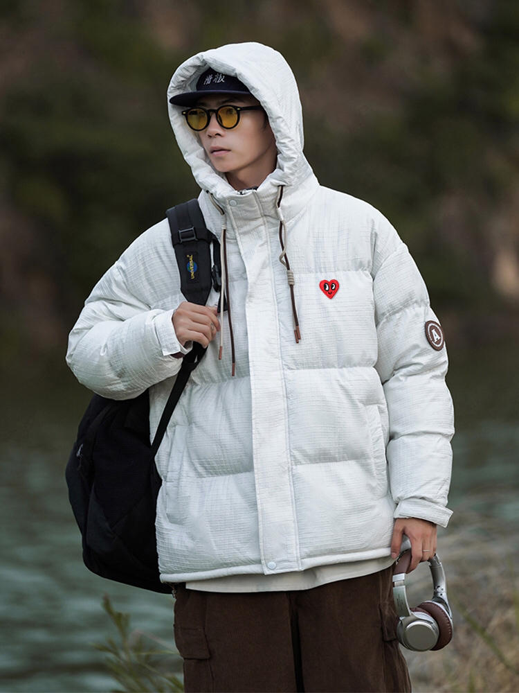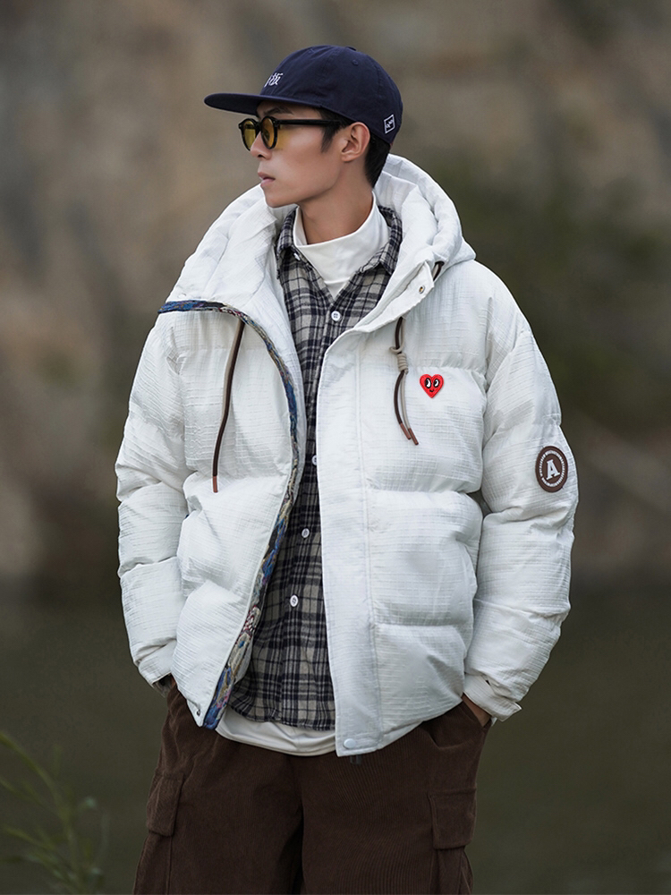 这件来自查尔斯桃心的厚实棉服,白色和图案拼接的设计真的很好看,下身随意搭配都不会出错,冬日穿出门满满的安全感