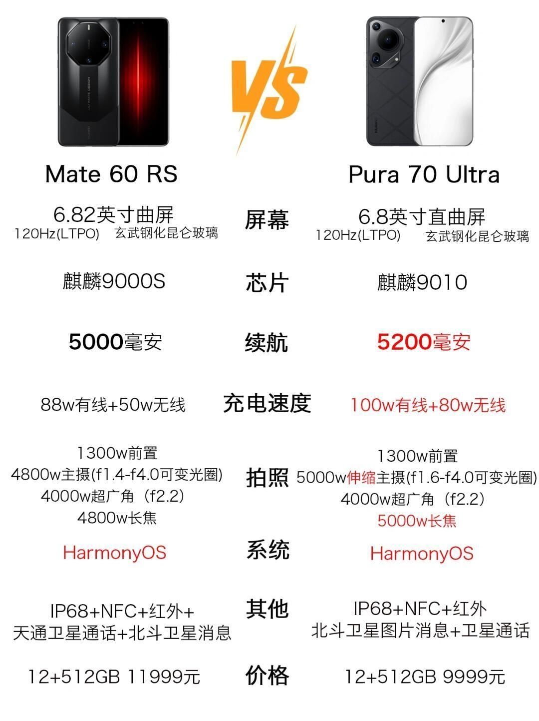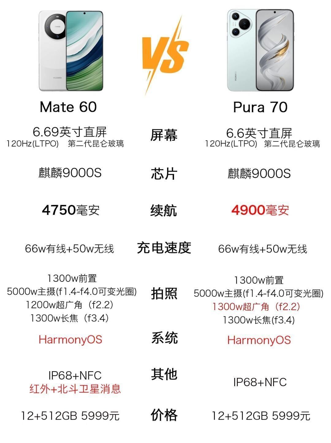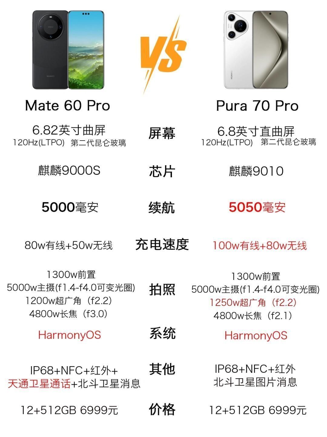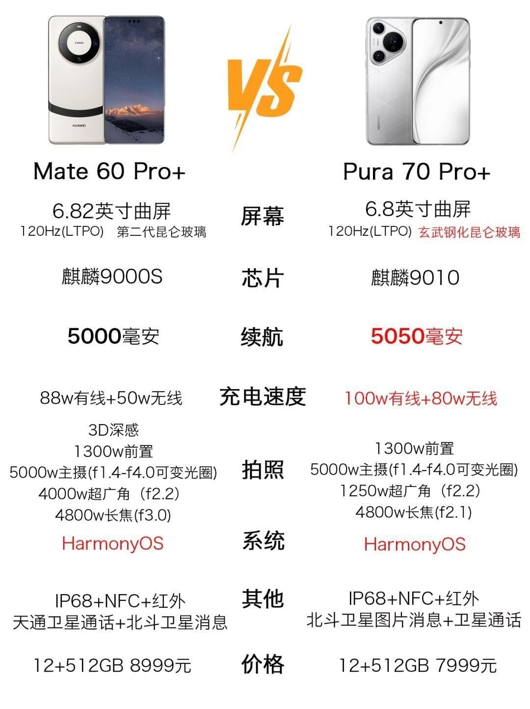 华为Mate60对比Pura70 Mate60支持卫星消息,并且有红外遥控 华为Mate60Pro对比Pura70Pro Pura70pro处理器是9010,Mate60pro有卫星通话 华为Mate60Pro+对比Pura70Pro+ Mate60pro+有个3d深感,Pura70Pro+玻璃升级了 华为Mate60RS对比Pura70Ultra 这个就看喜欢哪个外观了,华为延续了保时捷设计外观...
