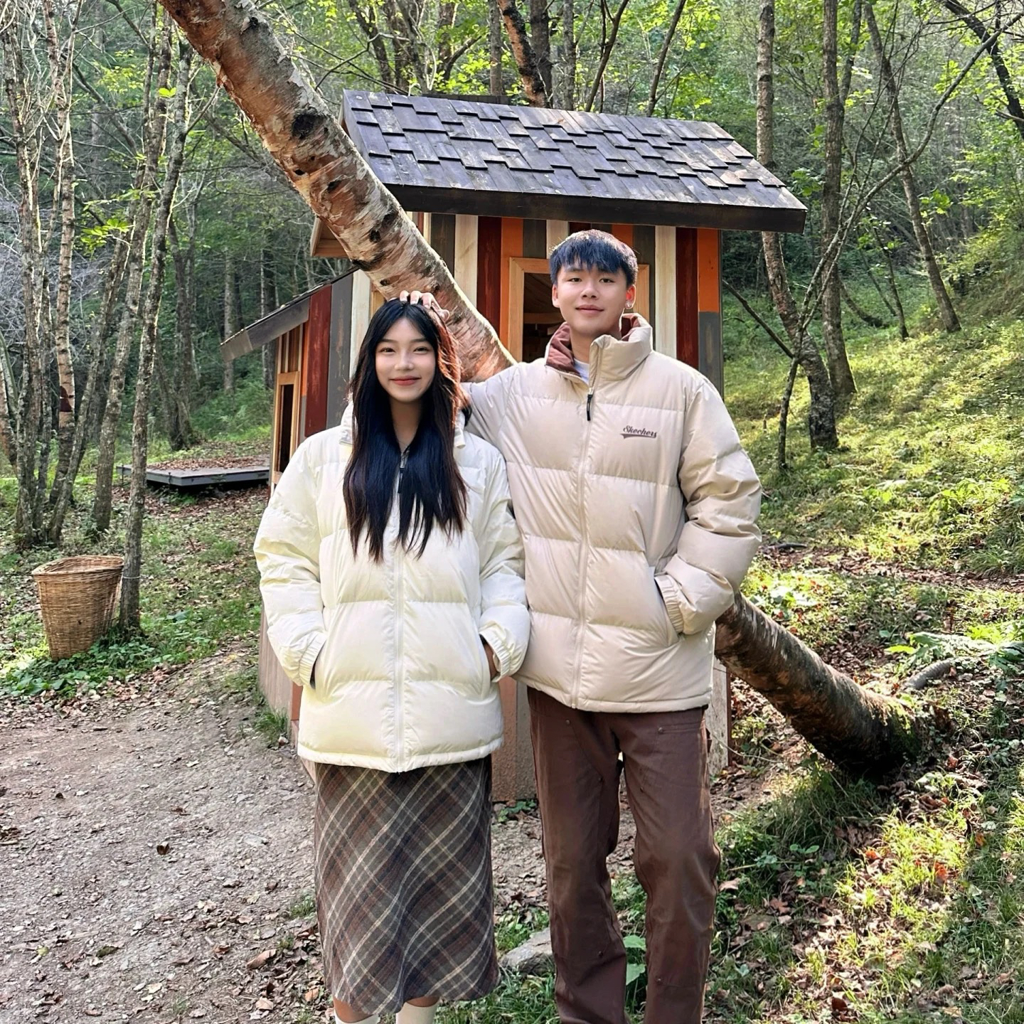来山里提前过冬天咯!! 和男朋友穿了斯凯奇的面包羽绒服~奶呼呼的真的好piu亮!👀小个子穿也很好看~显高! 衣领专门选了绒面撞色搭配~ ➖秋冬氛围感一下就来了!!真的好好看始最值得提的是这个羽绒服用了石墨烯科技真的很保暖直接升温3度不怕山里的大风了‼️ 晚上山里很冷 穿着它满满的安全感嘿嘿还有三防功能脏了也不怕!!安全感满满的面包羽绒服 图片来源于@Naomigim