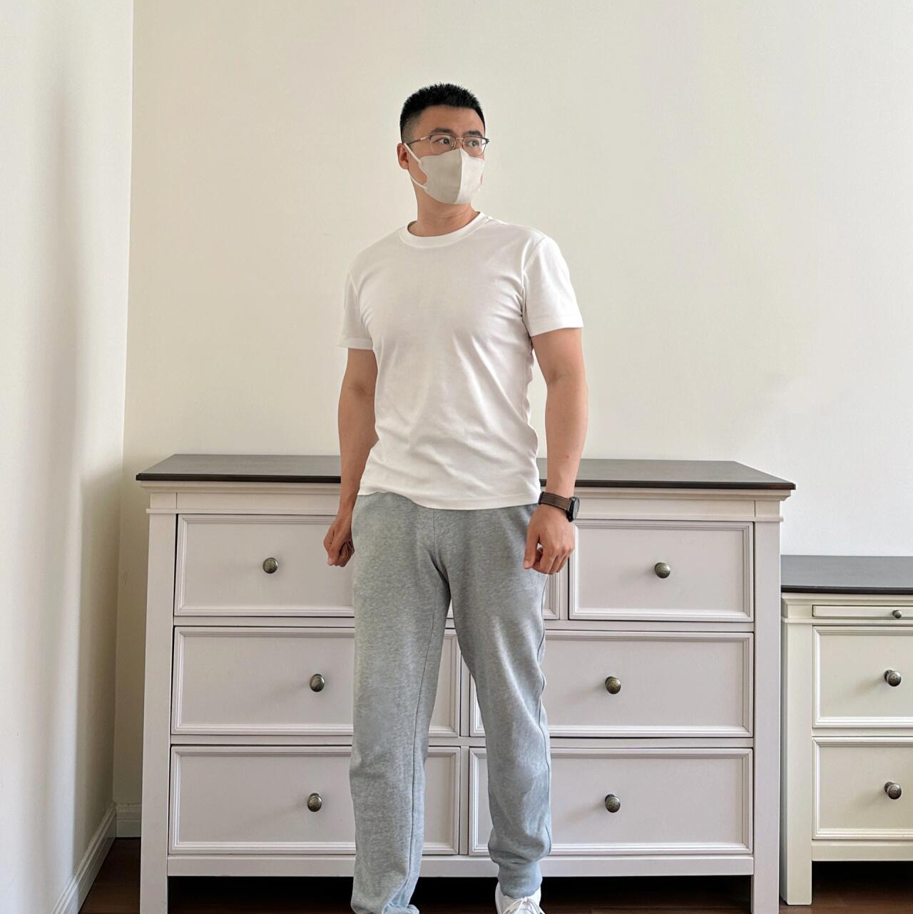 对于中年男人来说,工作生活节奏快,基本没有时间去健身房,居家运动成了保持体能的方式‼️今天选择了白T,灰色运动长裤和白色运动鞋,清爽干练。 图片来源于@许俊扬