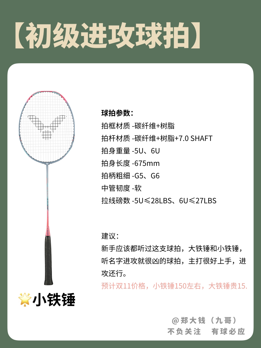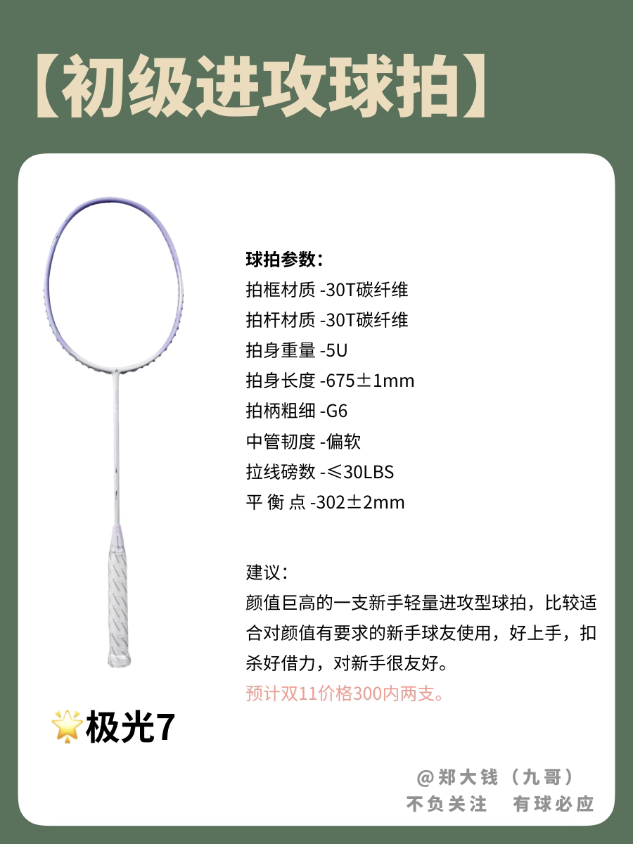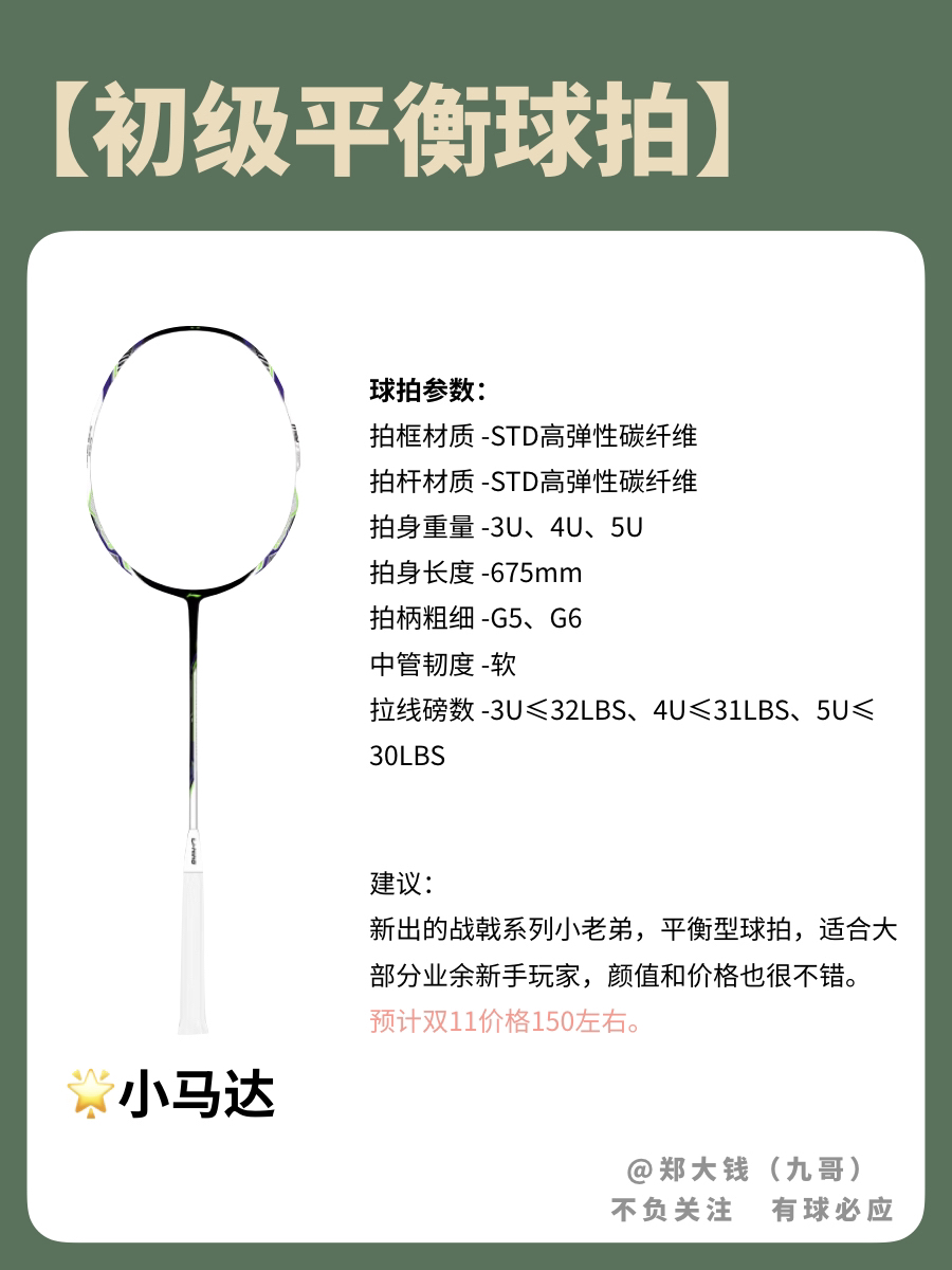 今年羽毛球拍双11的价格比618价格还香,准备买羽毛球装备的快上车,别错过好价,14号就开始啦! · 这里只放简单介绍,具体价格看图。 🏸极光7 颜值巨高的一支新手轻量进攻型球拍,比较适合对颜值有要求的新手球友使用。 · 🏸小钢炮 很多新手选的第一支入门球拍,属于进攻拍,除了大力杀球有点震手,其他中规中矩。 · 🏸小马达 新出的战戟系列小老弟,平衡型球拍,适合大部分业余新手玩家,颜值和价格也很不错...
