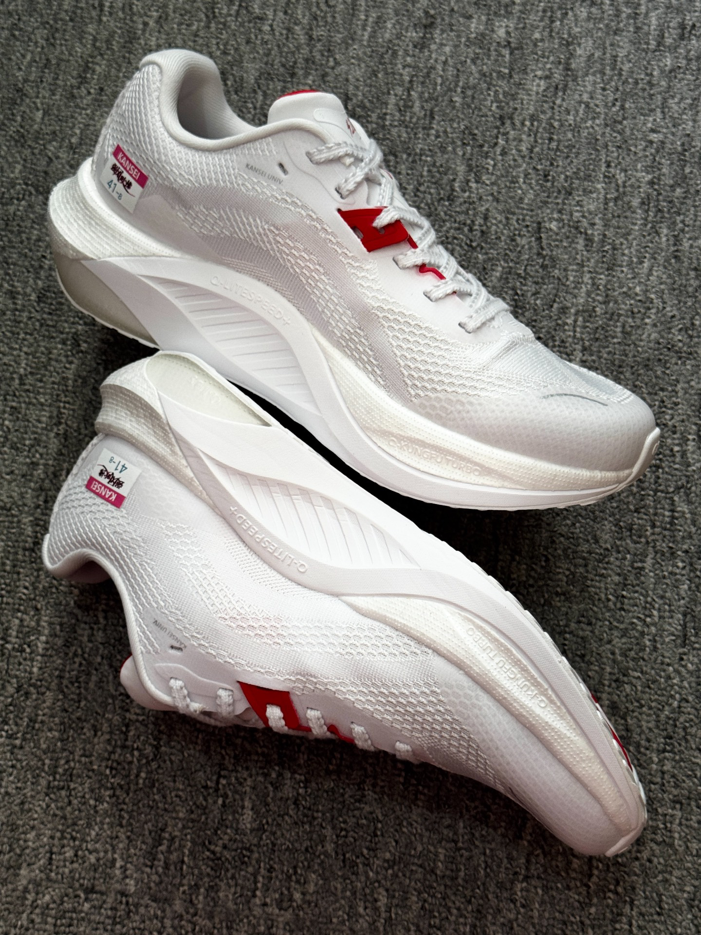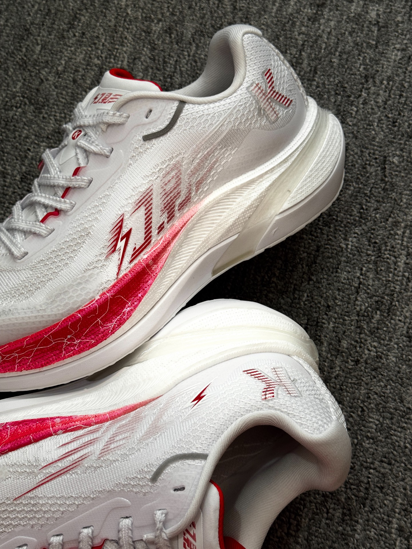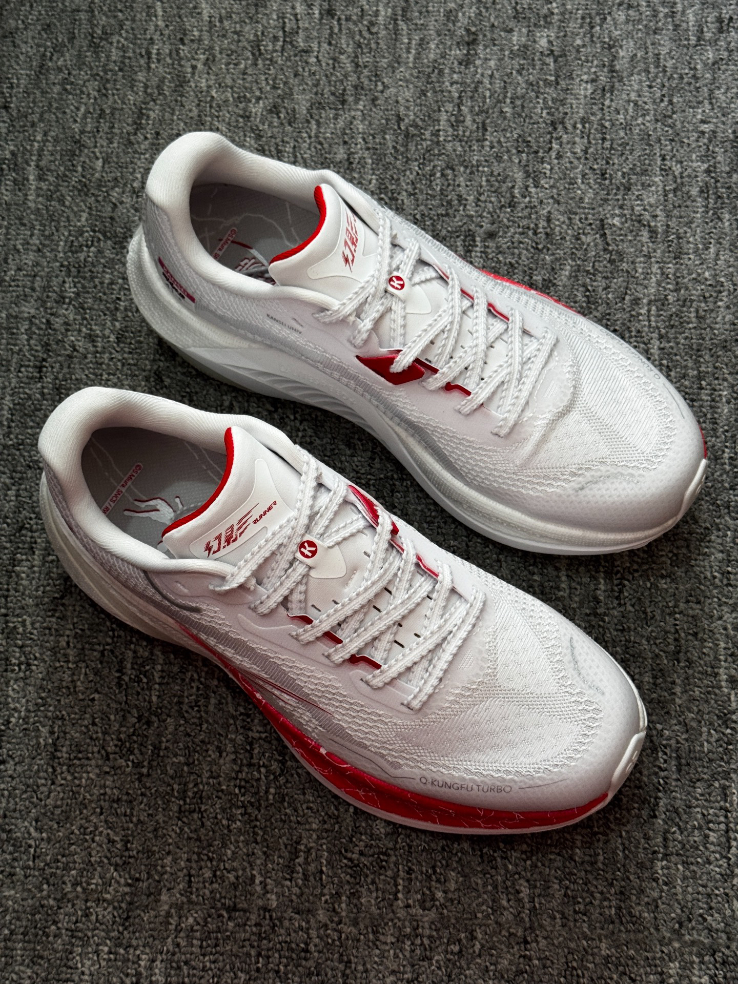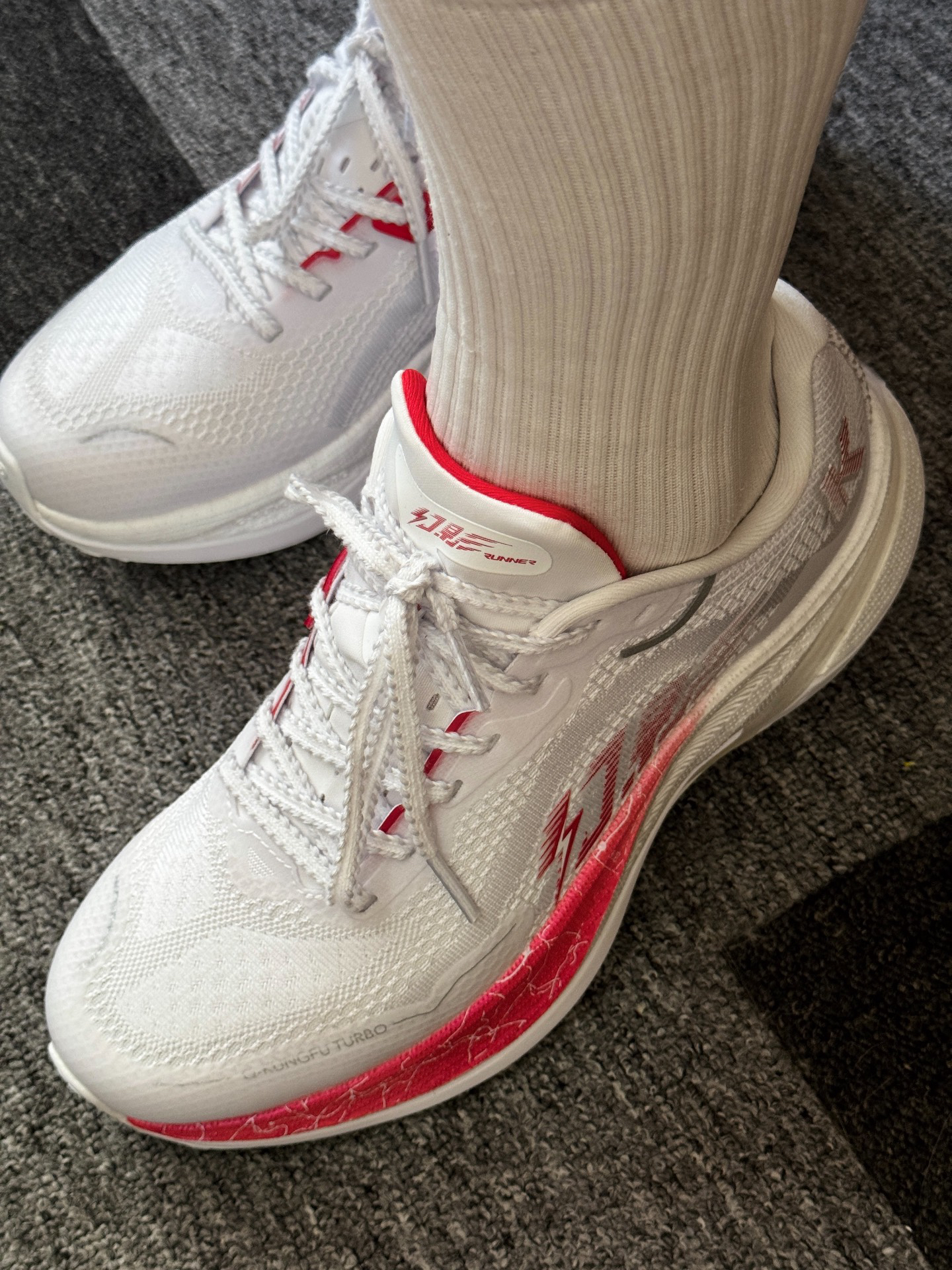 👟跑鞋名称:乔丹 幻影 x 强风吹拂 跑鞋前后不知道穿了多少双,但这么舒服的真的是第一次穿!! 整双跑鞋给我的第一感觉是它稍微有点小复古有点过去Nike登月跑鞋的影子并且极其耐看。其次呢,就是这双幻影跑鞋该软的地方软,该硬的地方又有不错的刚性,白色搭配红色也比较经典,柔中带韧的它还有着极度的轻量化,咻弹科技与巭TURBO形成双重密度中底,脚感真的超级好!! 最后的话就是-“跑步真的是一件很奇妙的事...