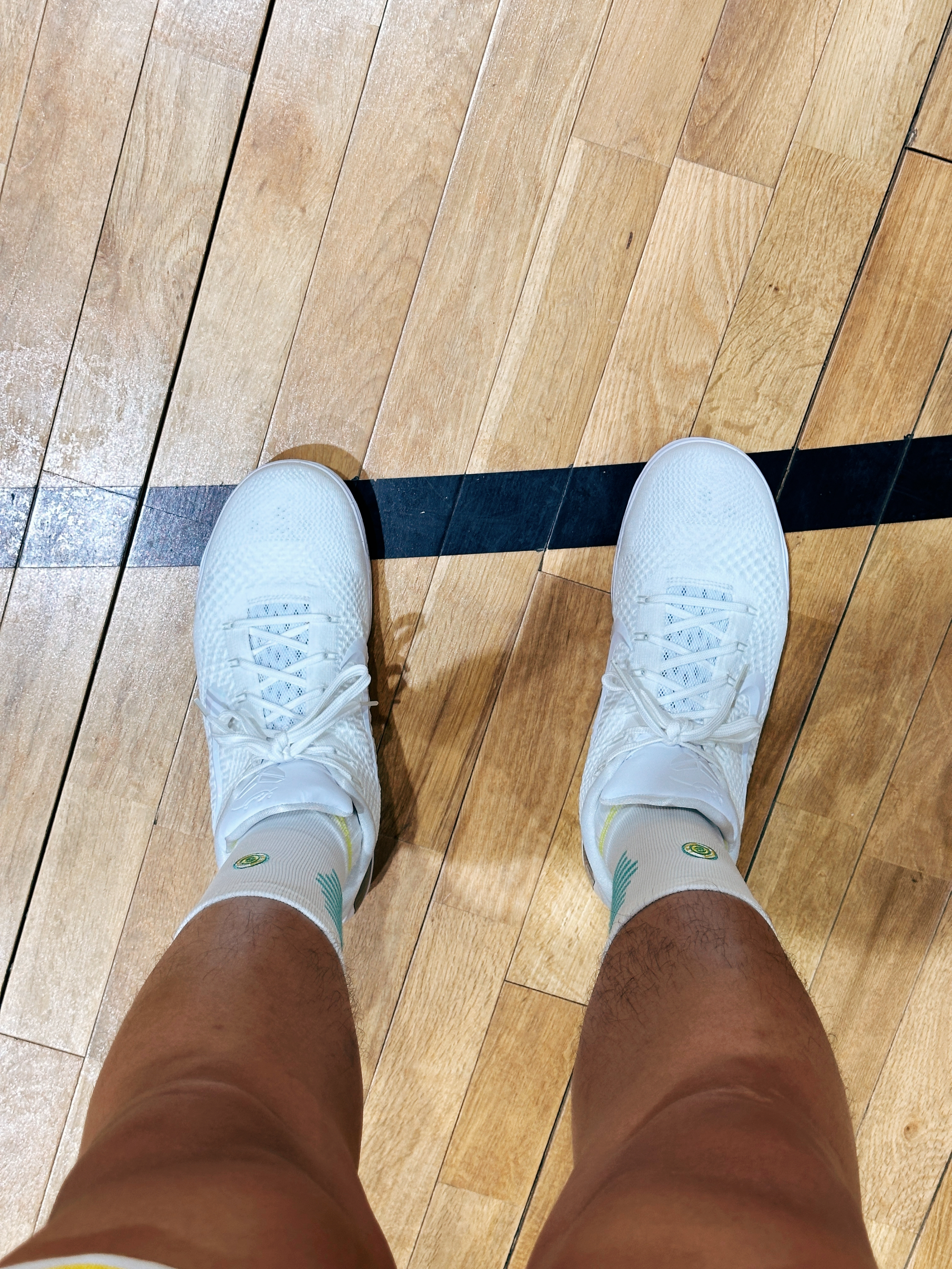 缓震方面:全掌内嵌式 React 缓震中底在软弹度上没有提升,甚至不如新复刻的 科8 来的直接,前掌恰到好处,韧里面带点软和场地感,后掌我 160 斤踩着超级硬,因为两侧的 碳版片 和外侧贯穿的包边刚性太强了,阻止了形变,所以脚感方面不会很明显,简单说啥也感受不到,推荐给轻体重的兄弟们!
