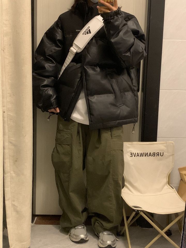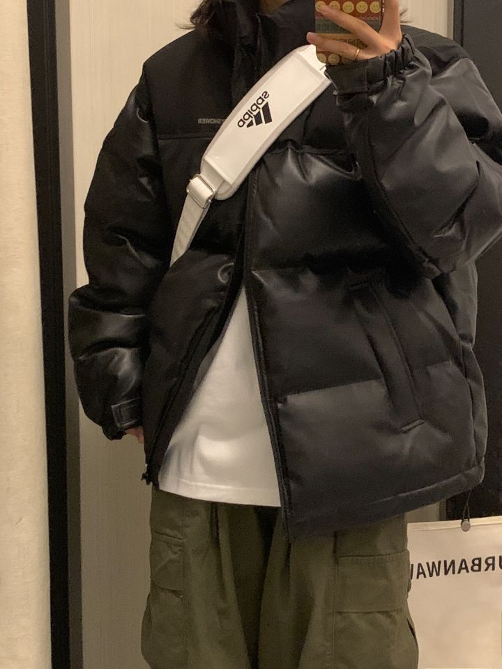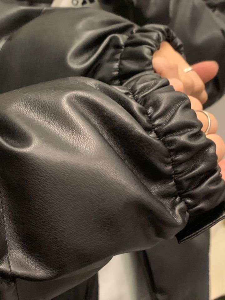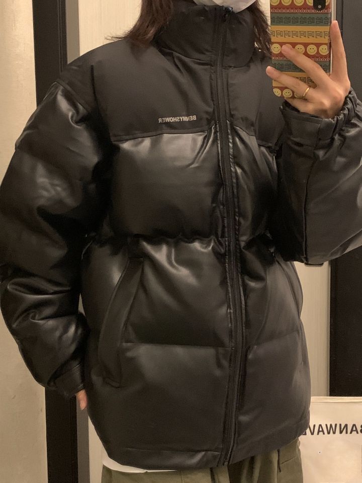 不爱穿厚衣服本南方人! 被这件棉服帅到了! pu皮拼接的很有质感不会显得臃肿! 款式也很简约! 随便内搭一件白的长袖! 冬天直接套上就可以出门了