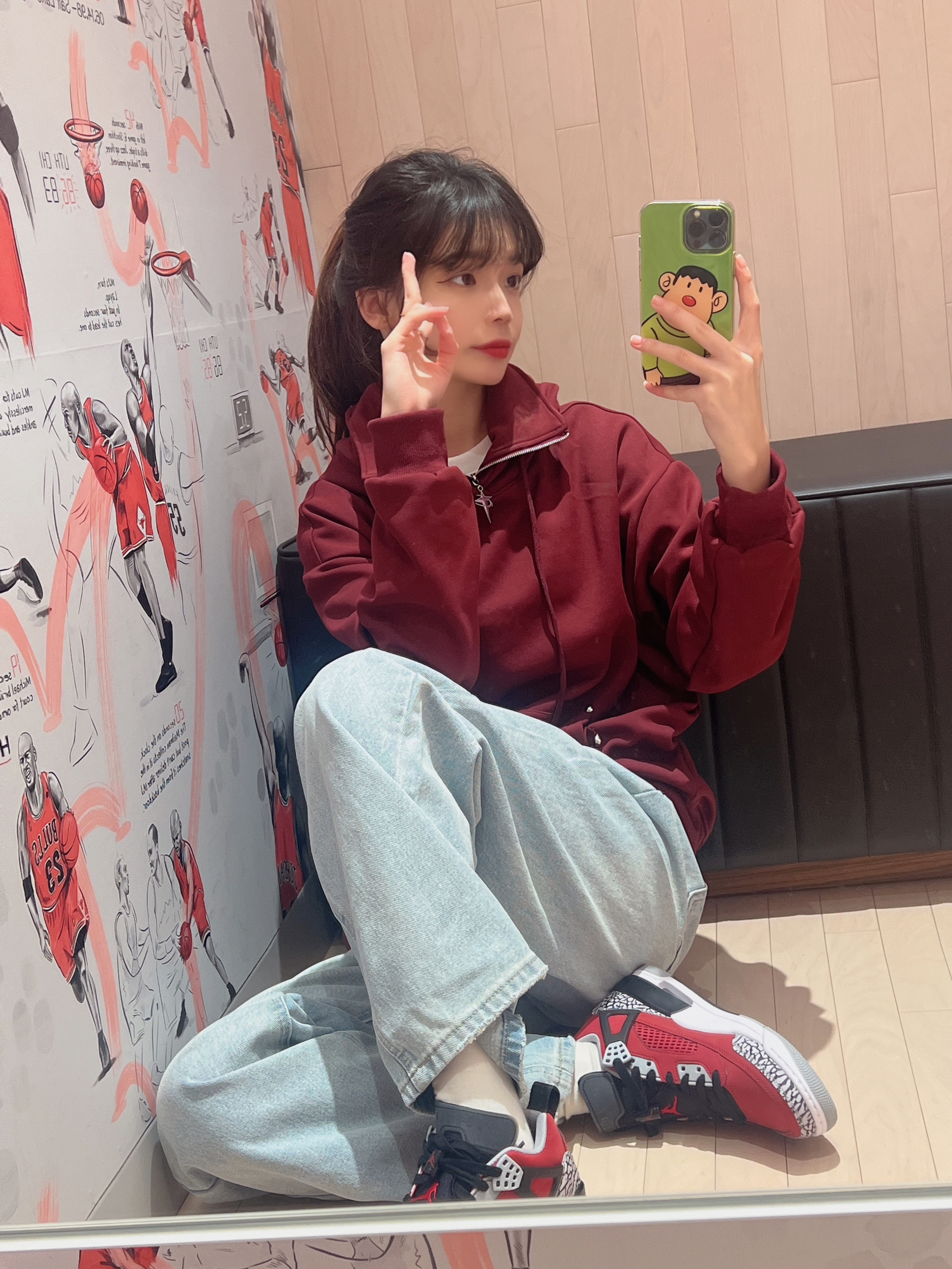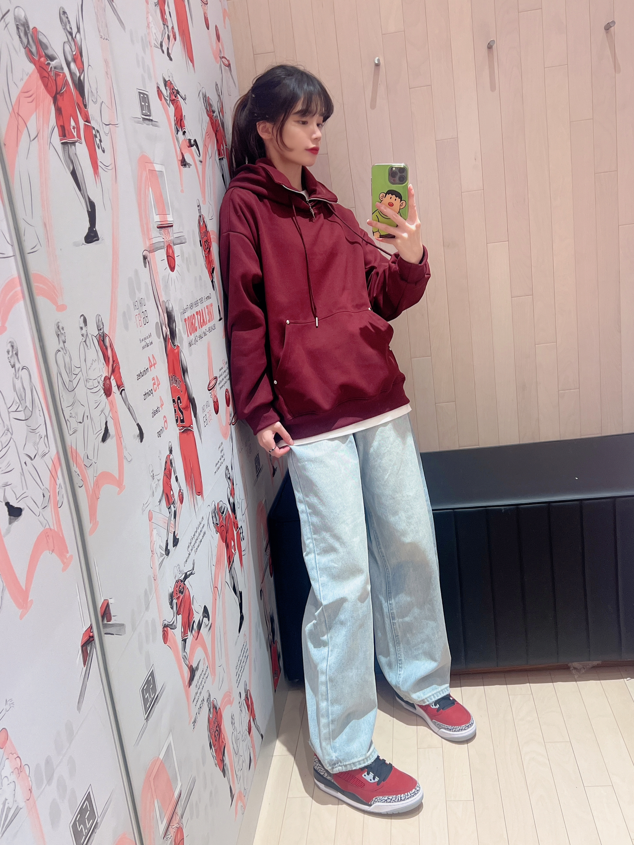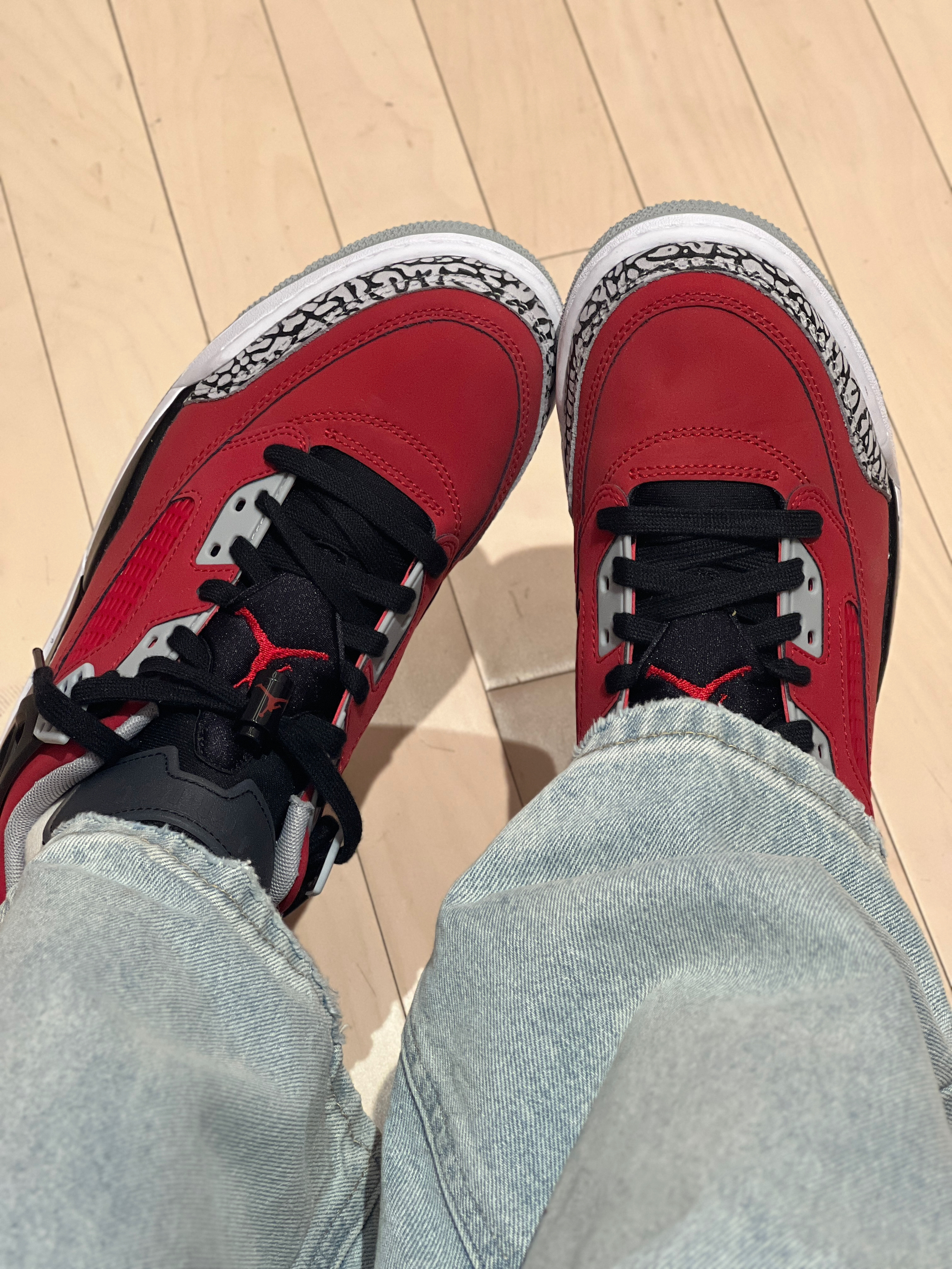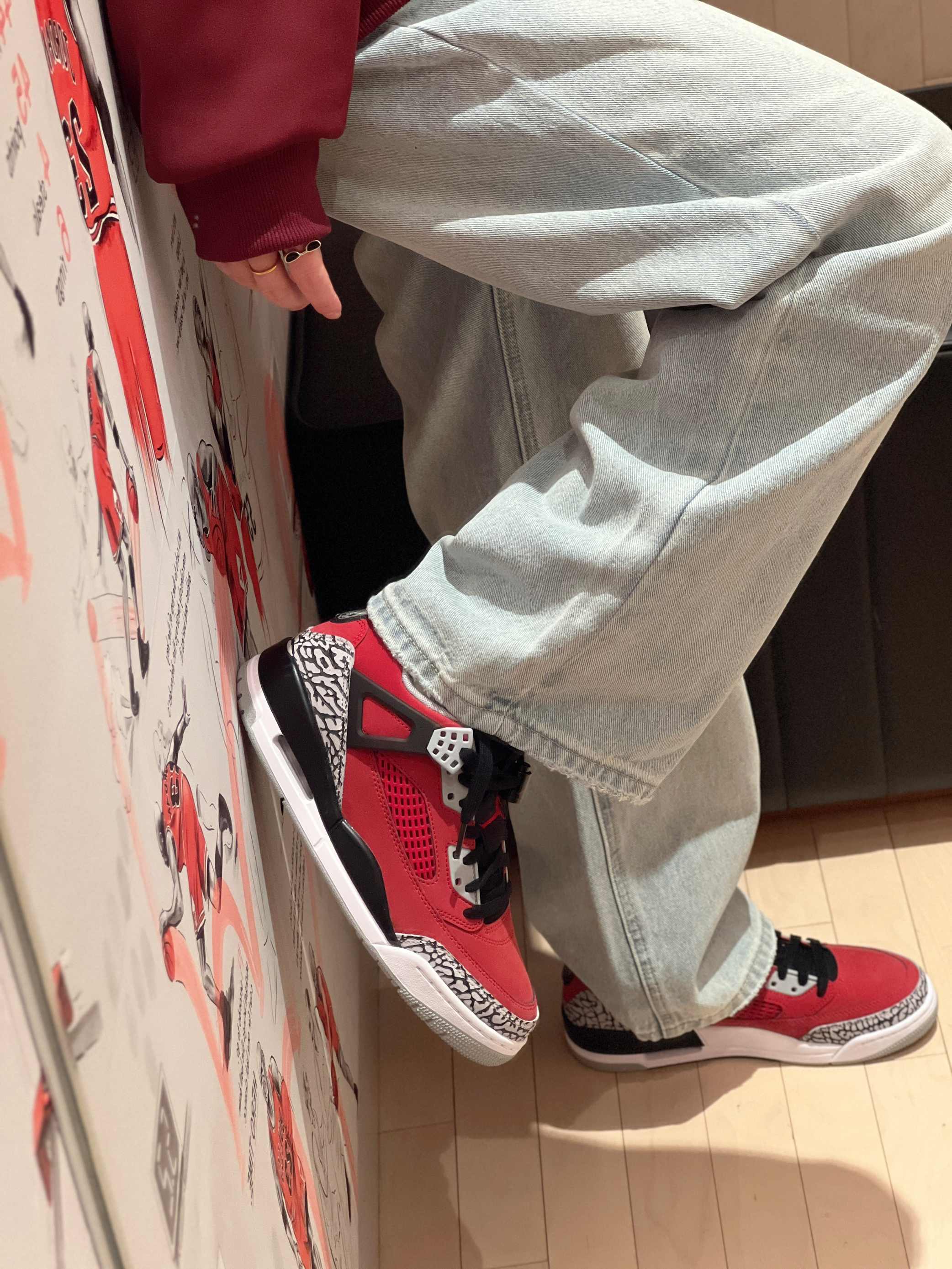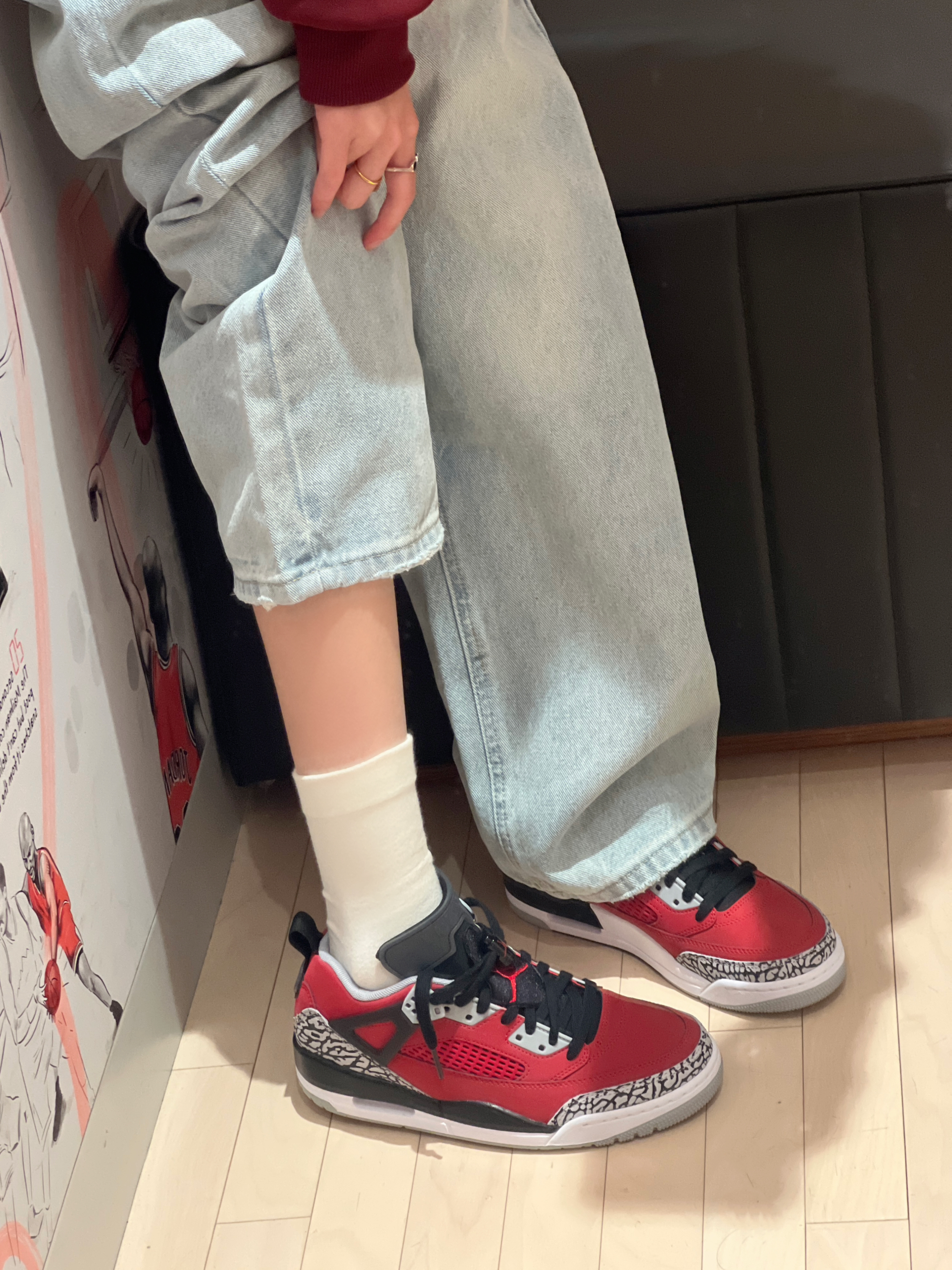 今日穿搭红色卫衣➕浅色牛仔裤👖 👔回力 上身穿的是回力的红色卫衣 卫衣领口有高领设计 拉上拉链会更加保暖! 质感个人觉得🈵不错的 不会很厚 随意搭配条裤子都很👌呢 男女都🉑穿 👧166/43kg M码 👟是AJ斯派克李Spizike "Toro"⛽️ 👍大面积红色加上黑色 视觉效果无敌十分吸睛 极具视觉冲击经典爆裂纹灰色设计 为鞋子增加了独特质感