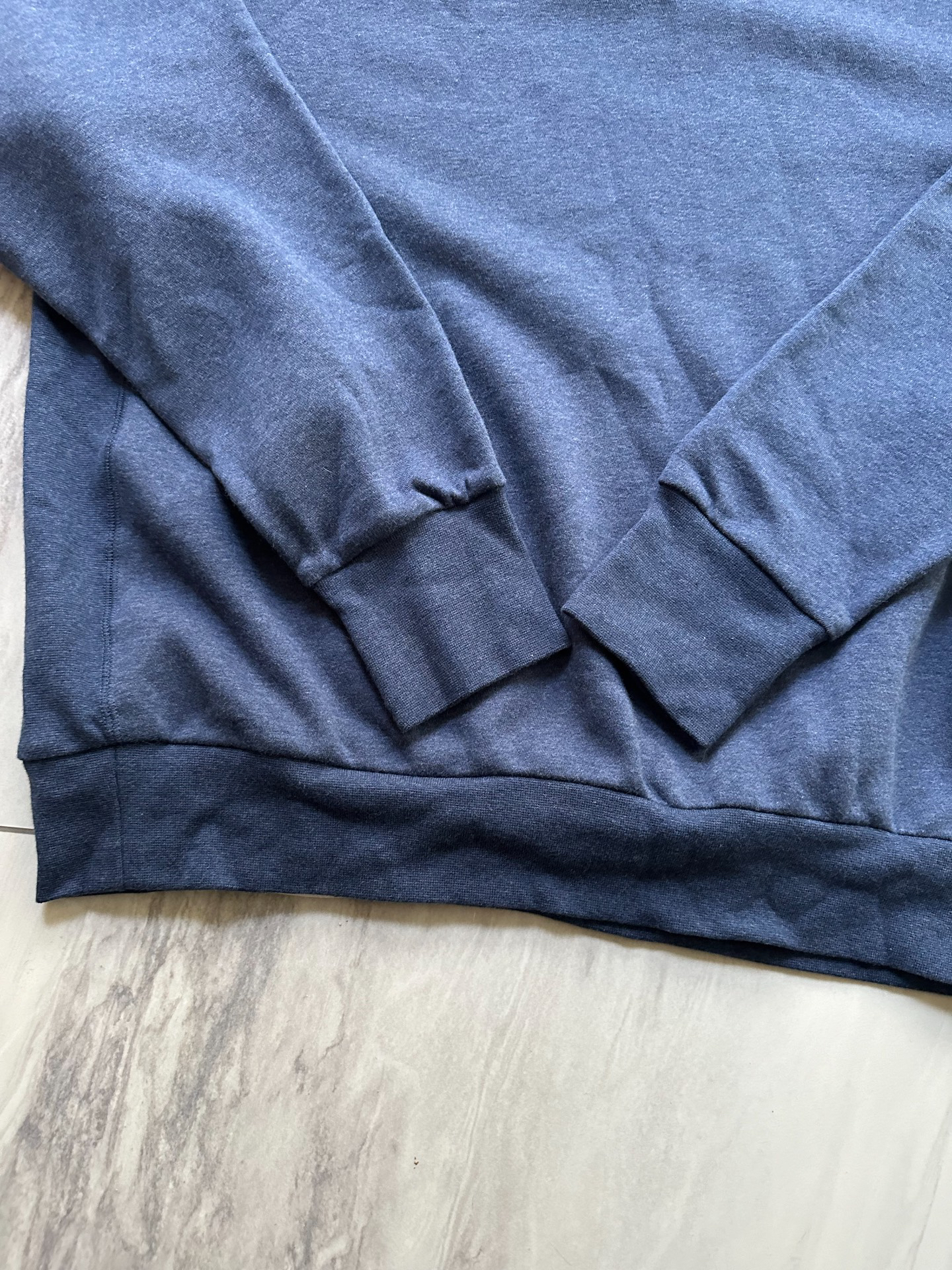 秋冬已经悄然来临了,北方的早晚已经很冷了,已经到了穿卫衣的季节了。今天给大家推荐一件时尚百搭的圆领卫衣,棉和涤纶的面料,面料柔软细腻,上身舒适透气。内衬是一层白色的薄绒,保暖又亲肤。藏蓝色非常复古又百搭,胸前logo水印,圆领直身包容性强很显瘦。做工精细,质量优质,尺码正常不偏码