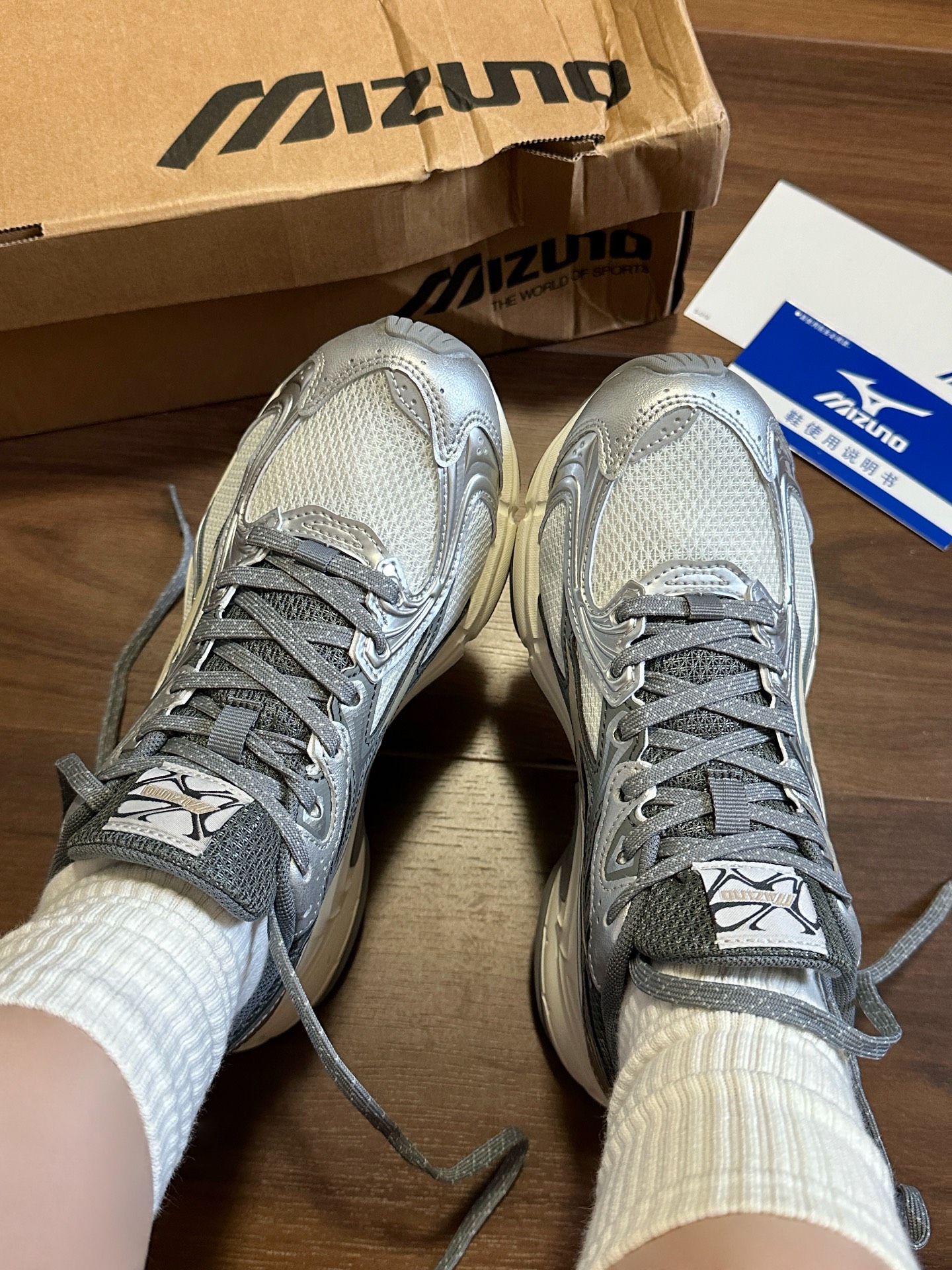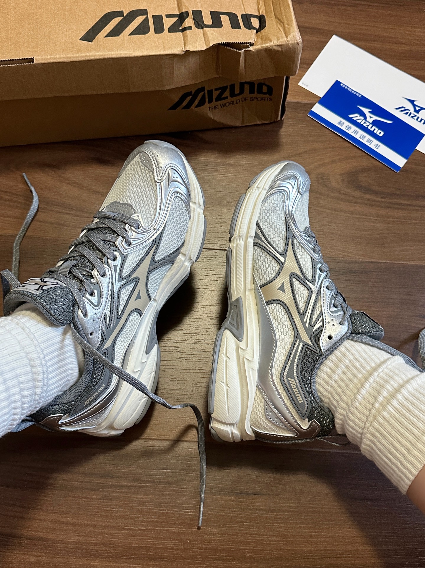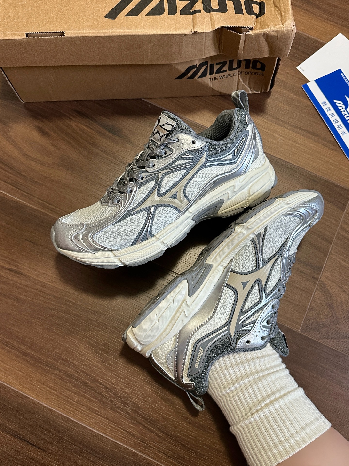 跑鞋又刮起了复古风🌬️小几百性价比超高的我推荐 #Mizuno 美津浓哈~男女都能穿,纯正的日系复古味‼️ 我个人特别喜欢侧面的logo,很经典!鞋底也很软弹舒适,可以增高⬆️不知道选啥配色可以选银灰色👻百搭不挑人,也很时尚,逛街或者上班通勤穿都不错👌 #跑鞋刮起复古风 #解锁一双复古跑鞋 #分享你的复古跑鞋 #看看我的通勤好鞋 #这双鞋我穿了很久