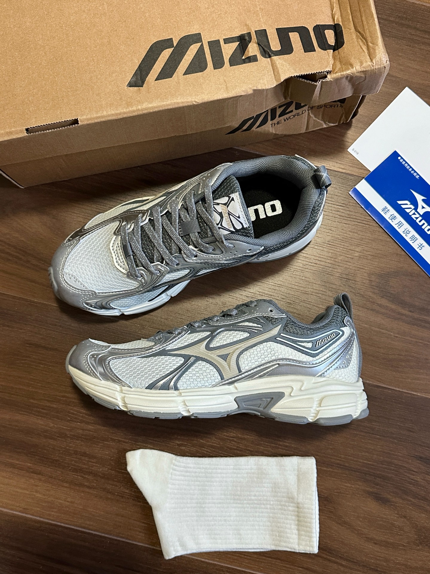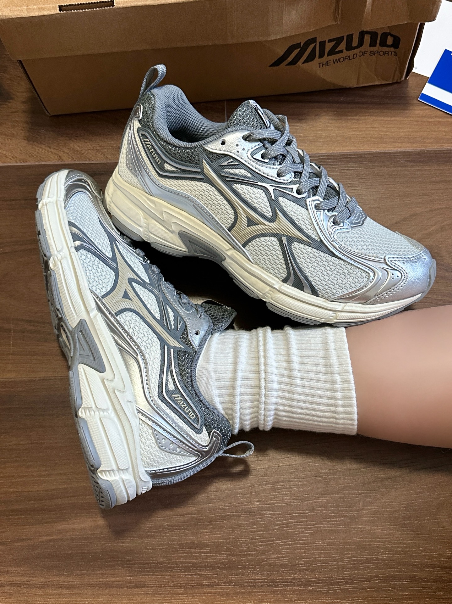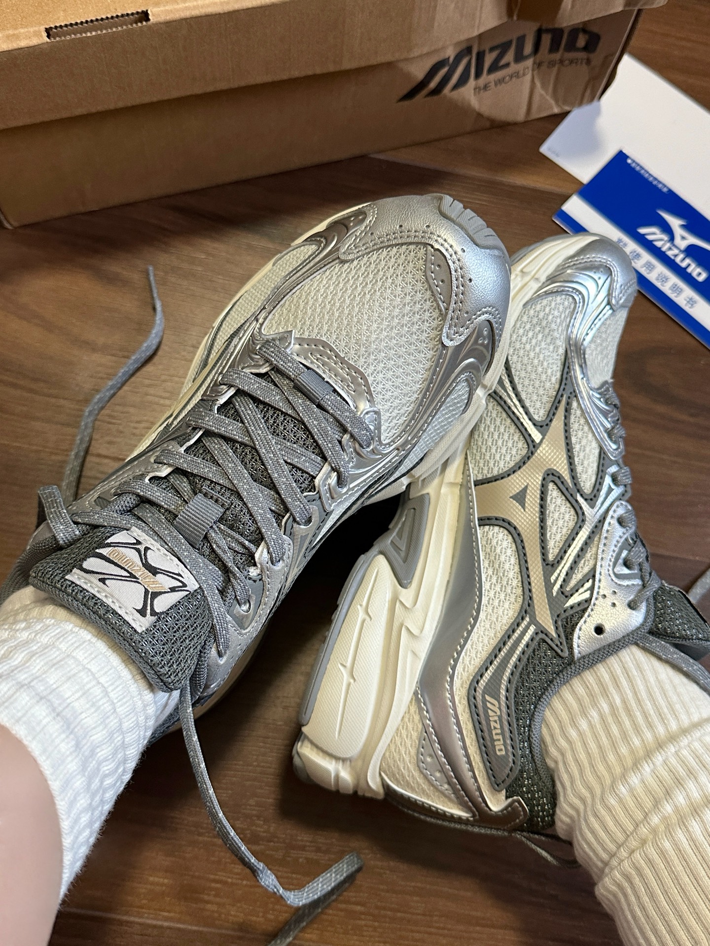 跑鞋又刮起了复古风🌬️小几百性价比超高的我推荐 #Mizuno 美津浓哈~男女都能穿,纯正的日系复古味‼️ 我个人特别喜欢侧面的logo,很经典!鞋底也很软弹舒适,可以增高⬆️不知道选啥配色可以选银灰色👻百搭不挑人,也很时尚,逛街或者上班通勤穿都不错👌 #跑鞋刮起复古风 #解锁一双复古跑鞋 #分享你的复古跑鞋 #看看我的通勤好鞋 #这双鞋我穿了很久