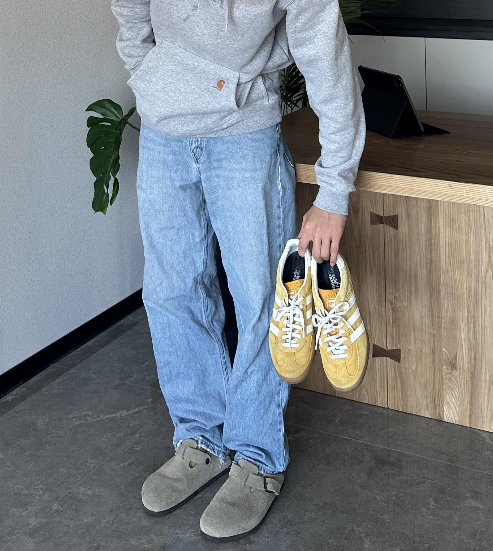 身高|体重:178 | 130 🧍♂️ 穿搭风格:简约 👔 上衣:卡哈特卫衣 👖 下装:李维斯牛仔裤 👟 鞋子:adidas Gazelle 🎒配饰:无